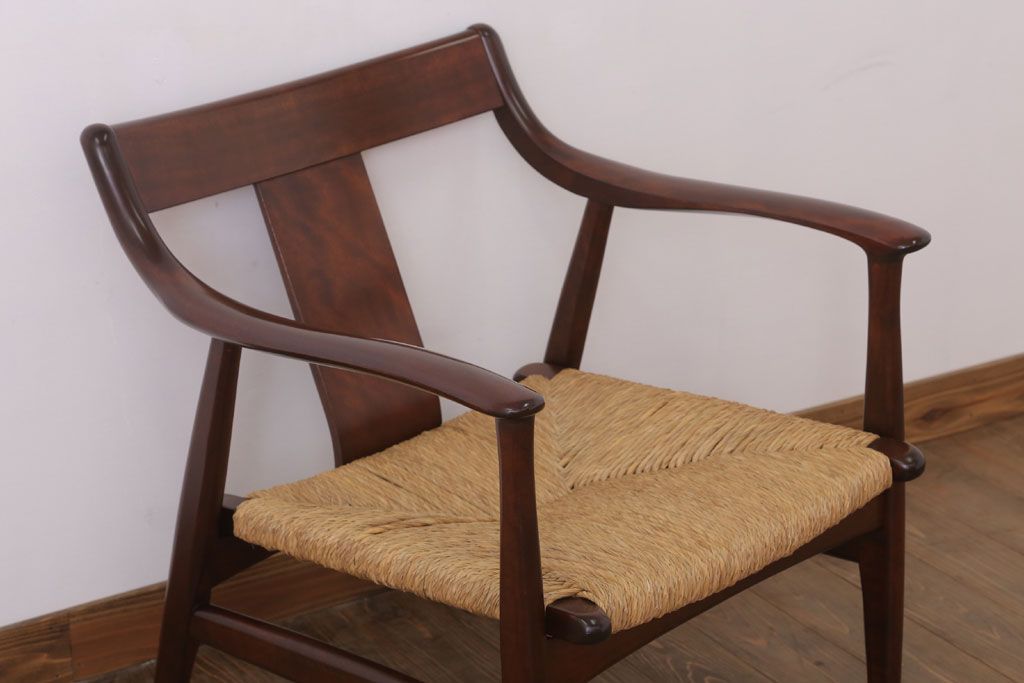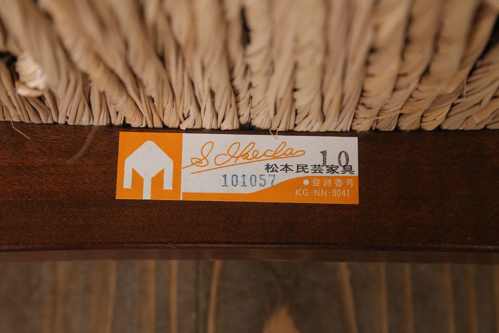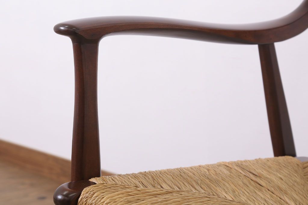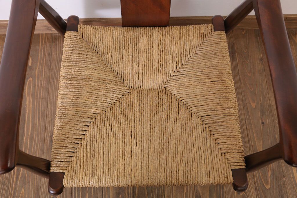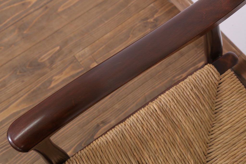 中古 松本民芸家具 77型 曲肘 ラッシ座面アームチェア(定価約18万円)(3)
