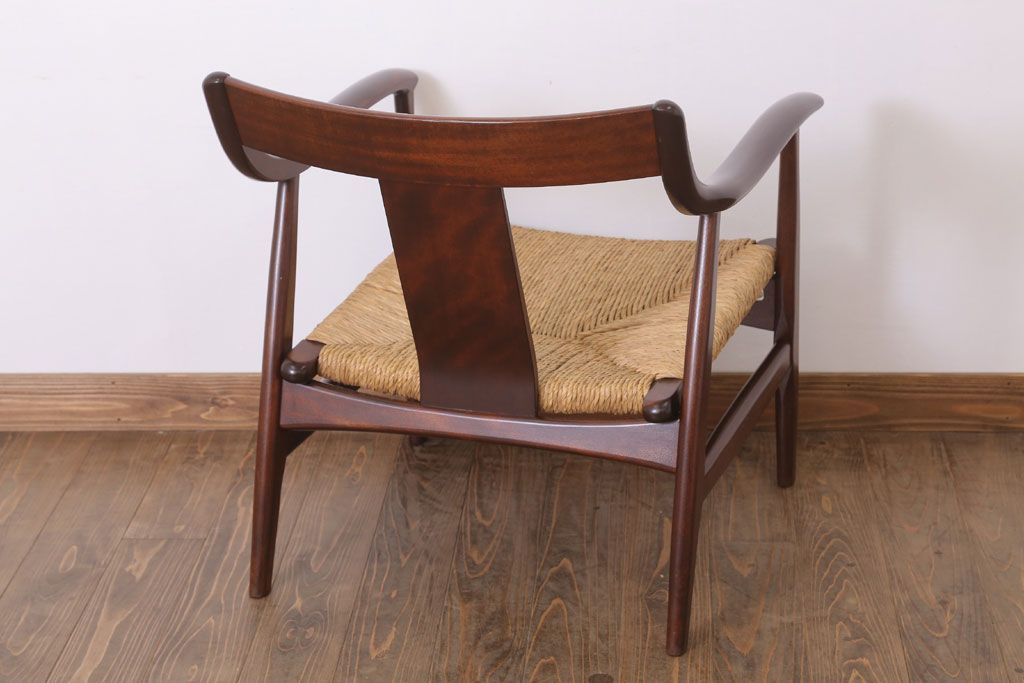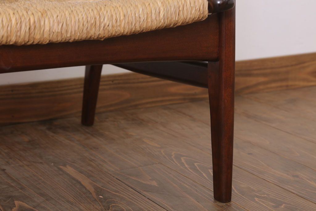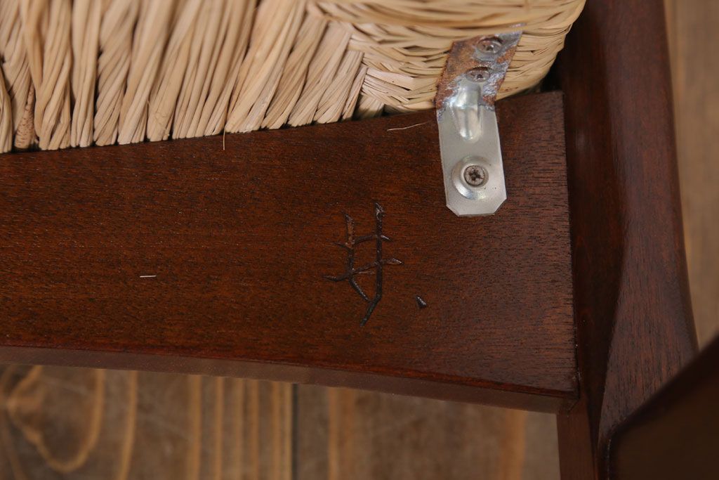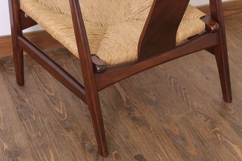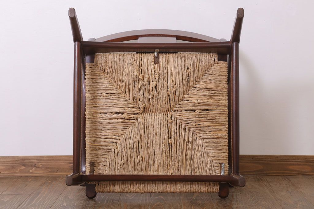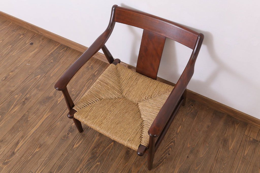 中古 松本民芸家具 77型 曲肘 ラッシ座面アームチェア(定価約18万円)(3)