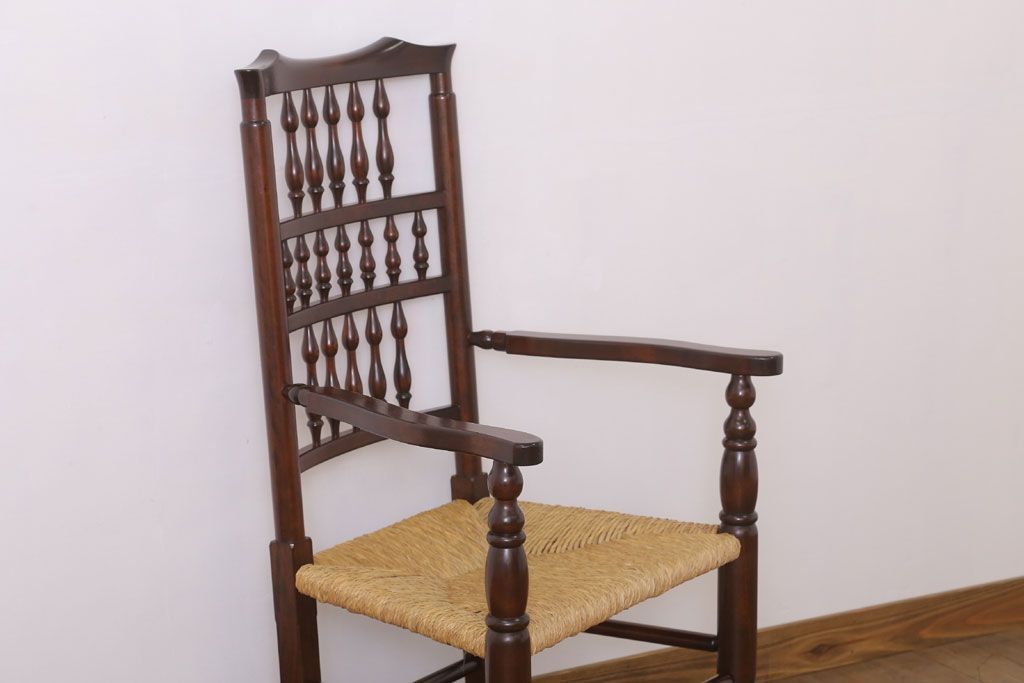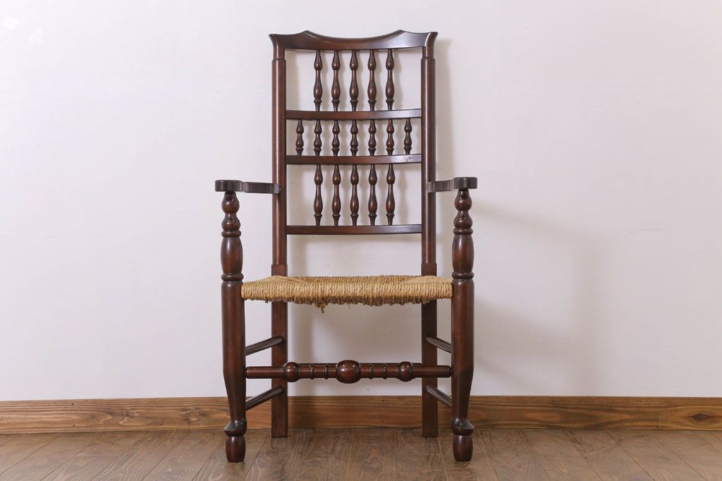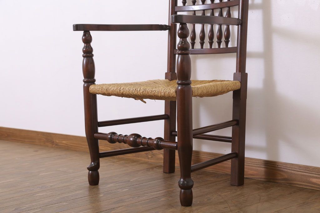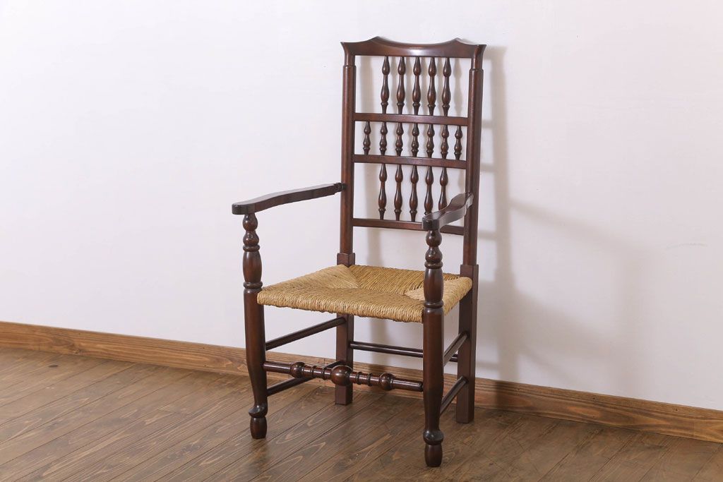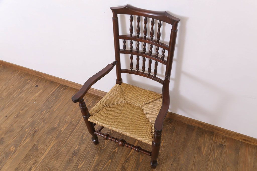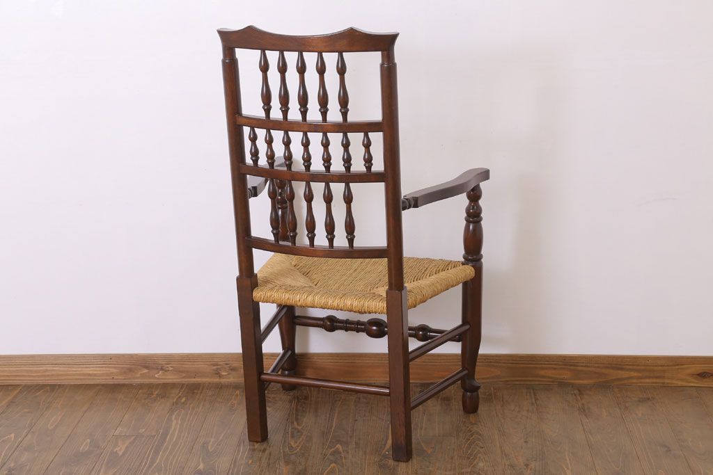 ラフジュ工房> 椅子・ベンチ> アームチェア > 中古美品 松本民芸家具 #48型 ラッシ座面 スピンドルアームチェア(定価約14万9千円)(椅子)