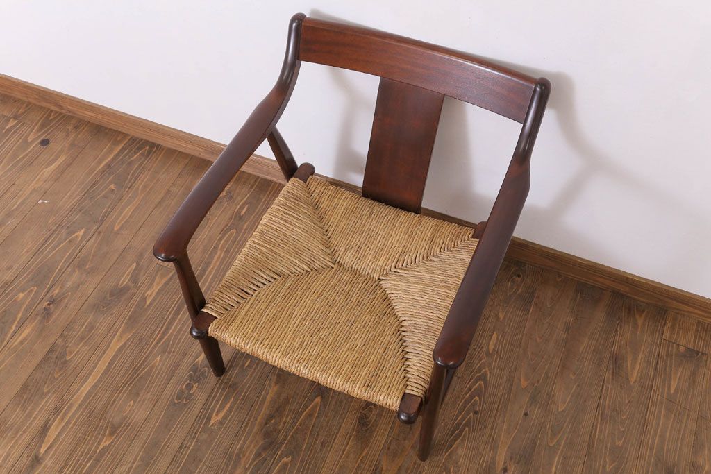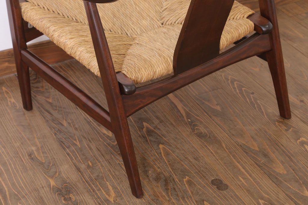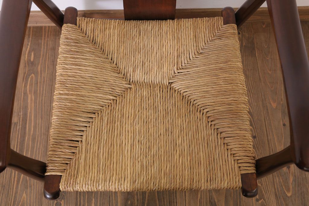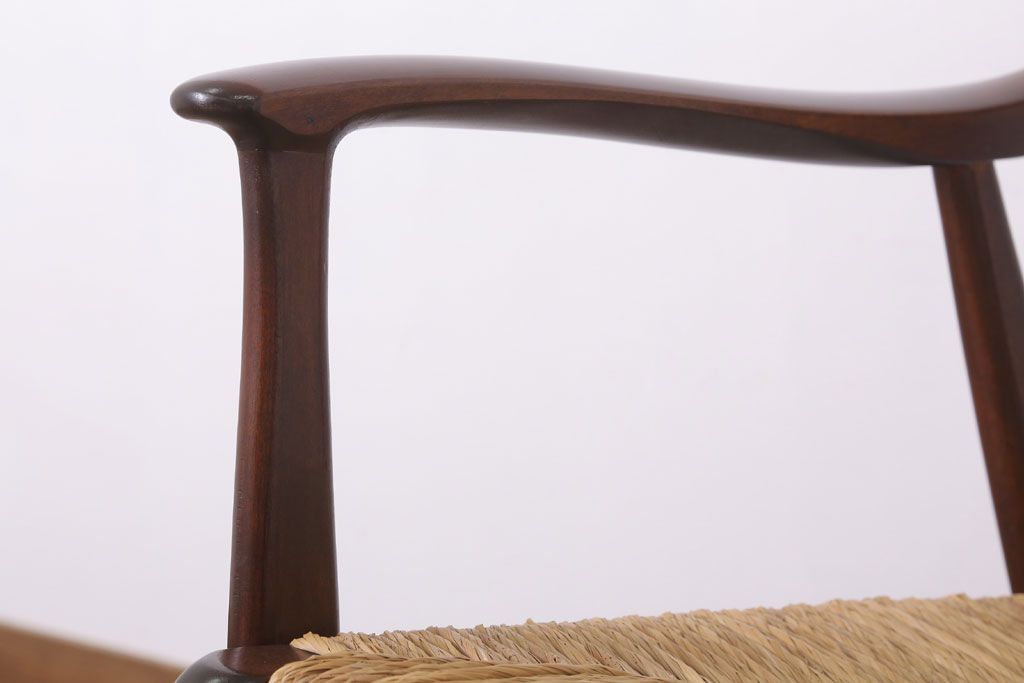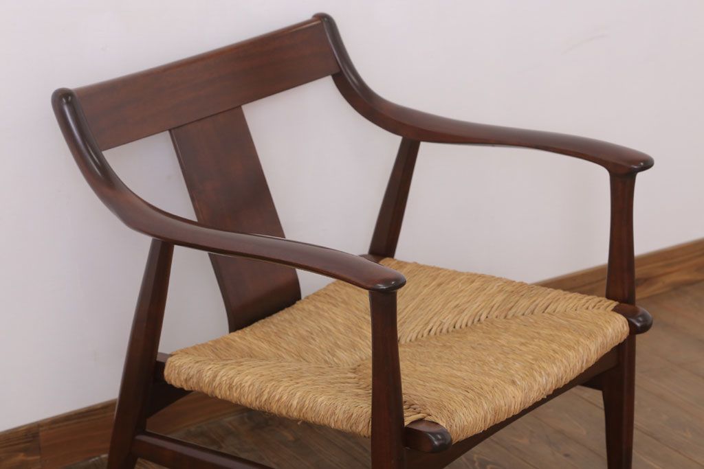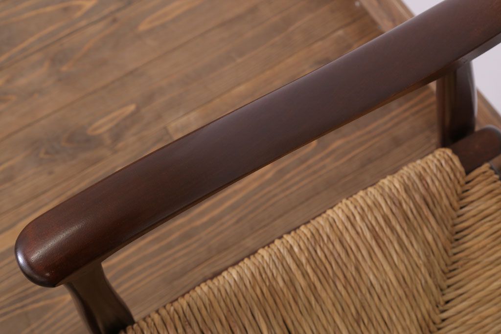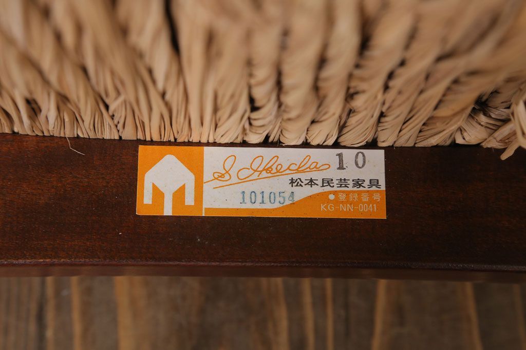 中古美品 松本民芸家具 77型 曲肘 ラッシ座面アームチェア(定価約18万円)(1)