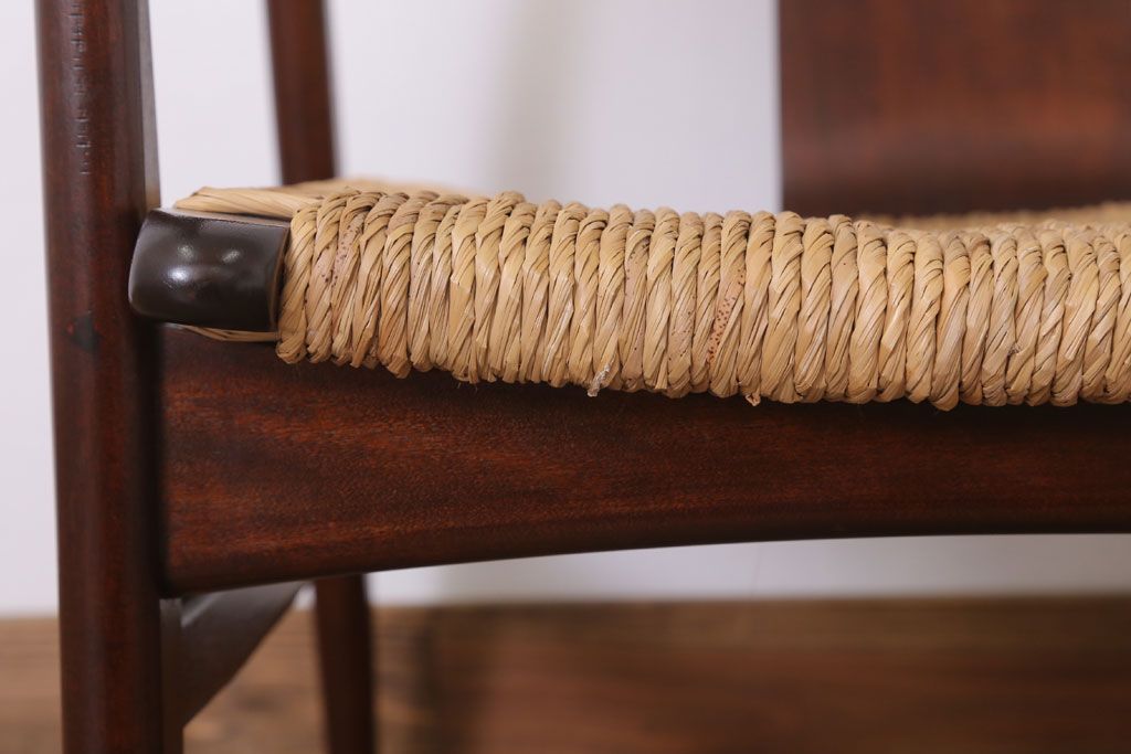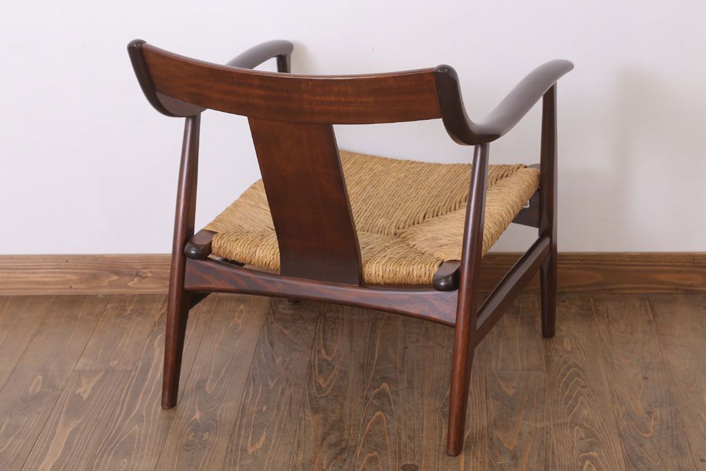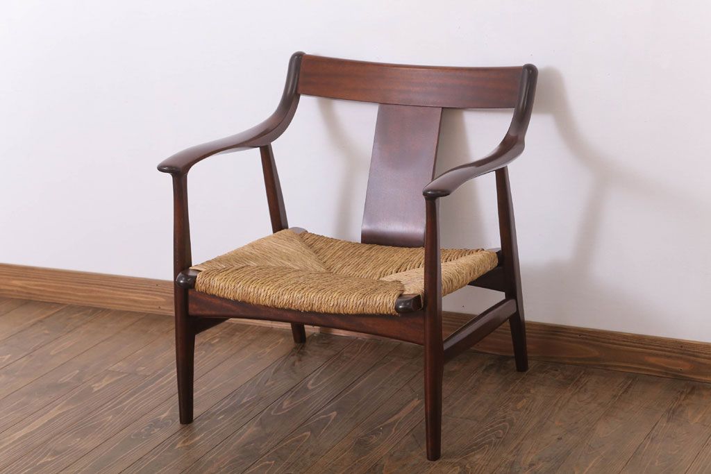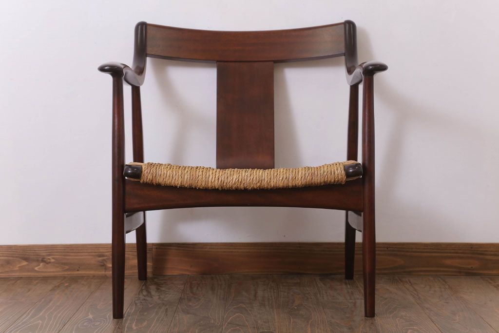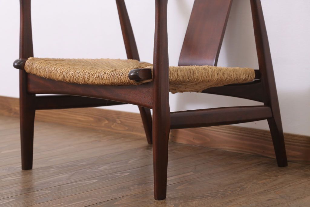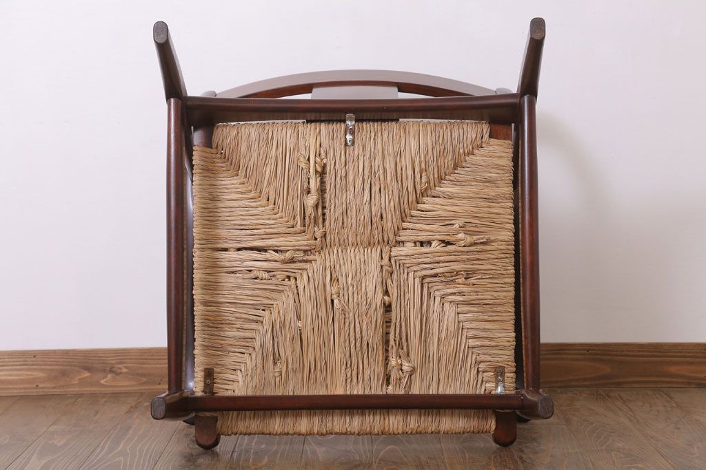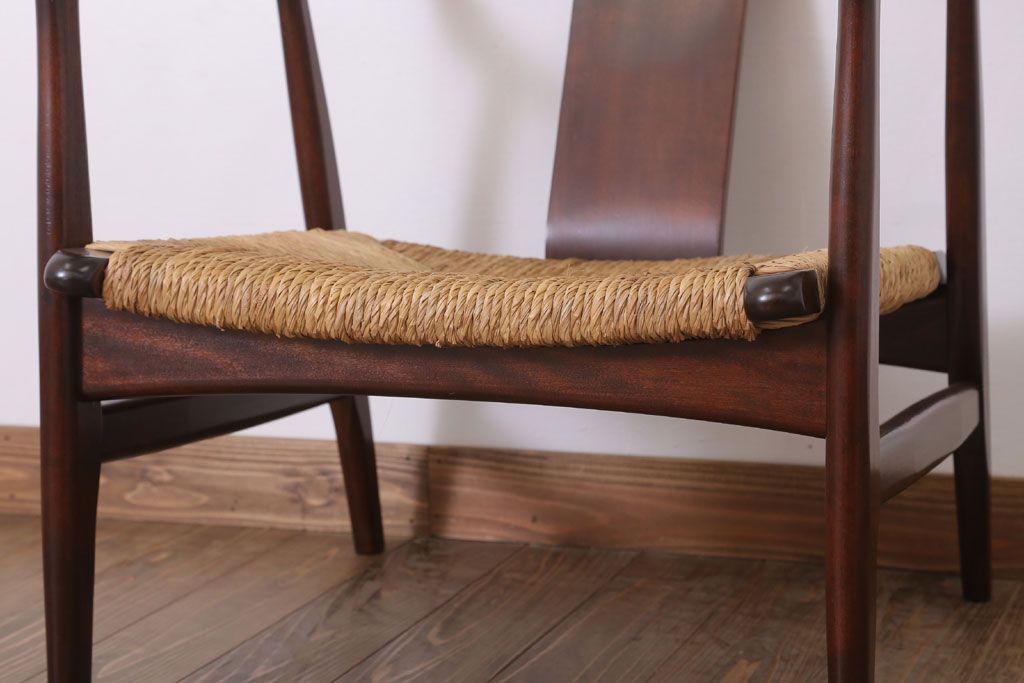 中古美品 松本民芸家具 77型 曲肘 ラッシ座面アームチェア(定価約18万円)(1)