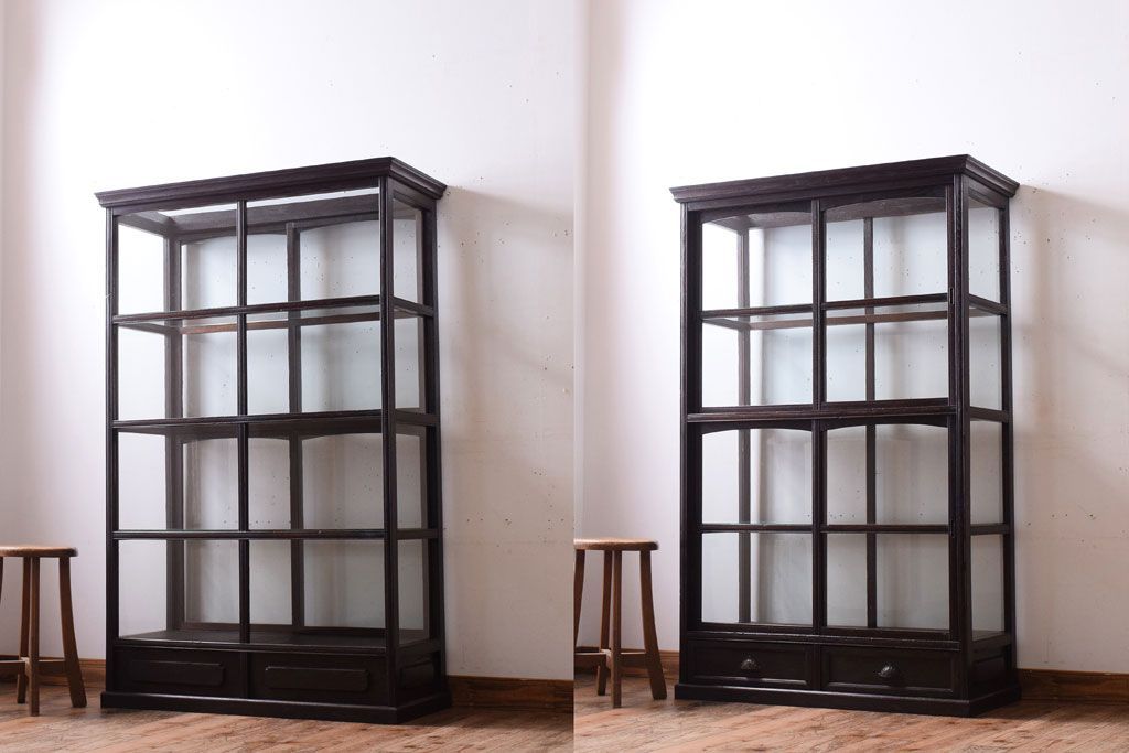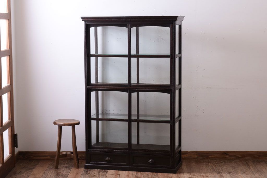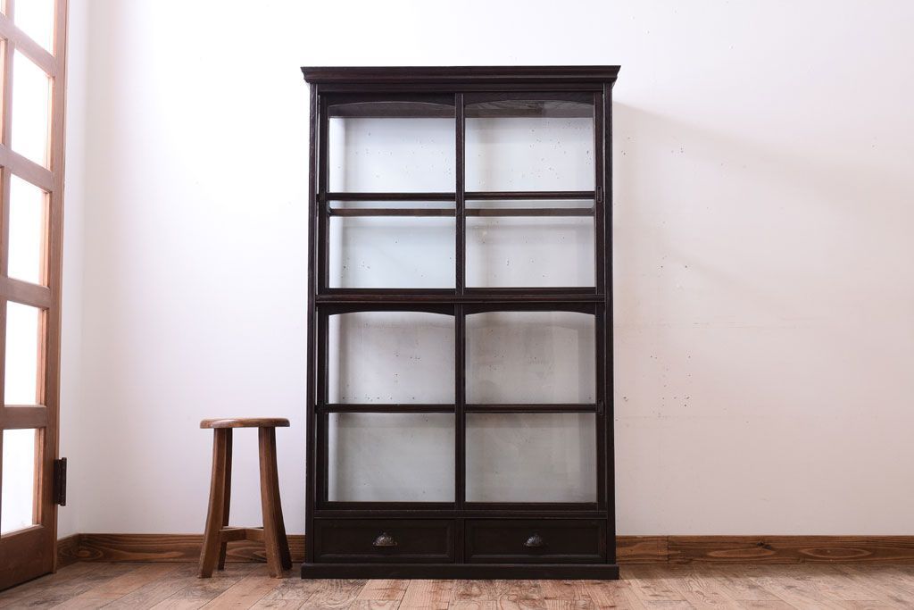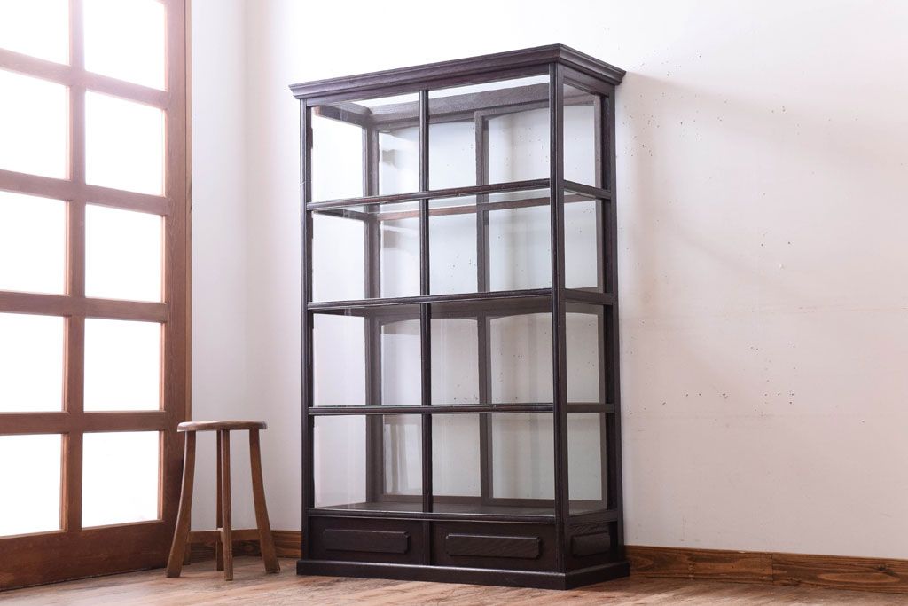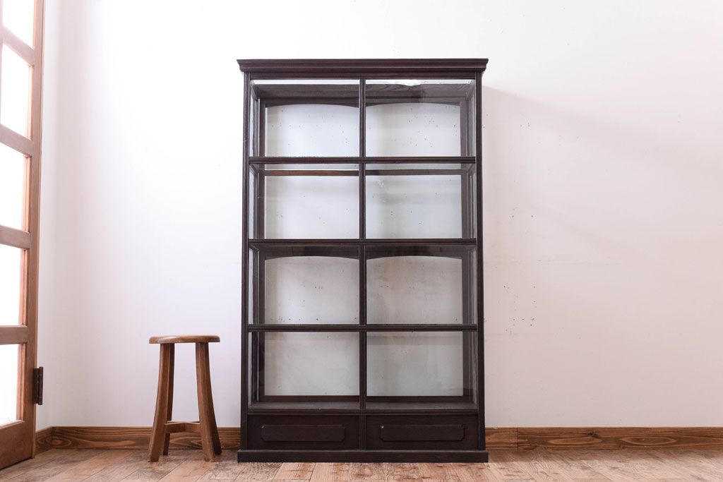 アンティーク家具 総栗材!大正ロマン 和製アンティークのガラスケース