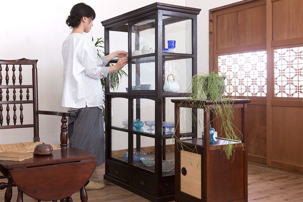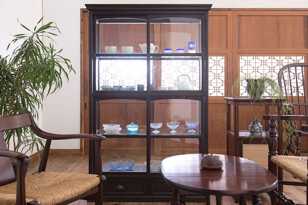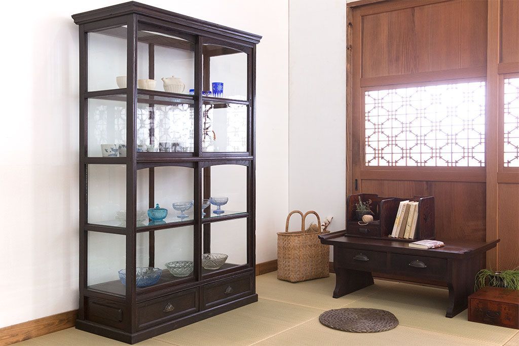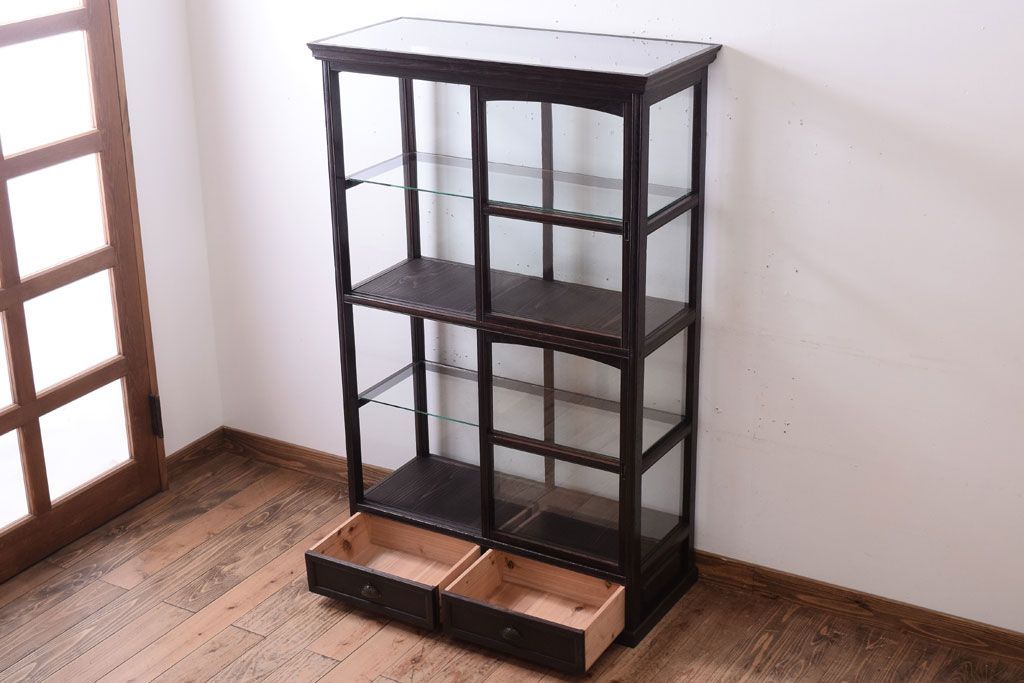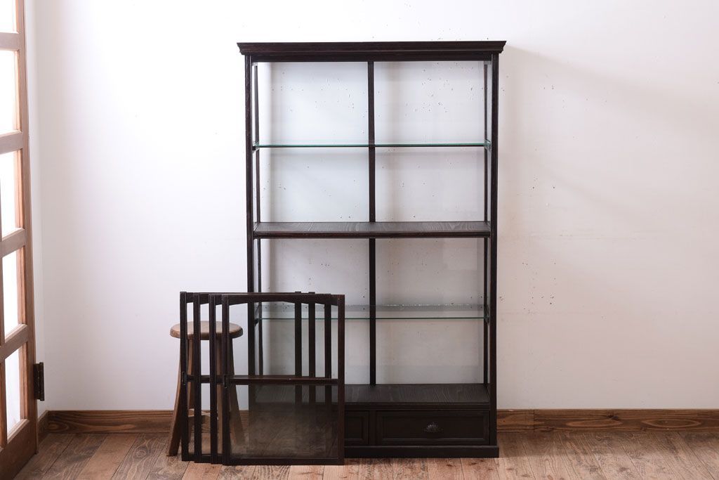 アンティーク家具 総栗材!大正ロマン 和製アンティークのガラスケース