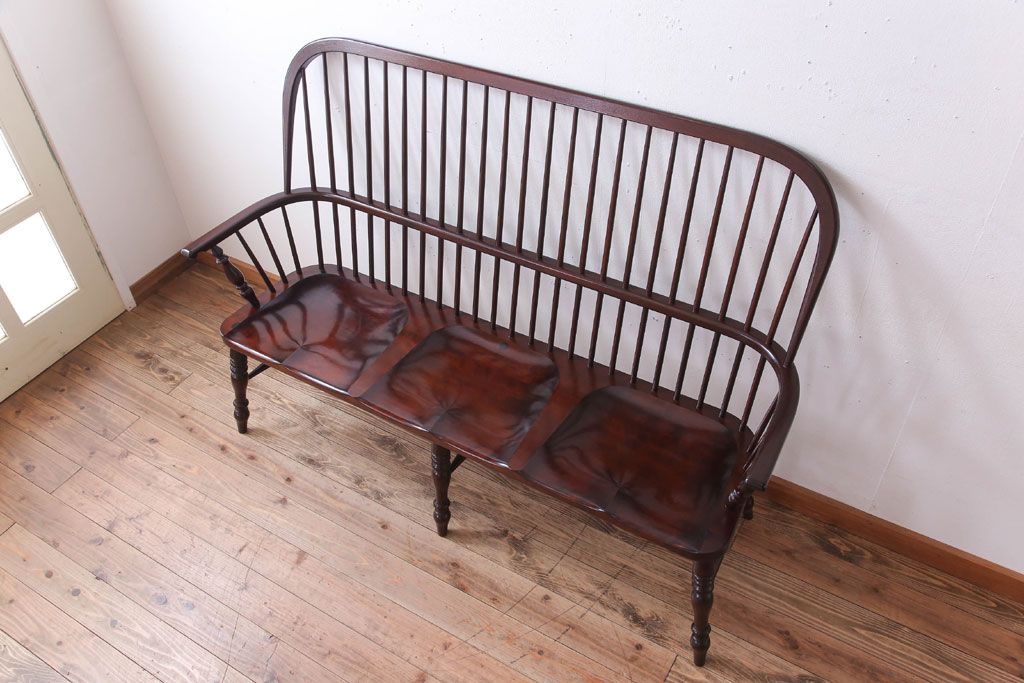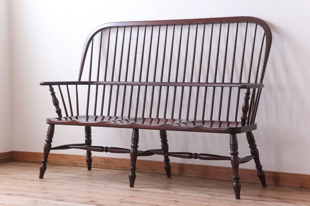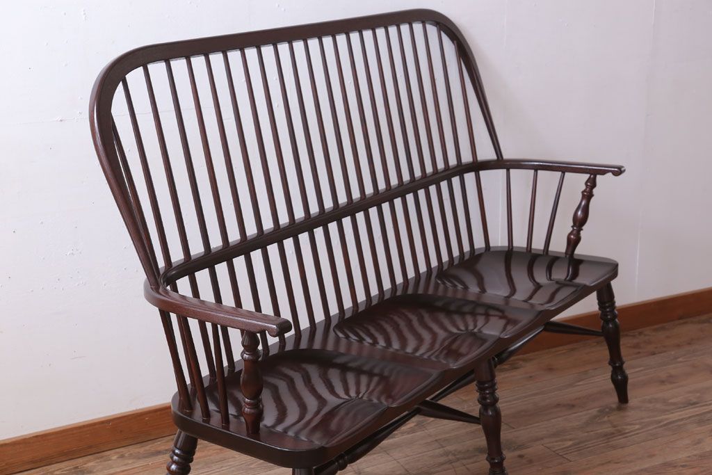 中古美品 松本民芸家具 #513型 長ウィンザーチェア三人掛(定価283500円)(ウインザーチェア)