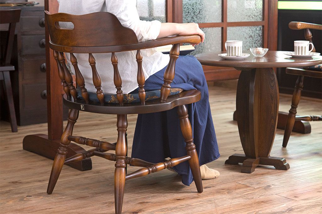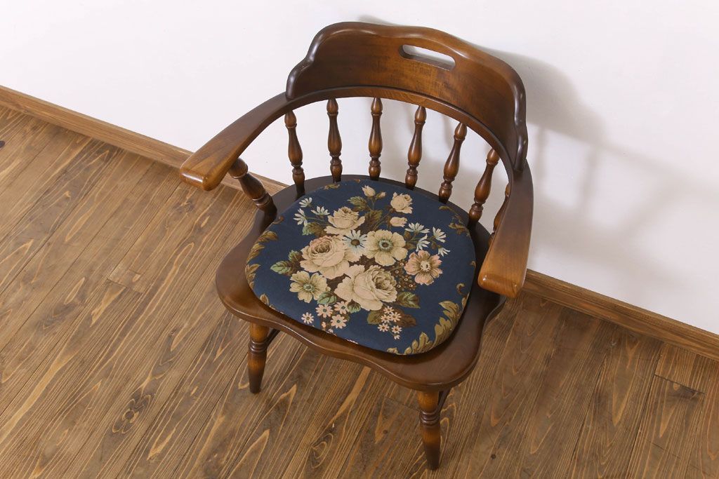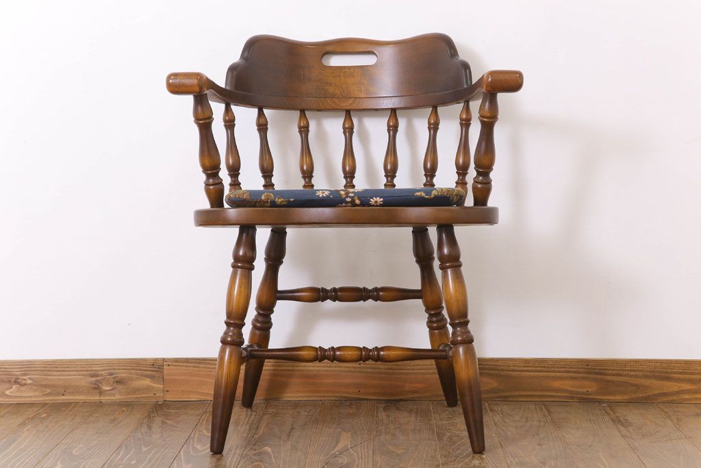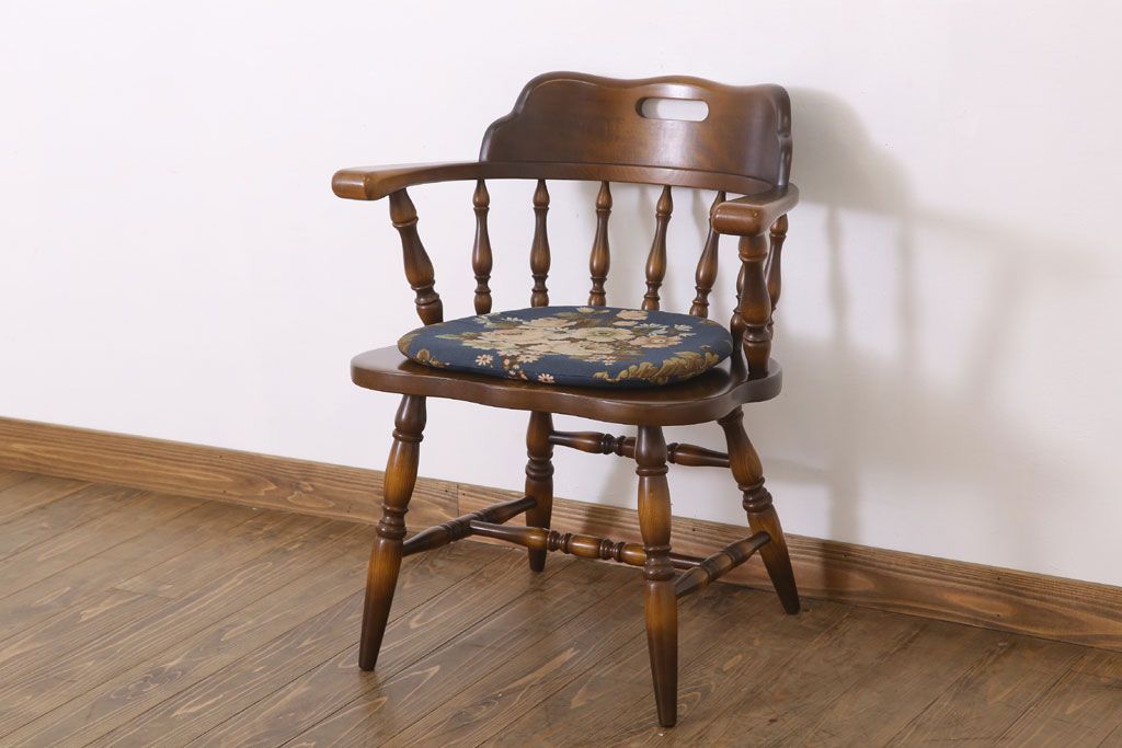 中古美品 飛騨産業 キツツキマーク クッション付きビンテージアームチェア(2)