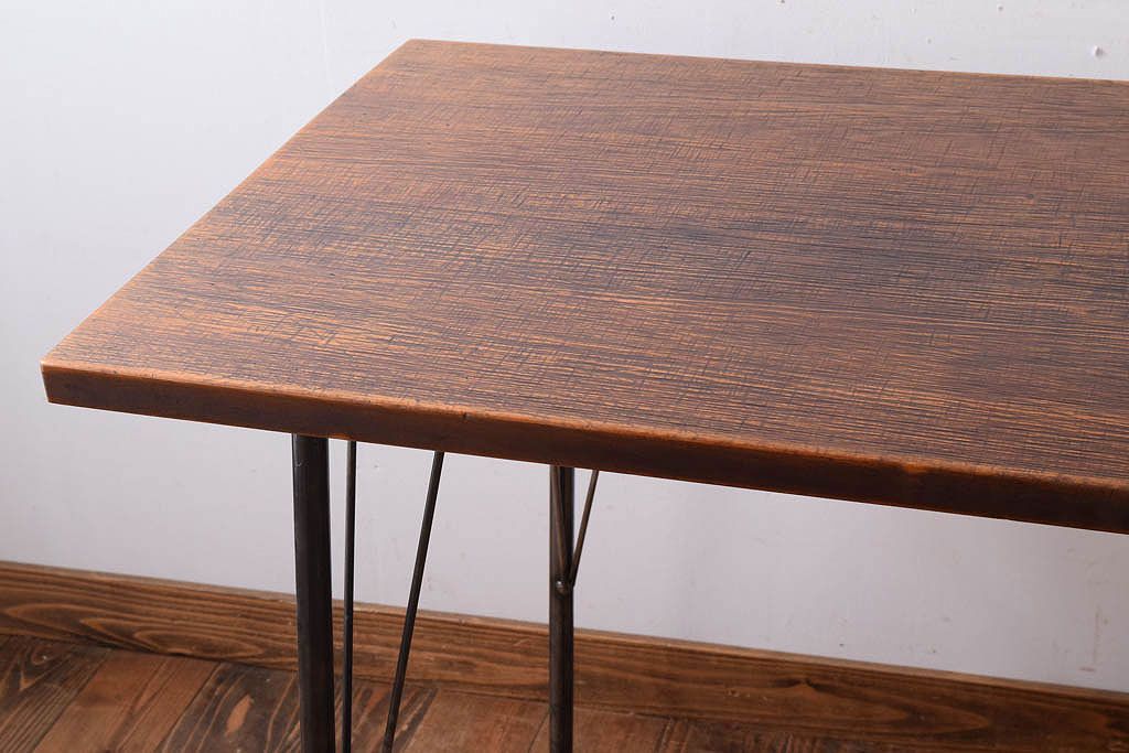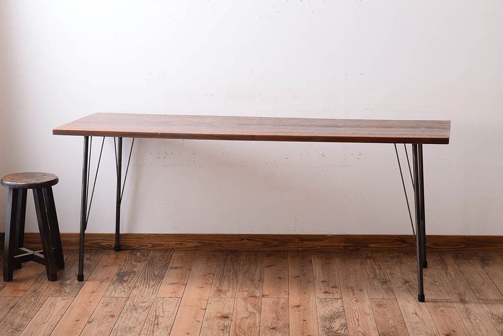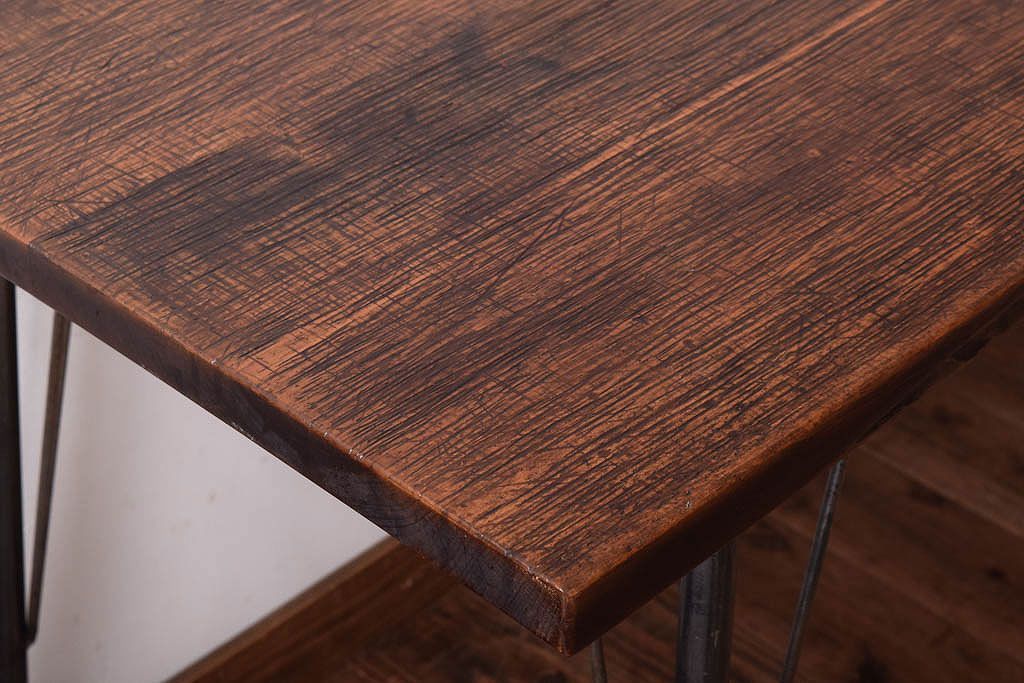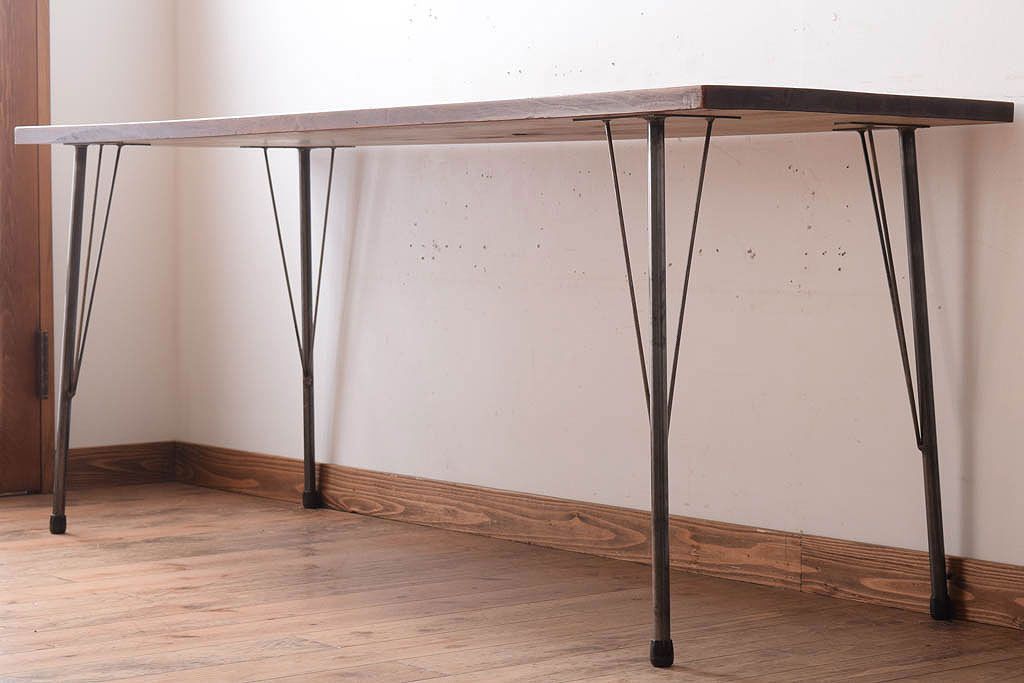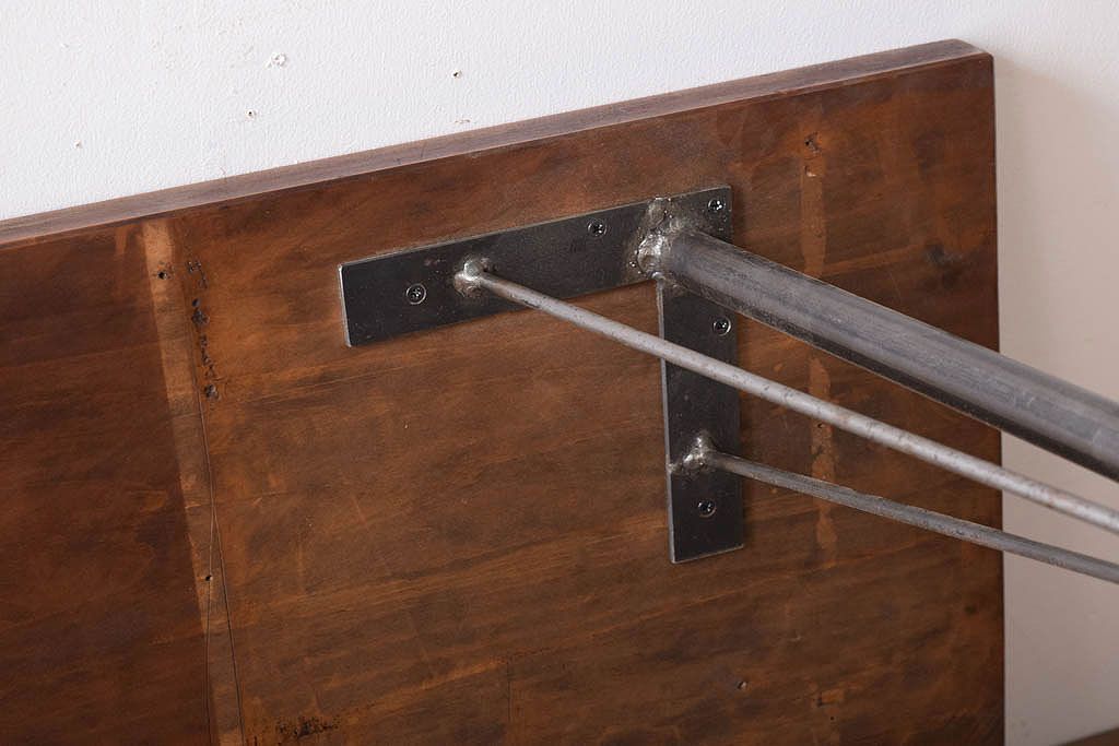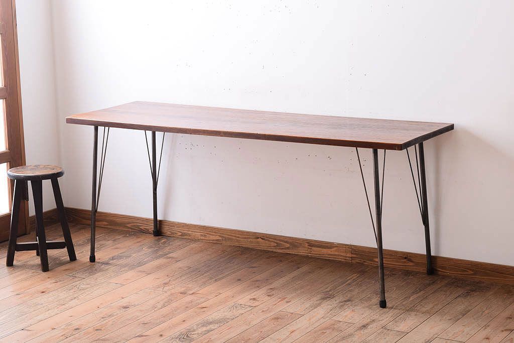 アンティーク家具 古材 大判一枚板!アンティークの鉄脚テーブル(作業台、机)