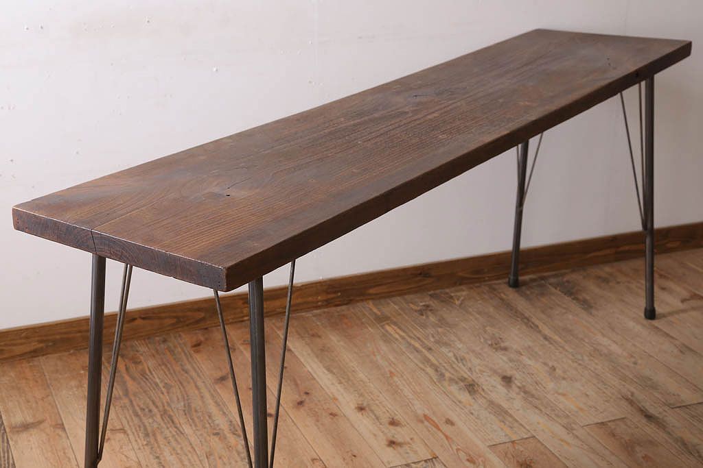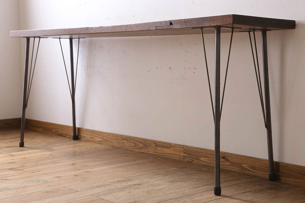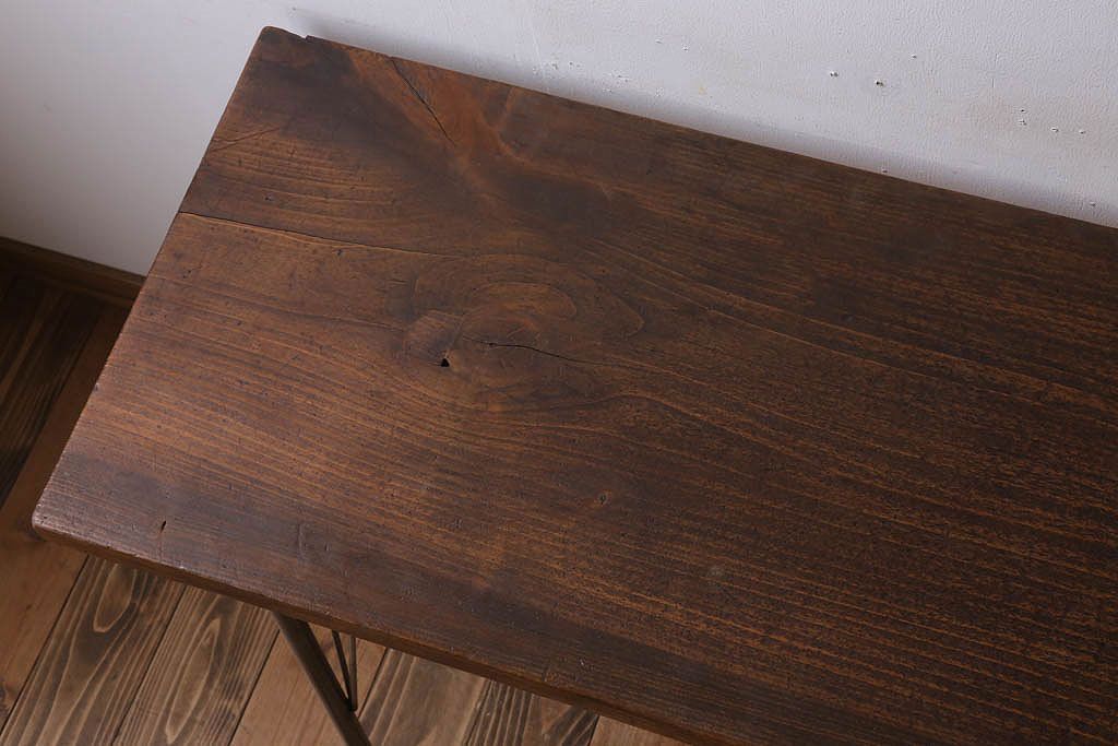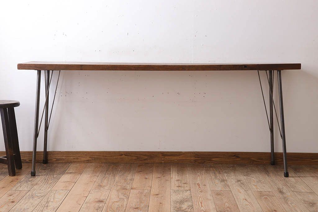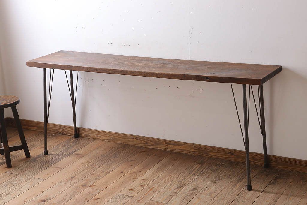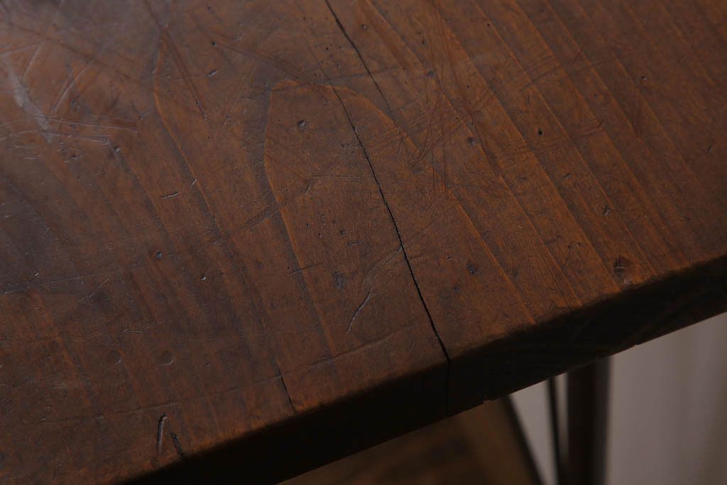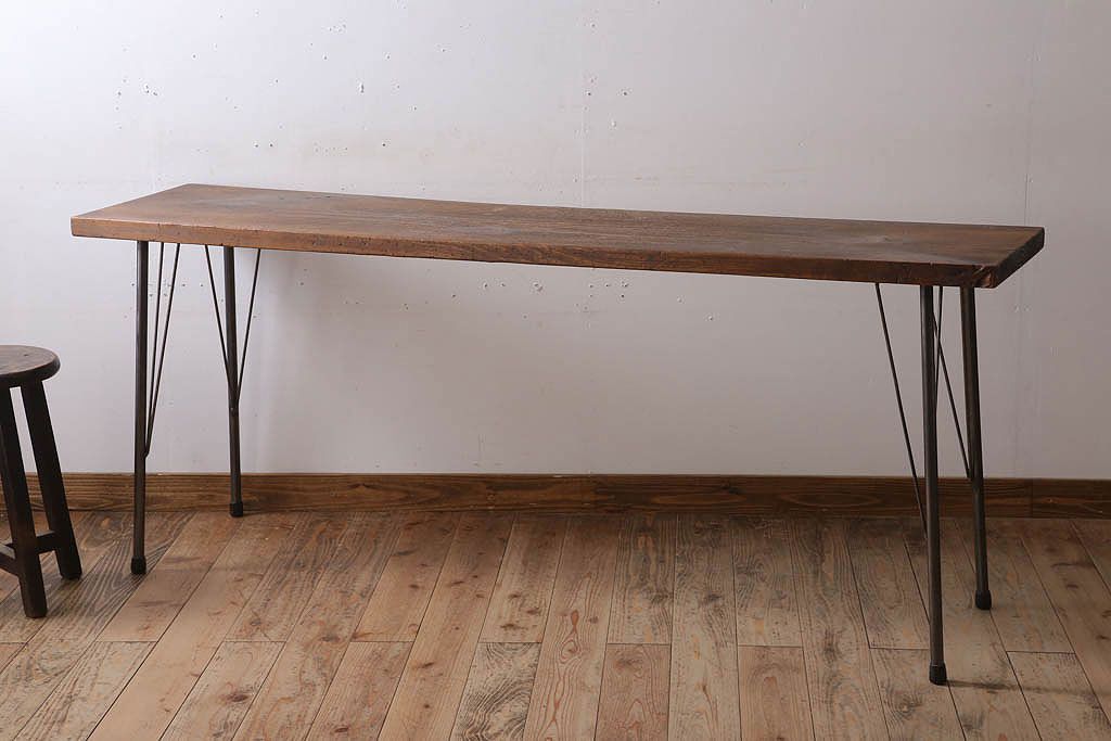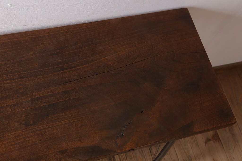アンティーク家具 古材天板一枚板!アンティーク鉄脚テーブル(作業台、机)(1)