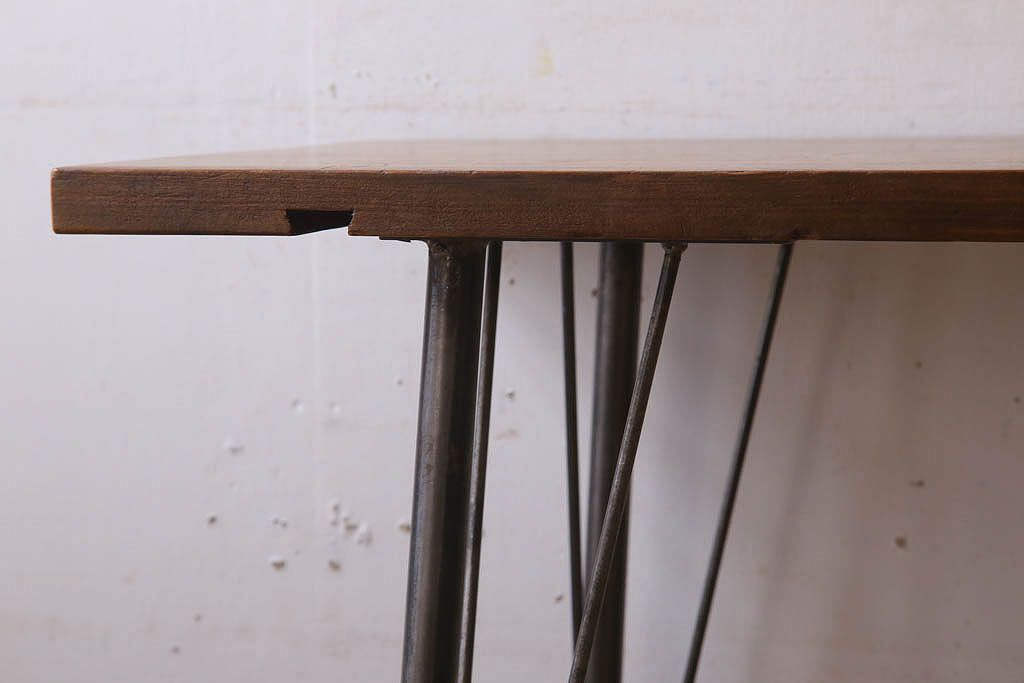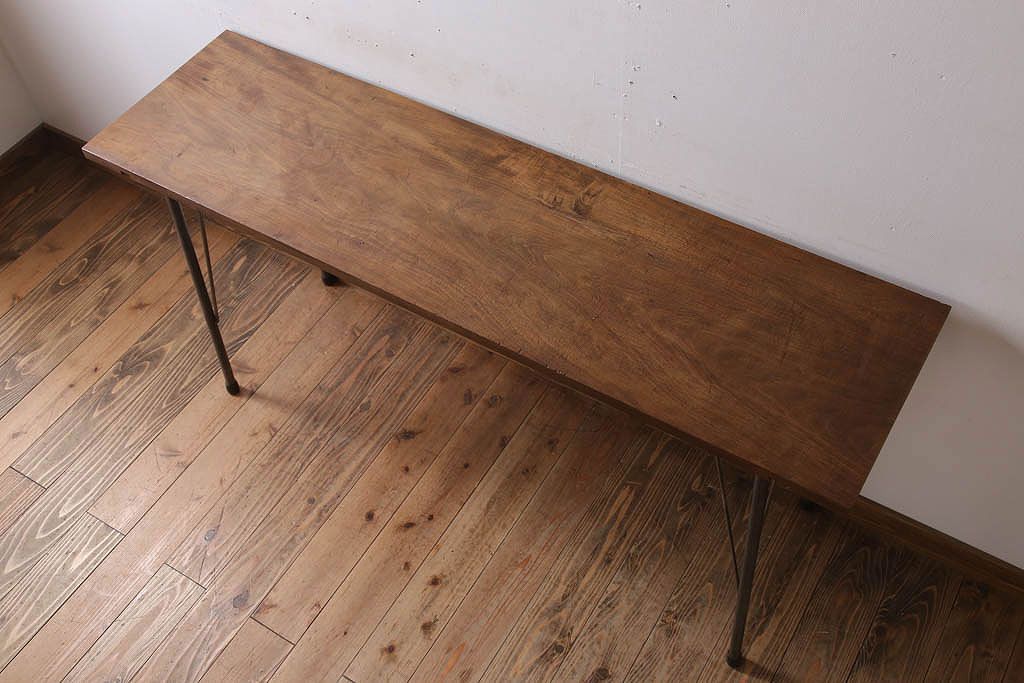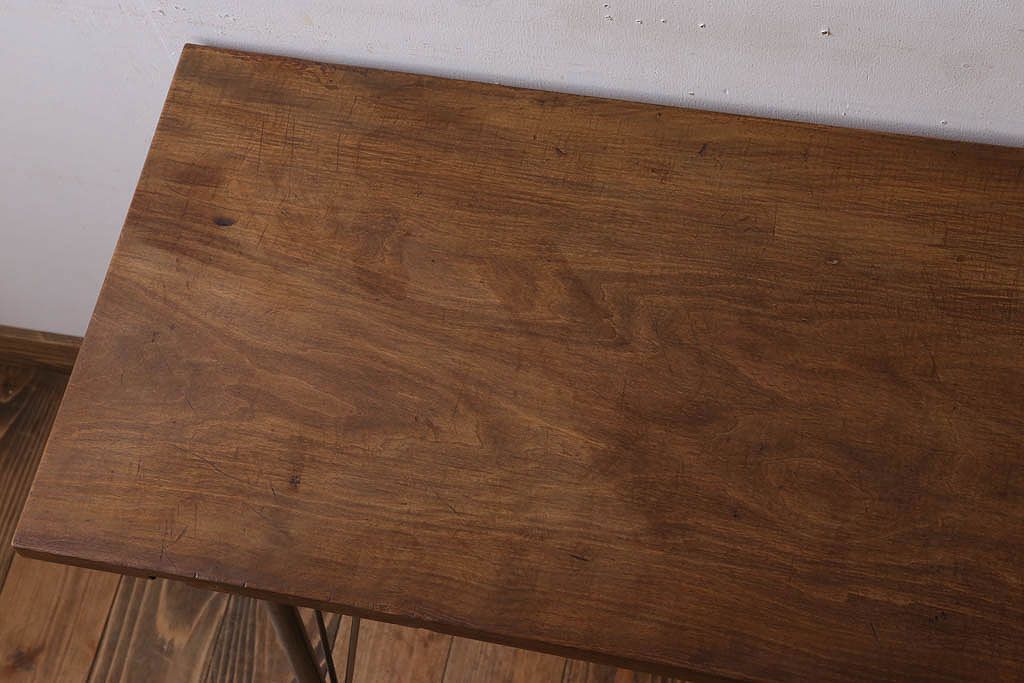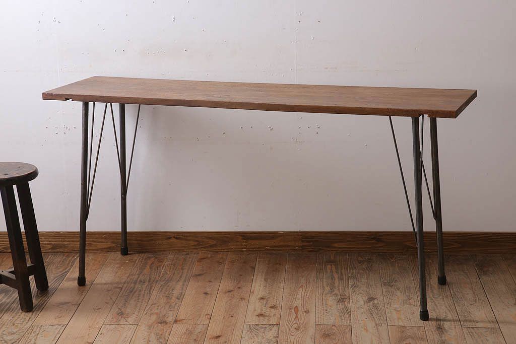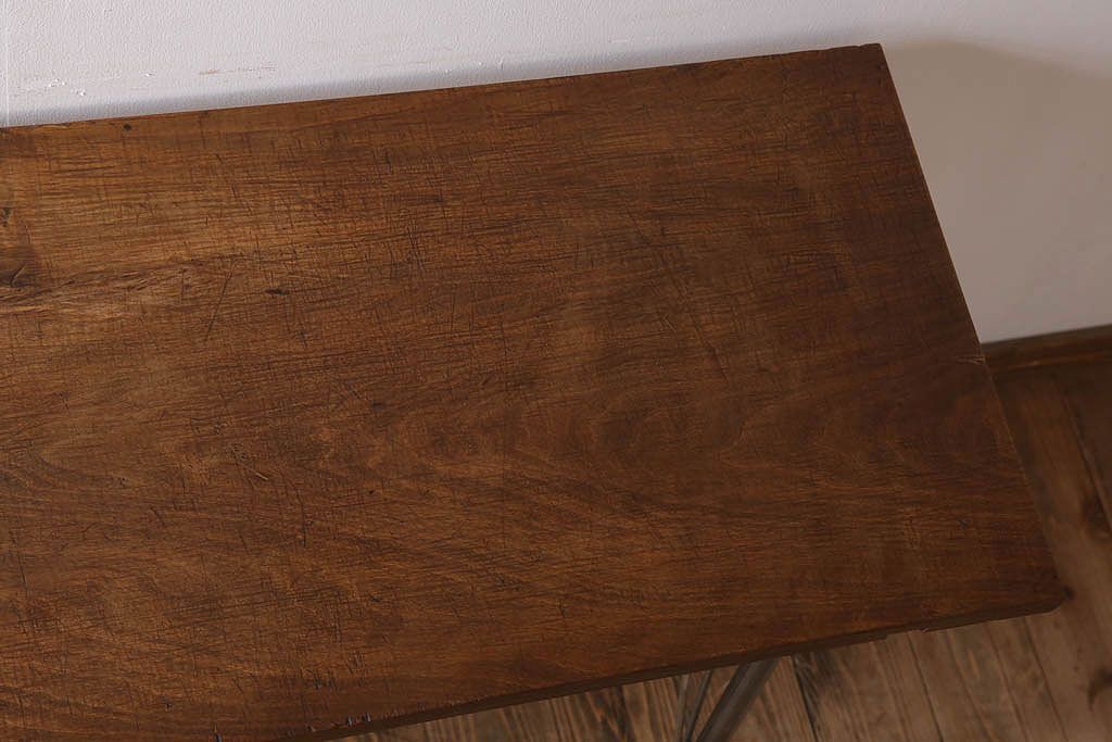 アンティーク家具 古材天板一枚板!アンティーク鉄脚テーブル(作業台、机)(2)