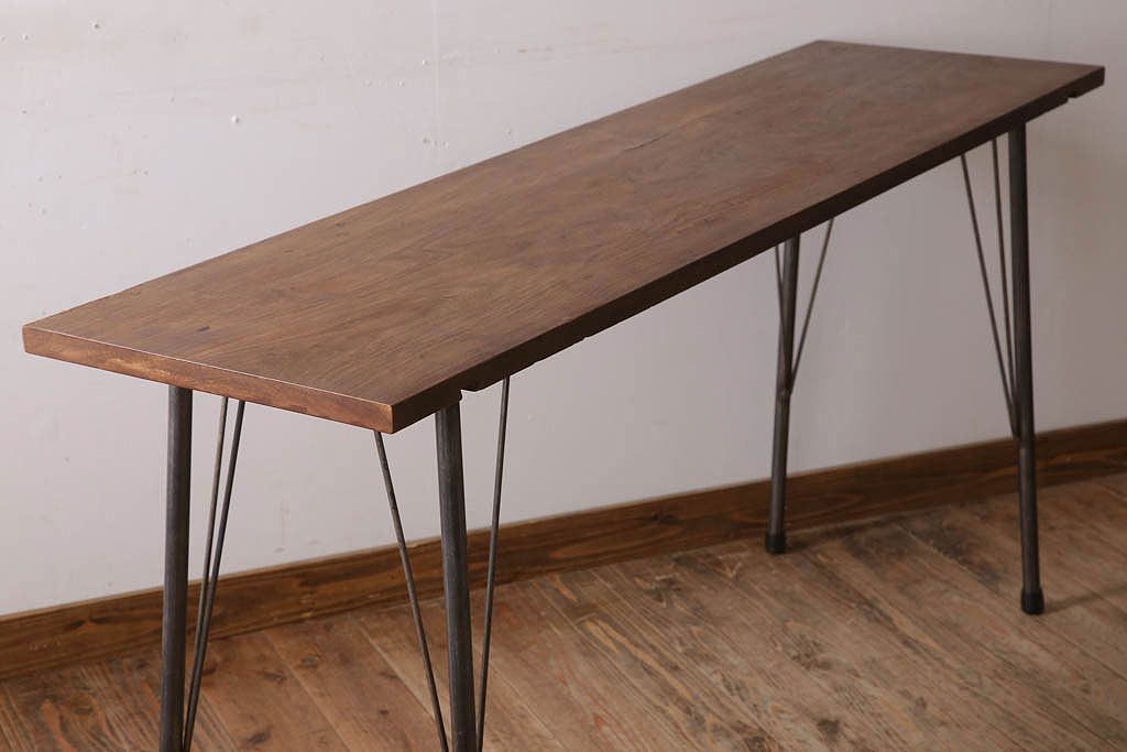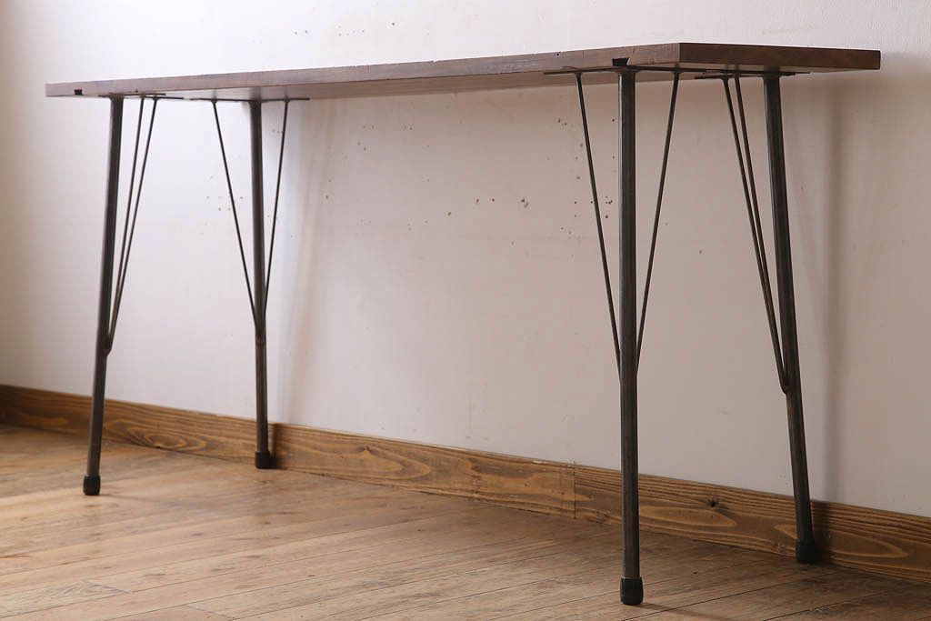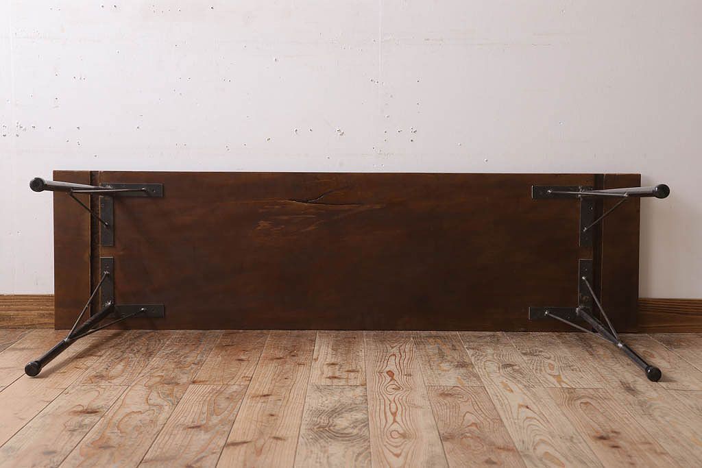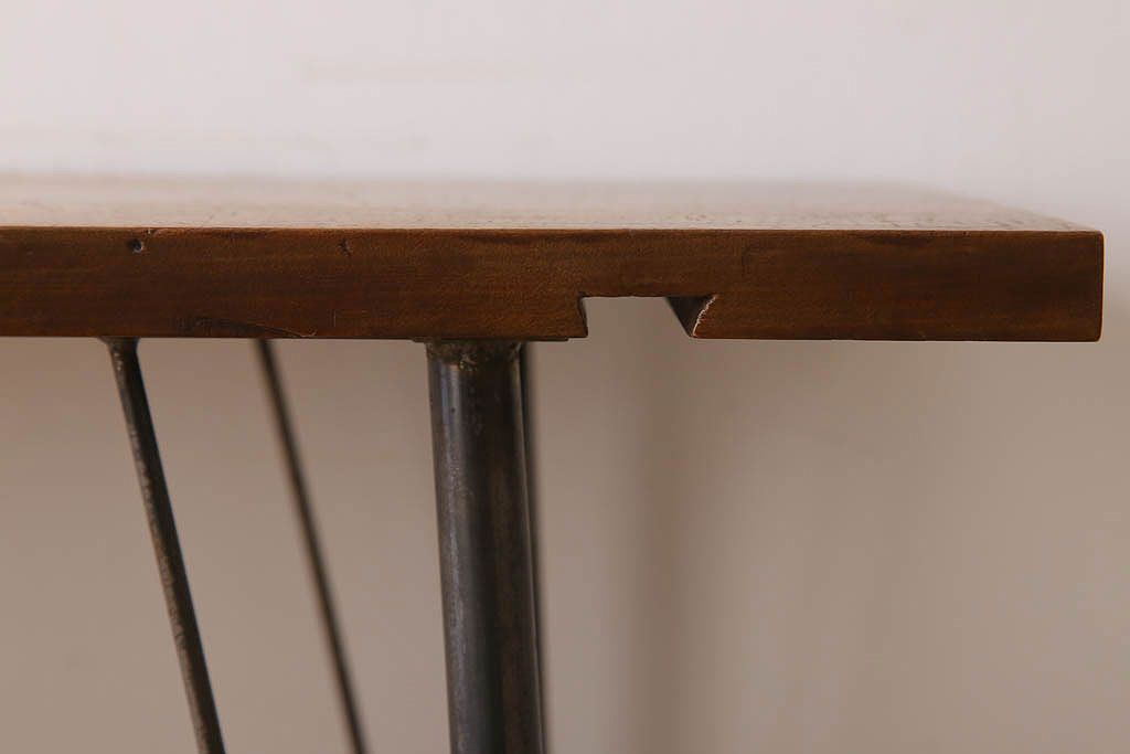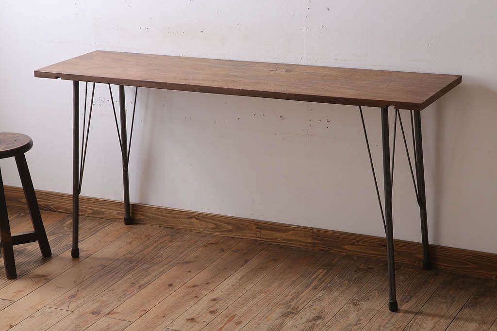 アンティーク家具 古材天板一枚板!アンティーク鉄脚テーブル(作業台、机)(2)