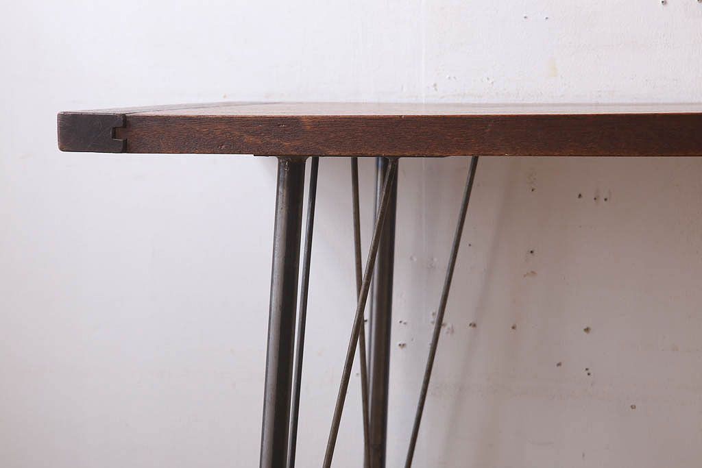 ラフジュ工房> テーブル> 鉄脚テーブル > アンティーク家具 古材天板!アンティーク鉄脚テーブル(作業台、机)(3)