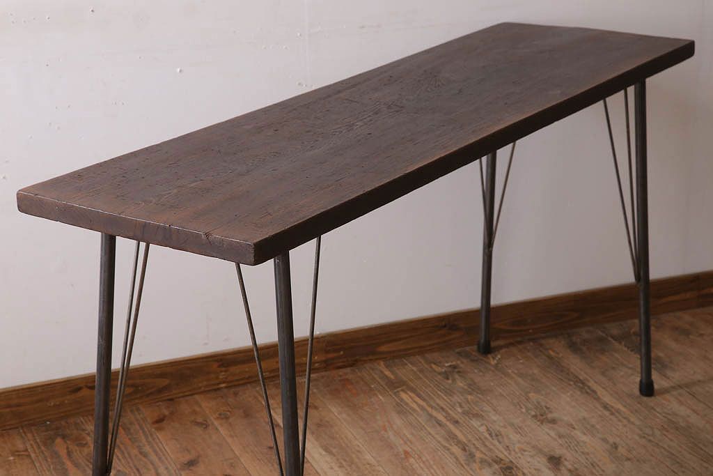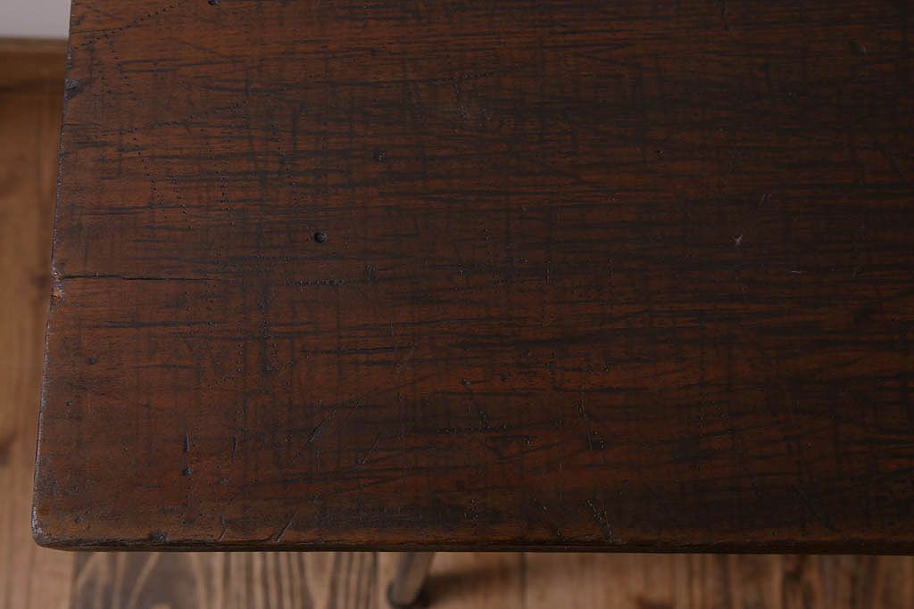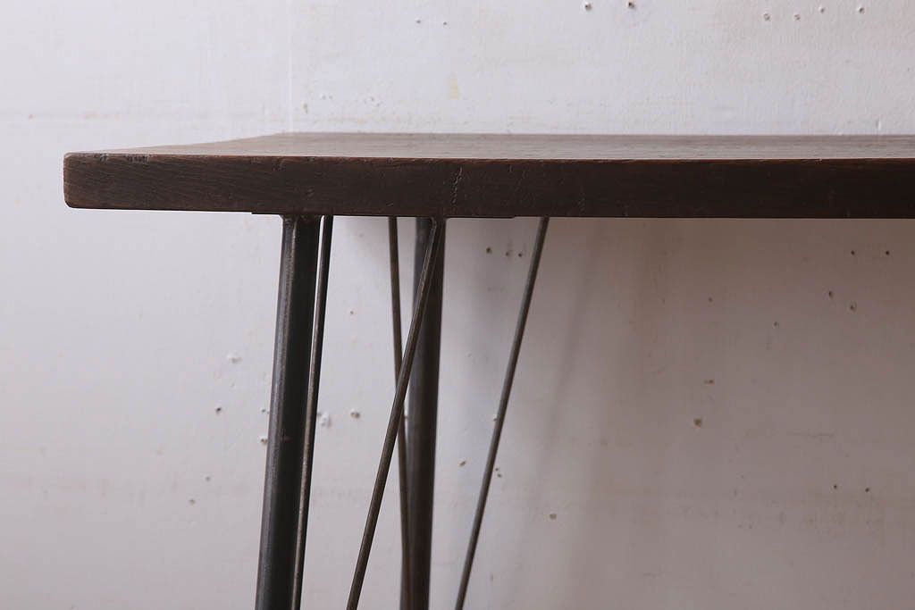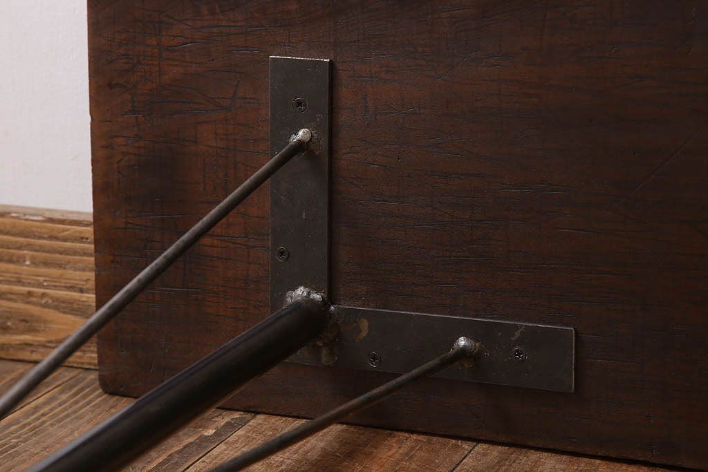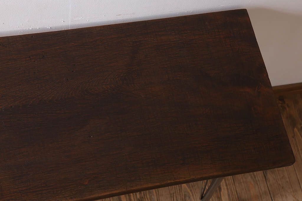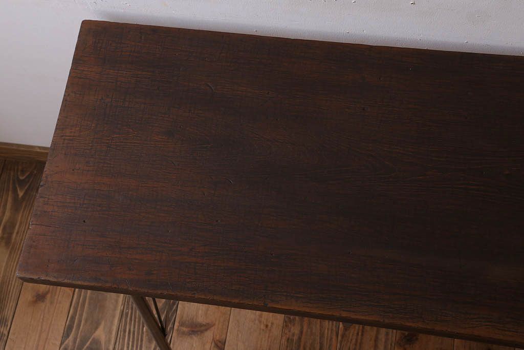 アンティーク家具 古材一枚板天板のアンティーク鉄脚テーブル(作業台、机)(1)