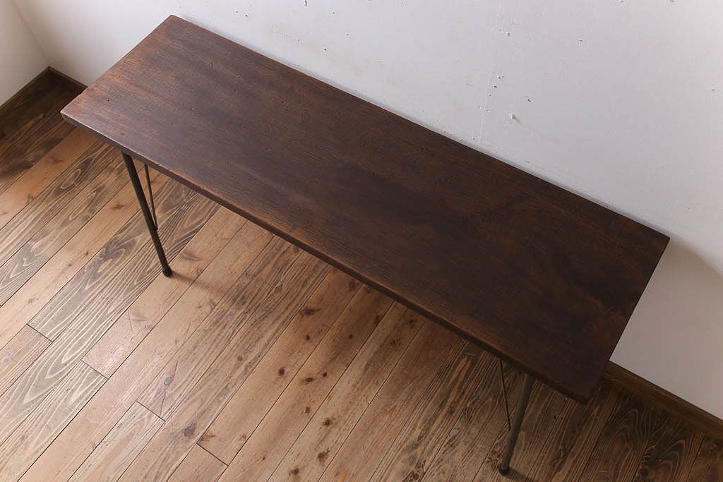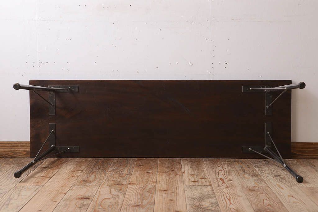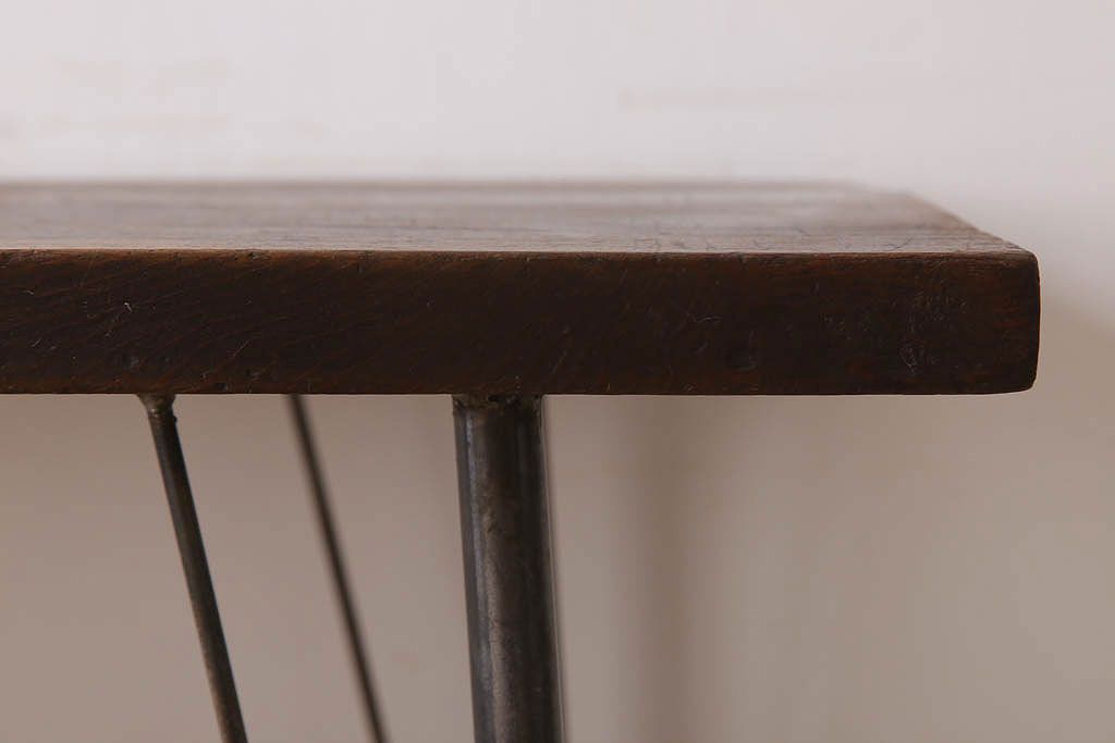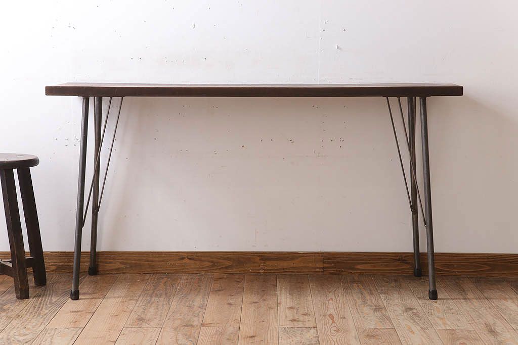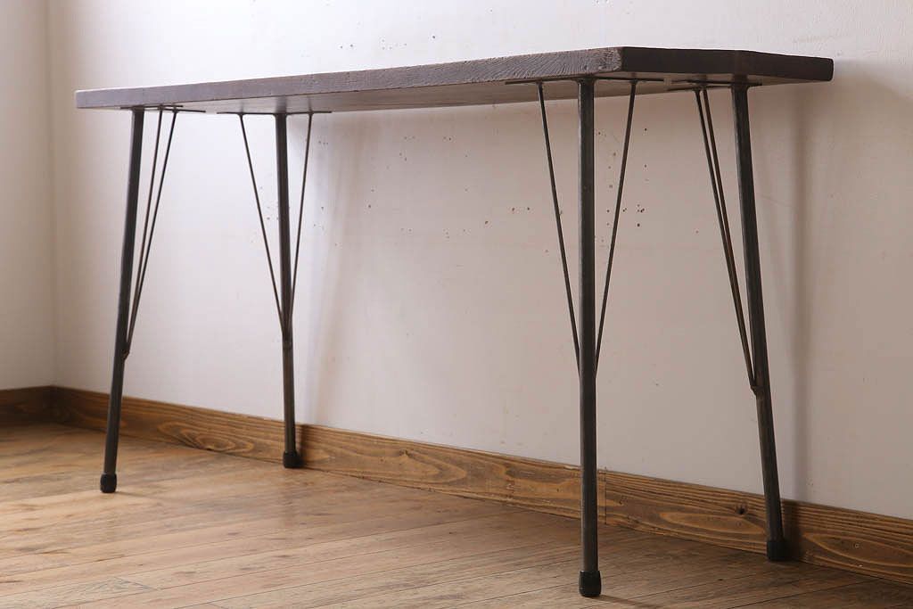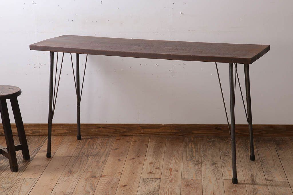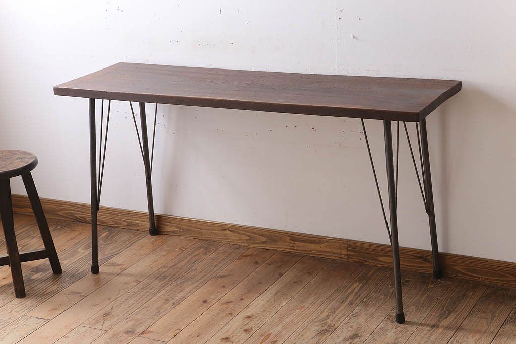 アンティーク家具 古材一枚板天板のアンティーク鉄脚テーブル(作業台、机)(1)
