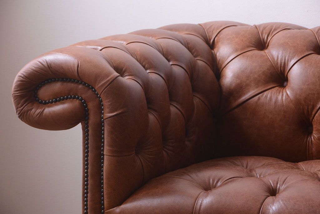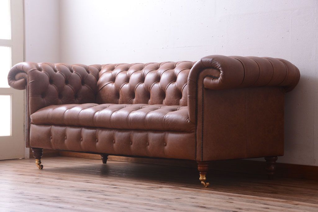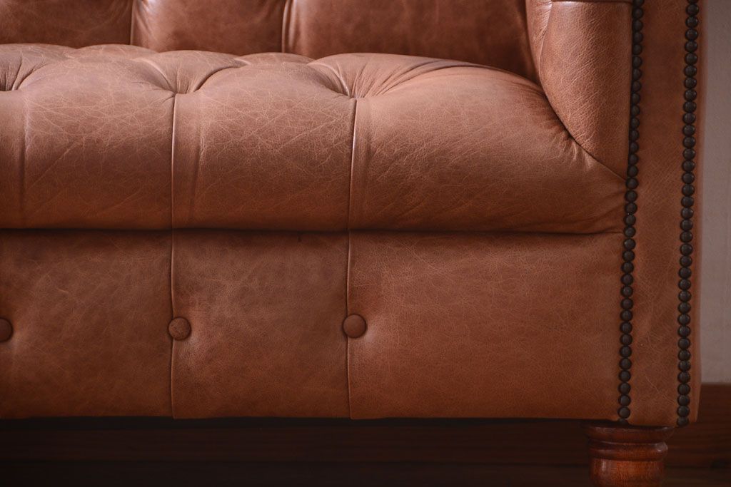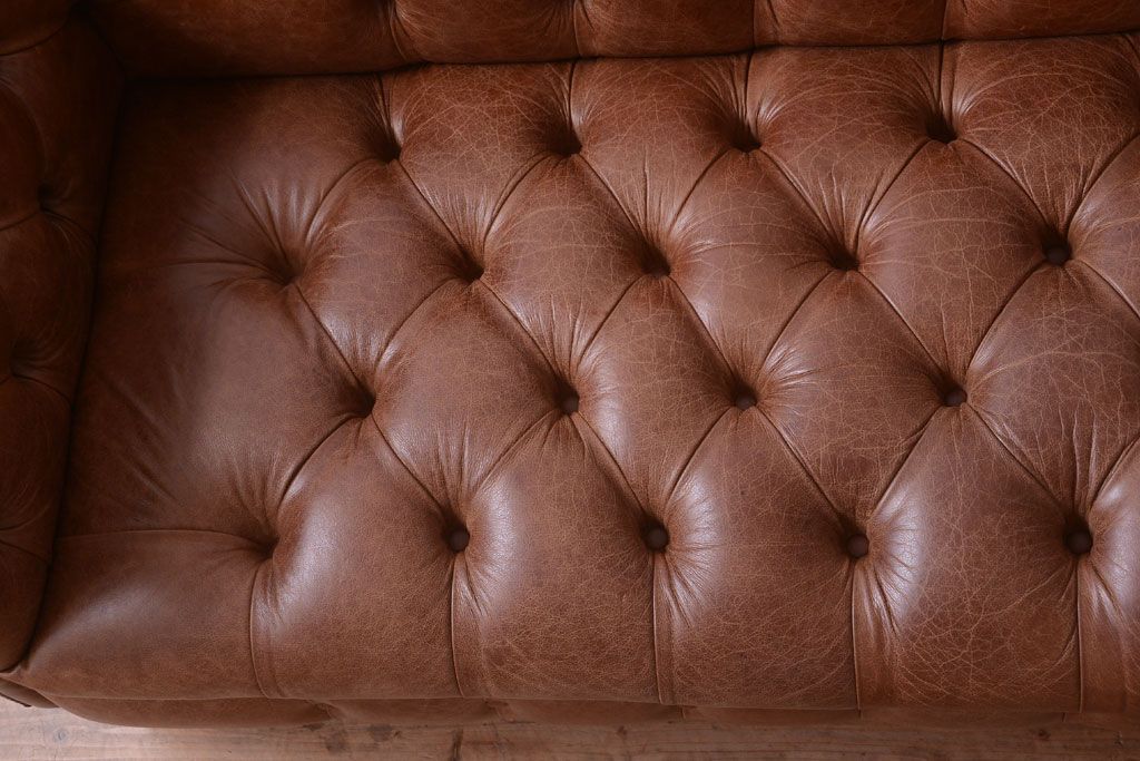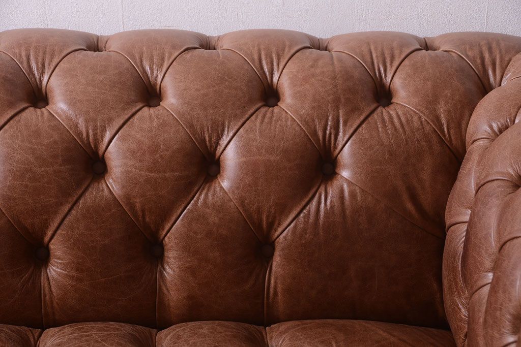 ヴィンテージ家具 イギリスビンテージ 本革製 ディスティンクティブ チェスターフィールドソファ