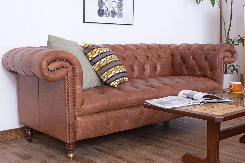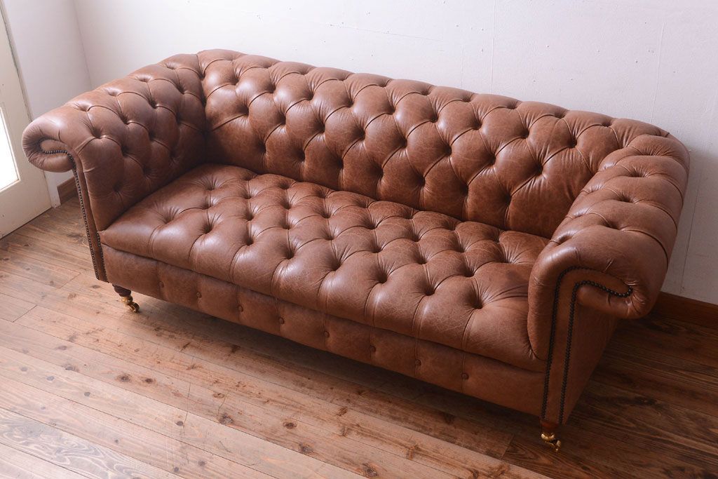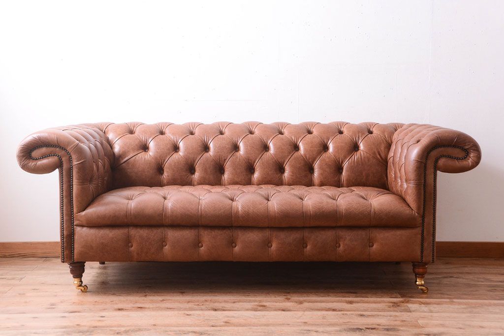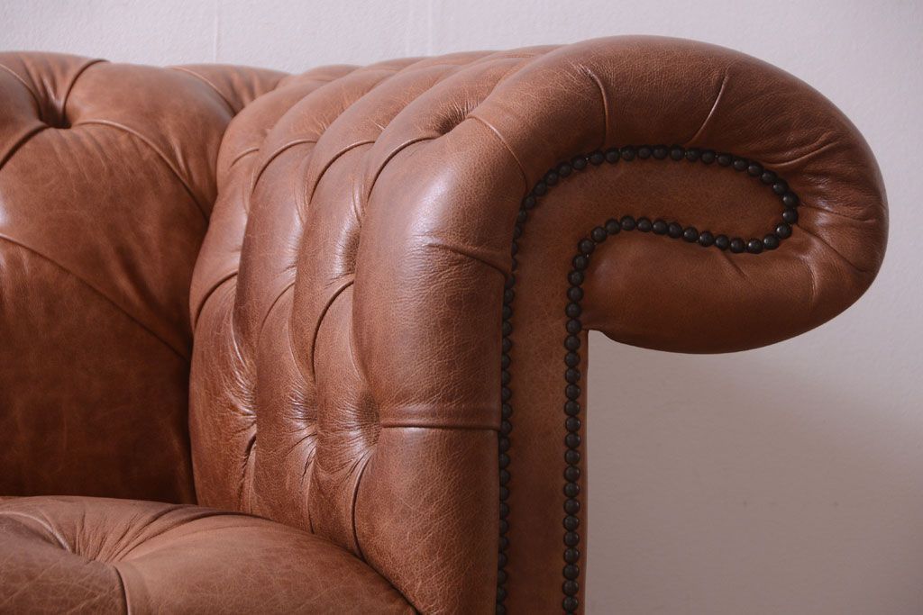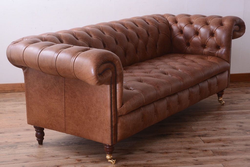 ヴィンテージ家具 イギリスビンテージ 本革製 ディスティンクティブ チェスターフィールドソファ
