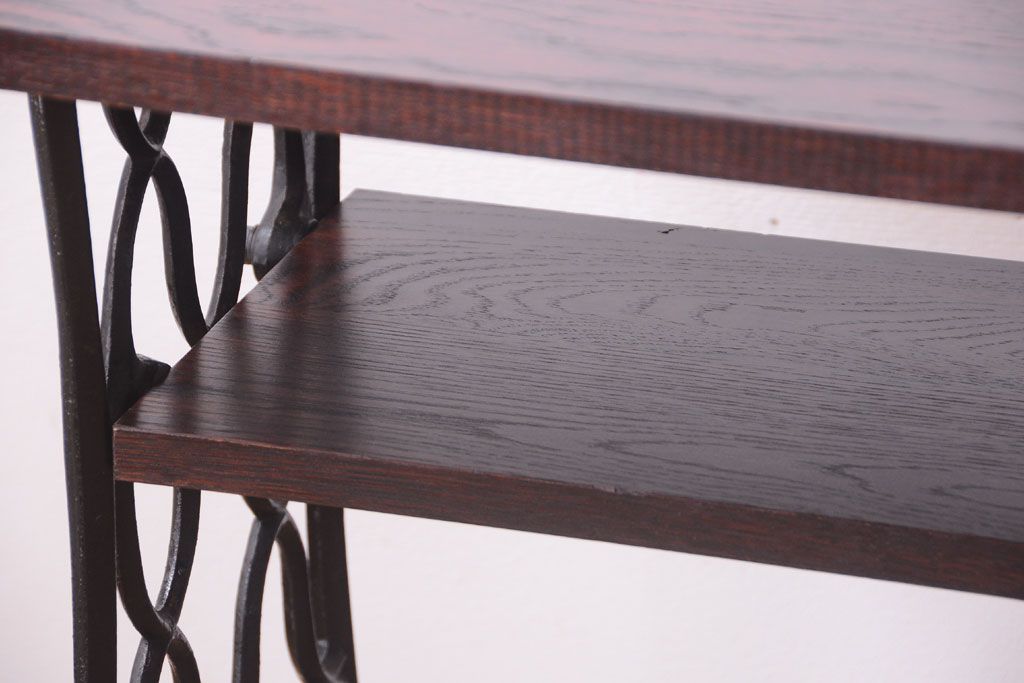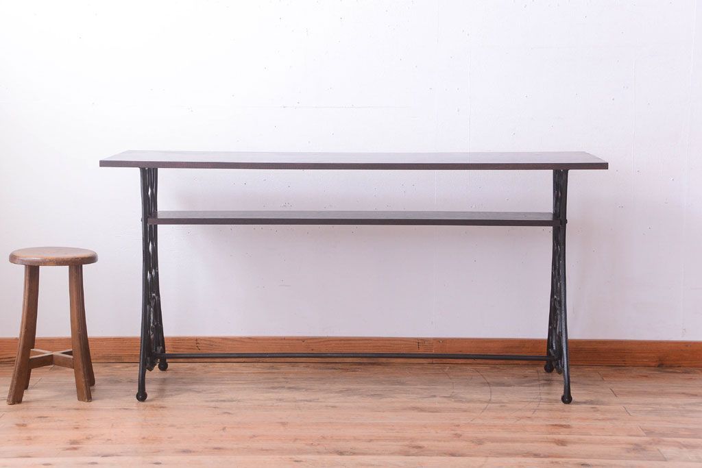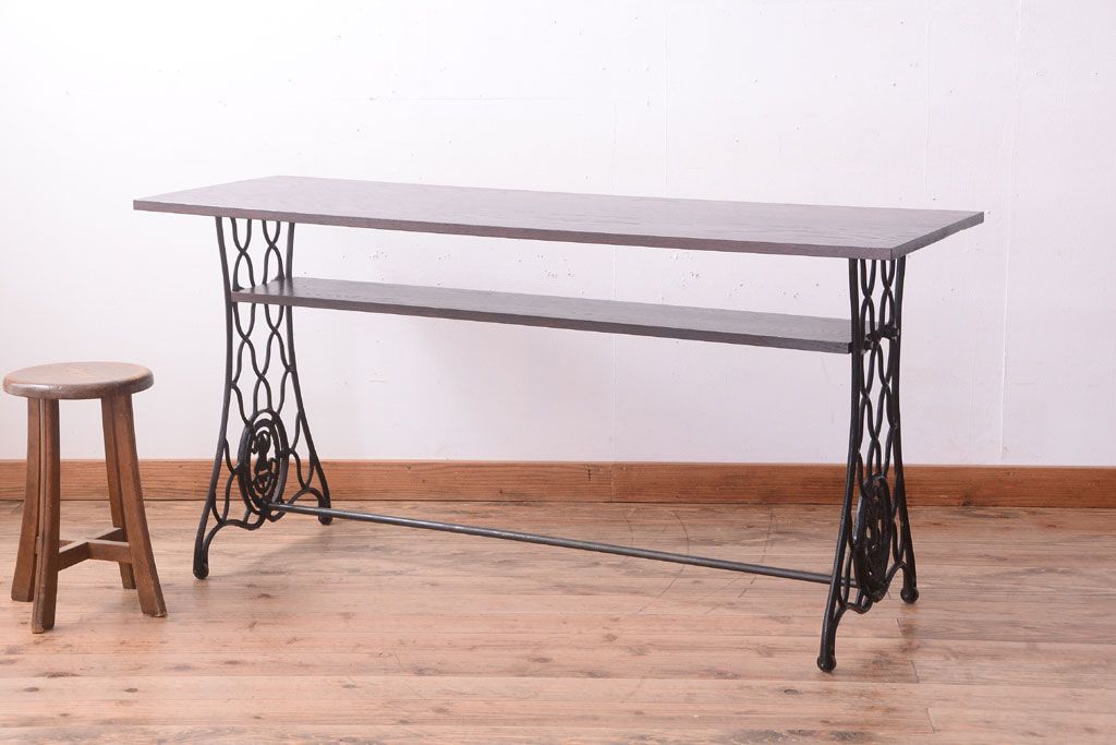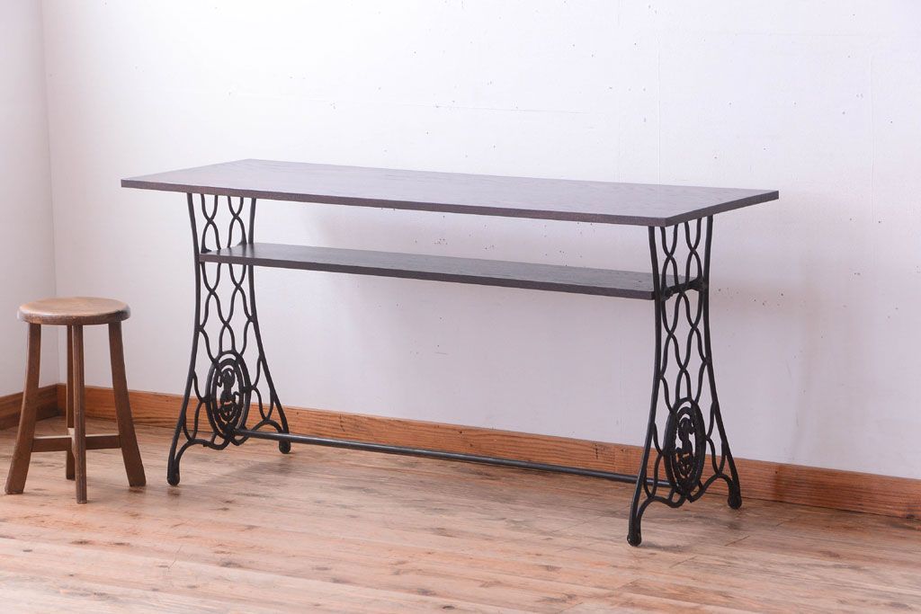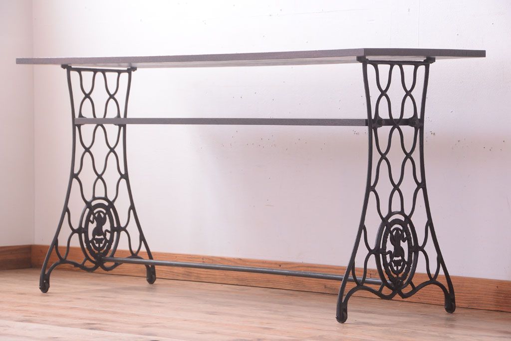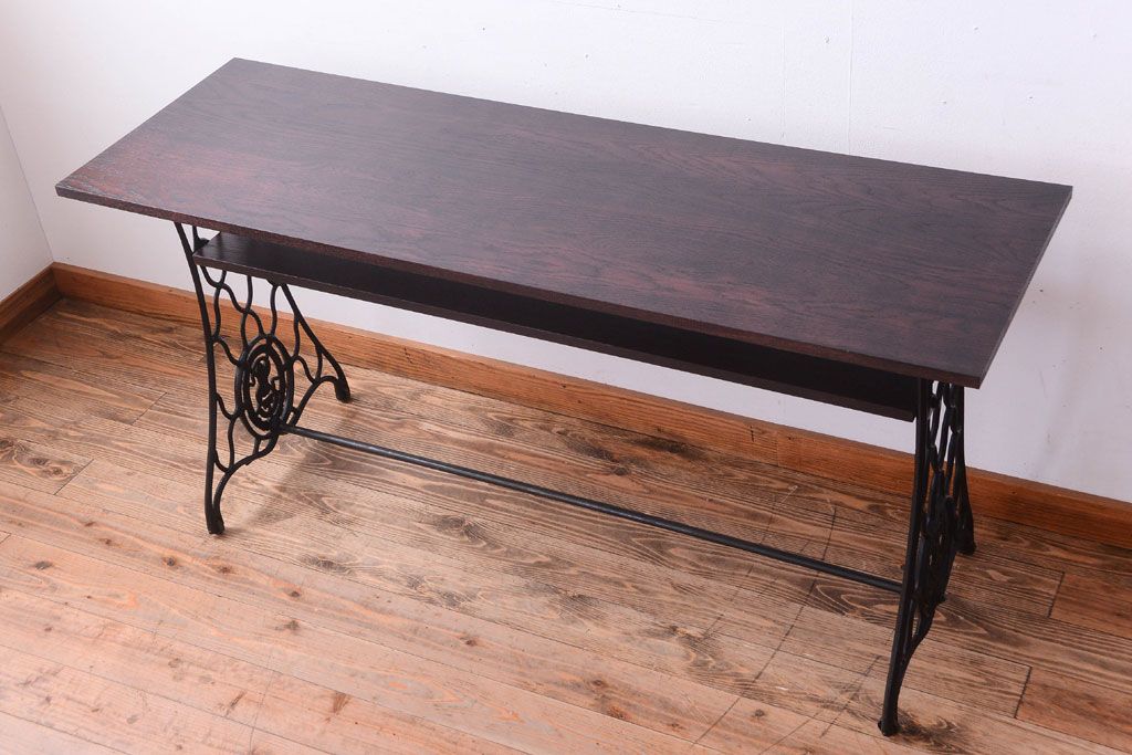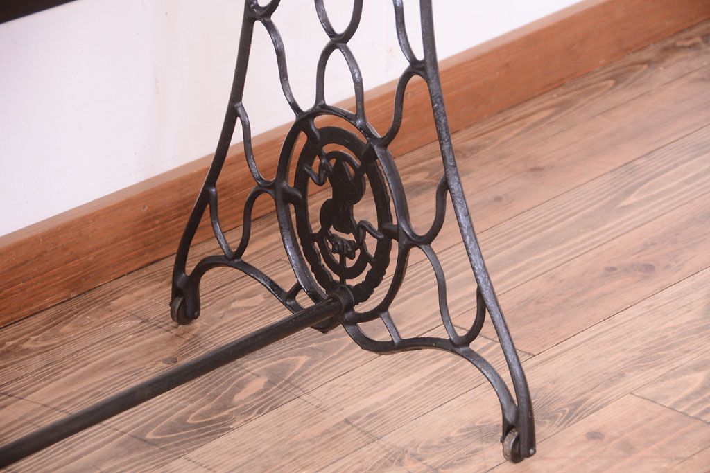 アンティーク家具 シンガーミシン オーク材天板!アンティークの鉄脚テーブル(ミシンテーブル)(1)