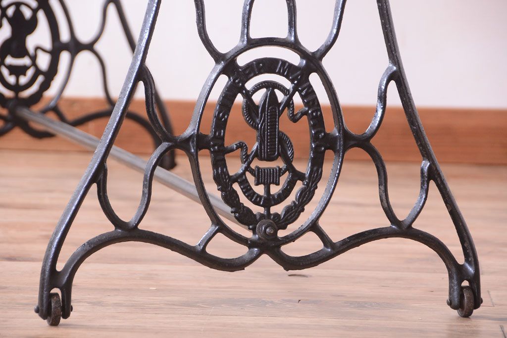 シンガーミシン特有のエレガントな鉄脚がお洒落な一品です。
