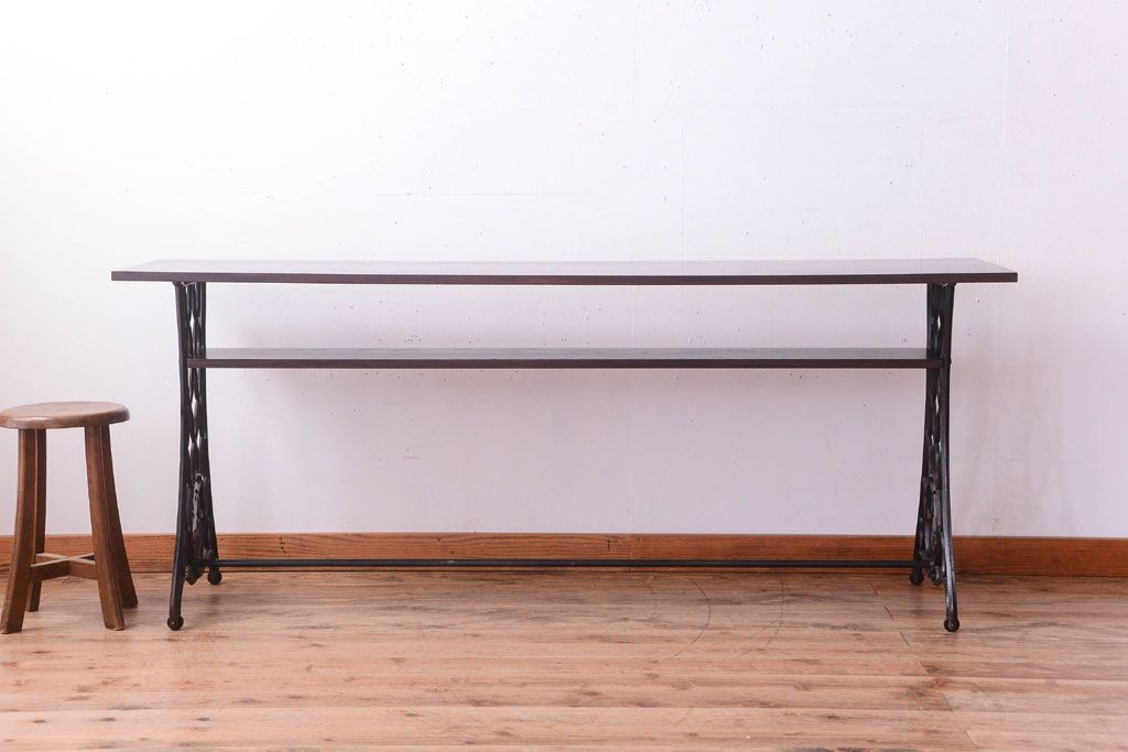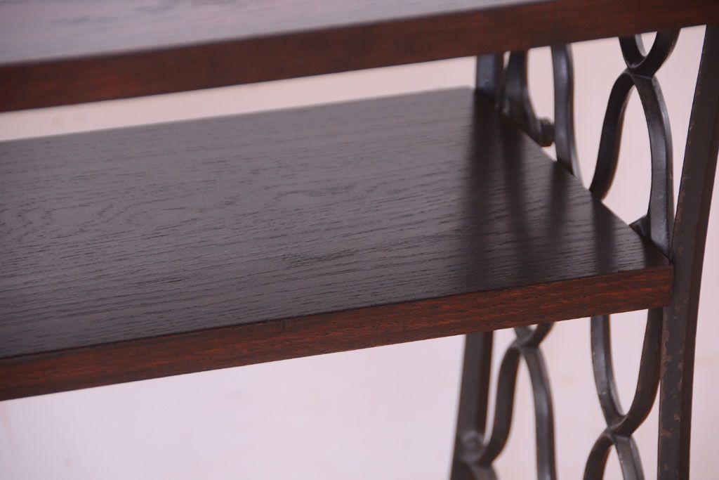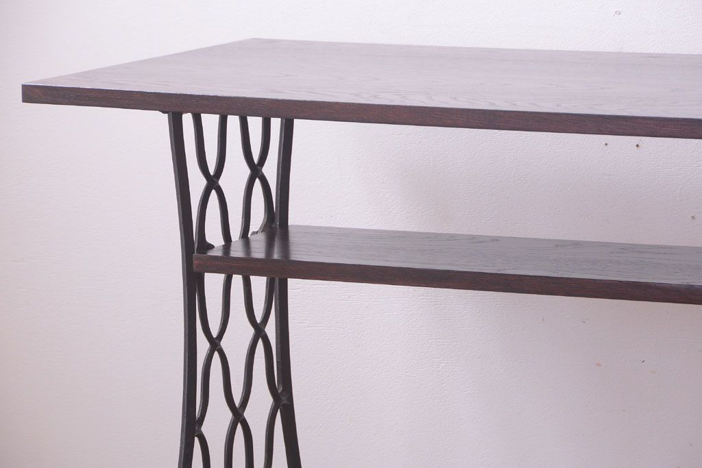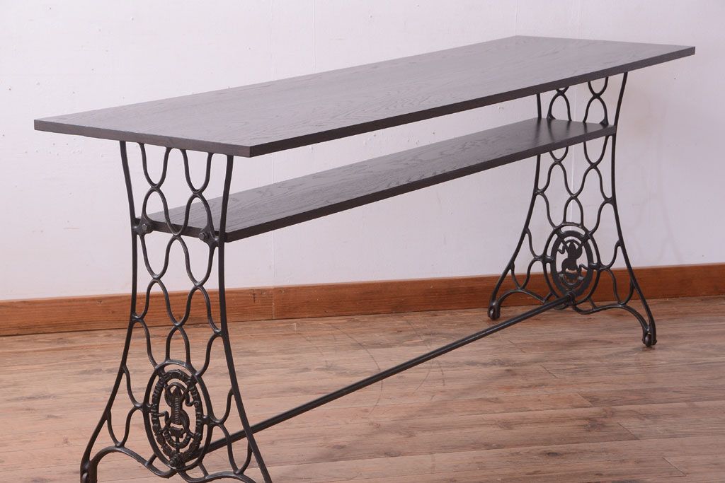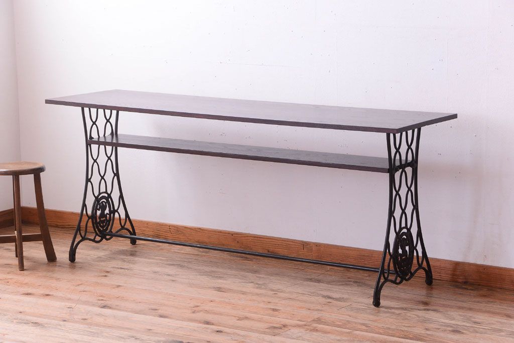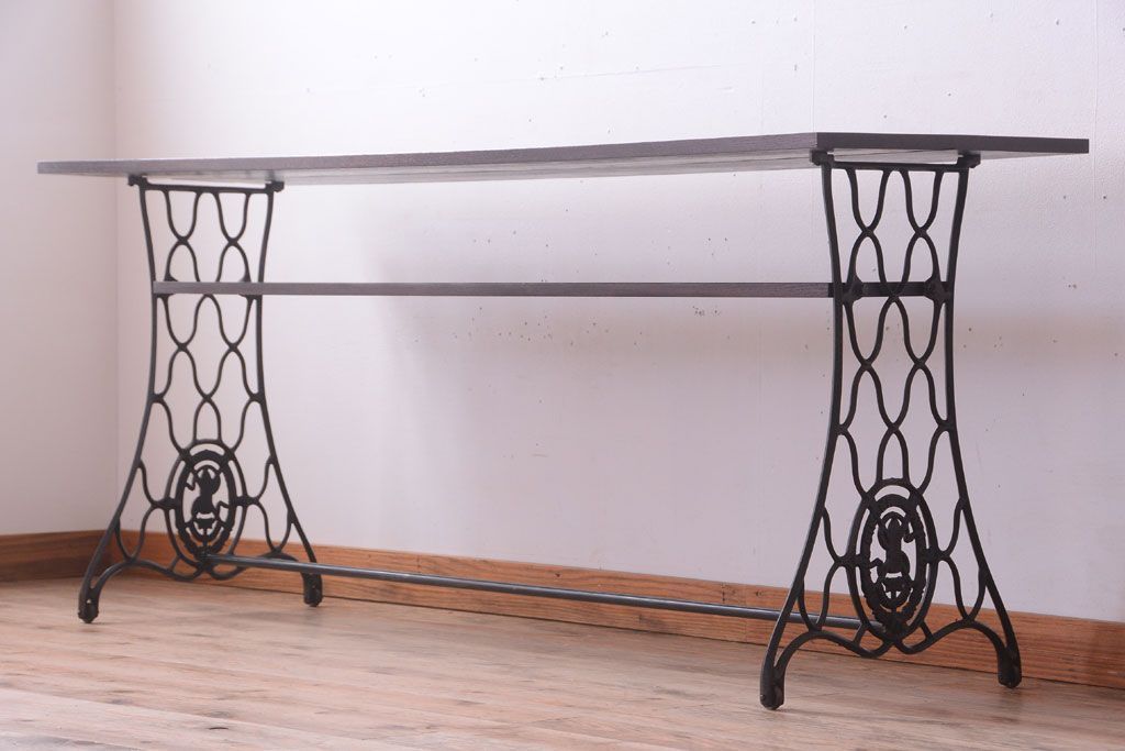 テーブル> ミシンテーブル > アンティーク家具 シンガーミシン オーク材天板!アンティークの鉄脚テーブル(ミシンテーブル、ミシン台)(2)