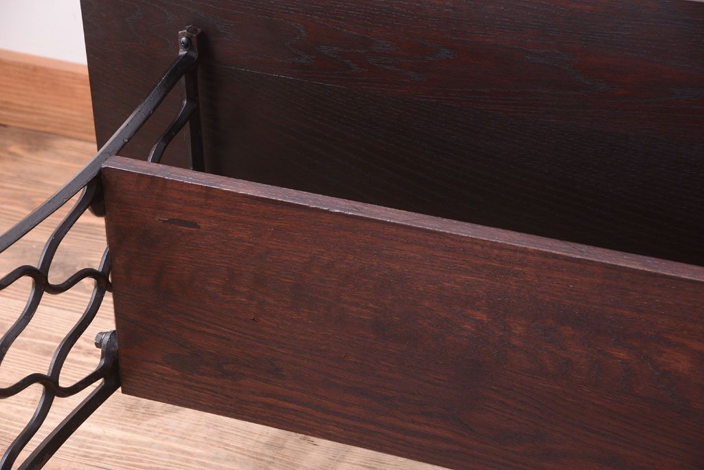 アンティーク家具 シンガーミシン オーク材天板!アンティークの鉄脚テーブル(ミシンテーブル、ミシン台)(2)