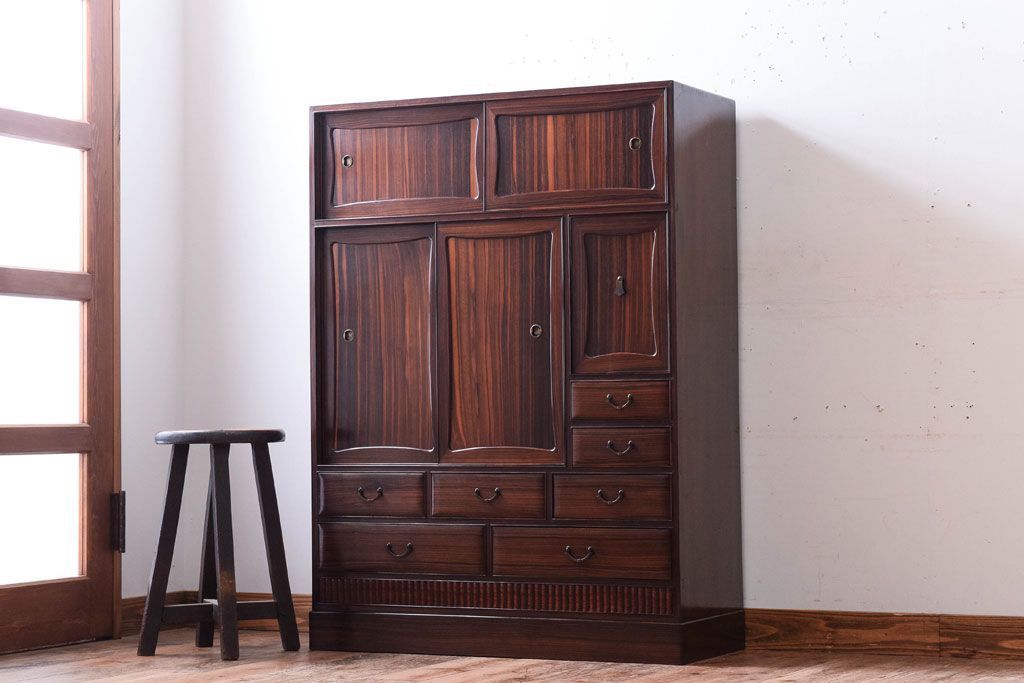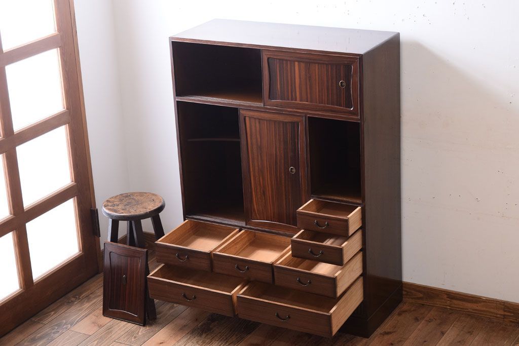 アンティーク家具 縞黒檀材!上質なアンティーク茶箪笥