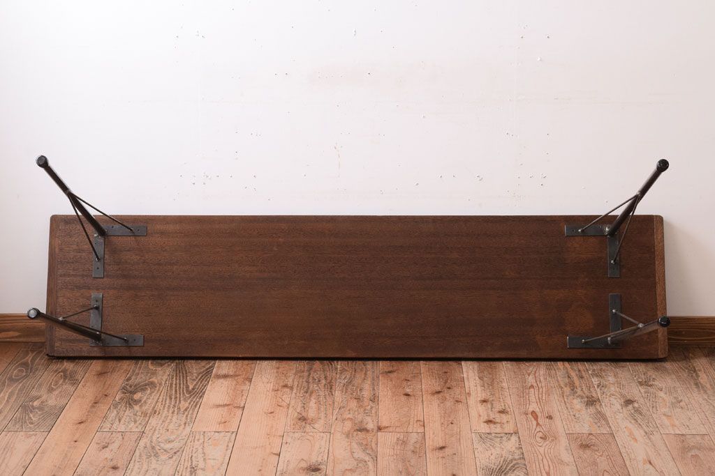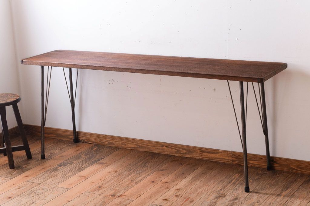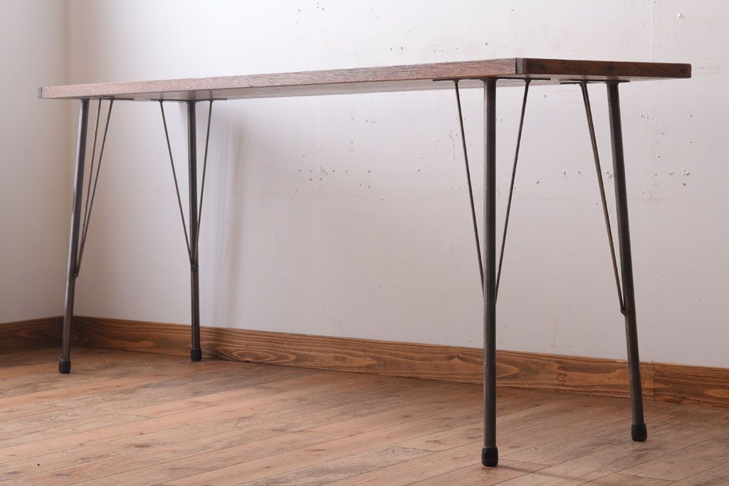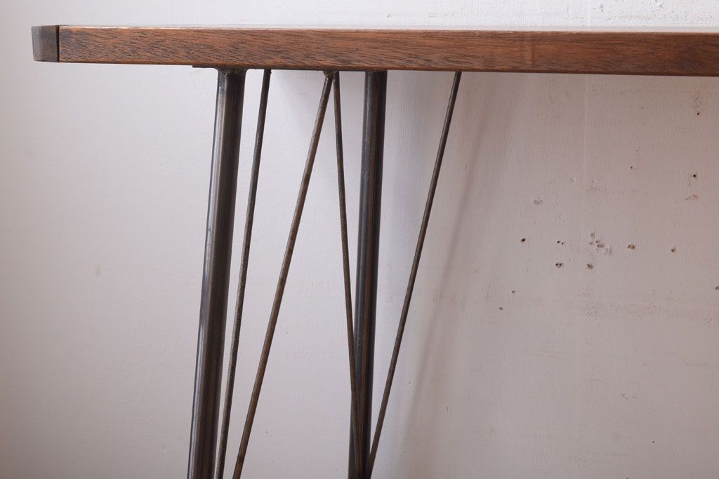 アンティーク家具 古材一枚板天板!鉄脚テーブル(作業台、机)(1)