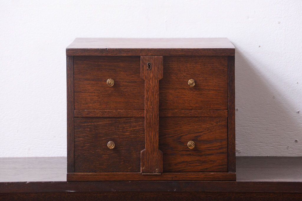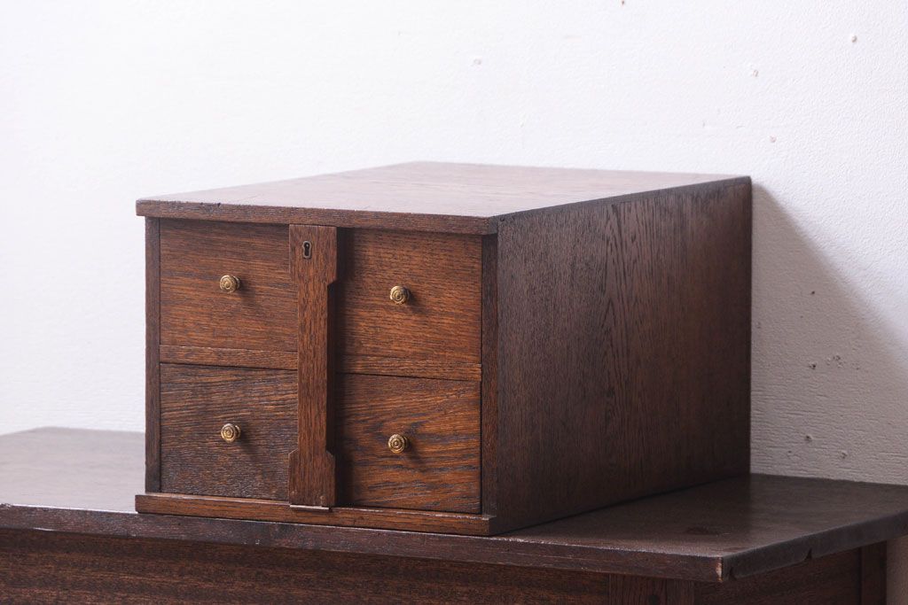 アンティーク家具 イギリスアンティーク オーク材の小引き出し(鍵付き)