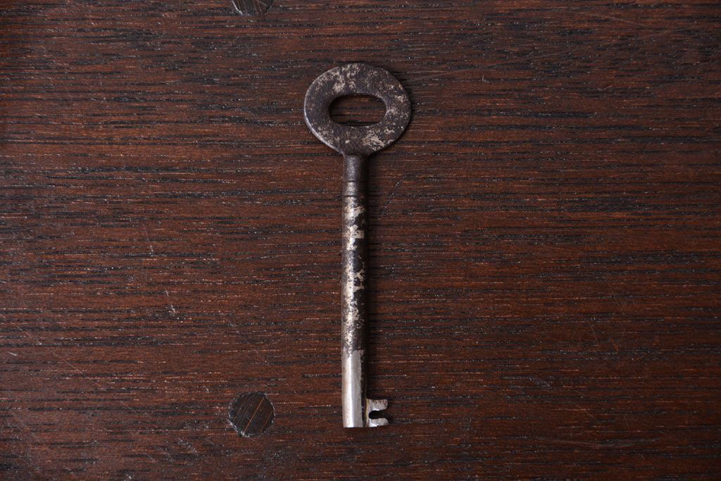 鍵は付属します。画像にありますように、袋に入れお付けします。スムーズに動くように調整していますが、あくまでも古いものや中古品ですので、長期の使用保証は出来かねます。ご購入後不具合が発生した場合は、当店でサポートさせていただきますので、お気軽にご相談くださいませ。