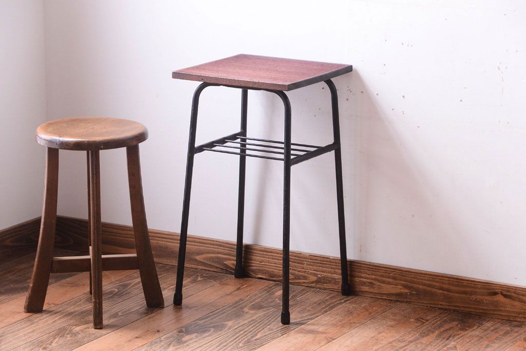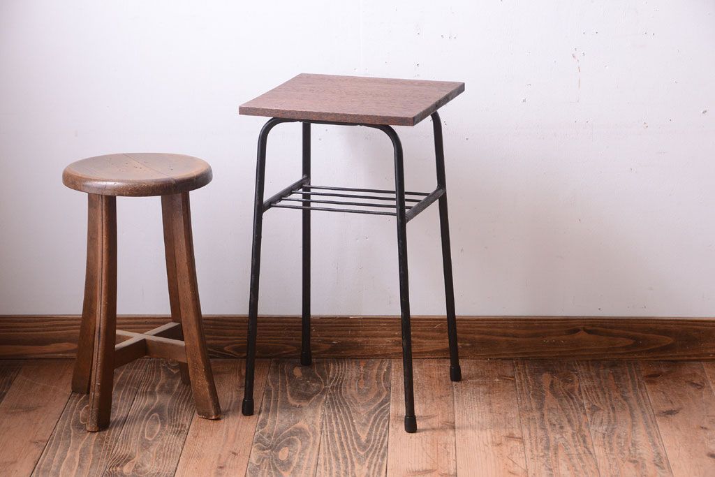 アンティーク家具 シンプルな鉄脚サイドテーブル(1)
