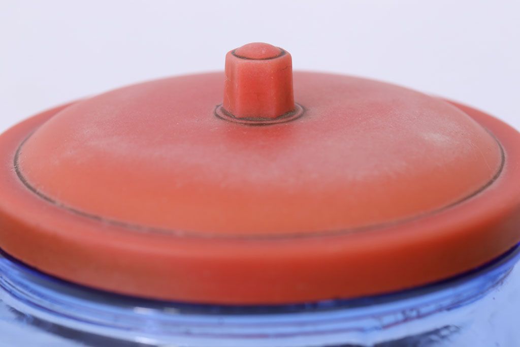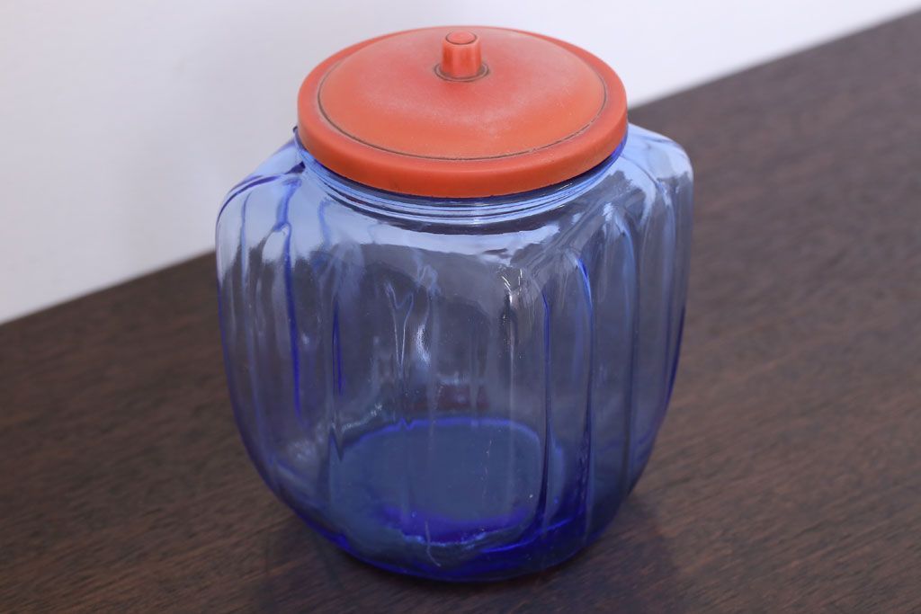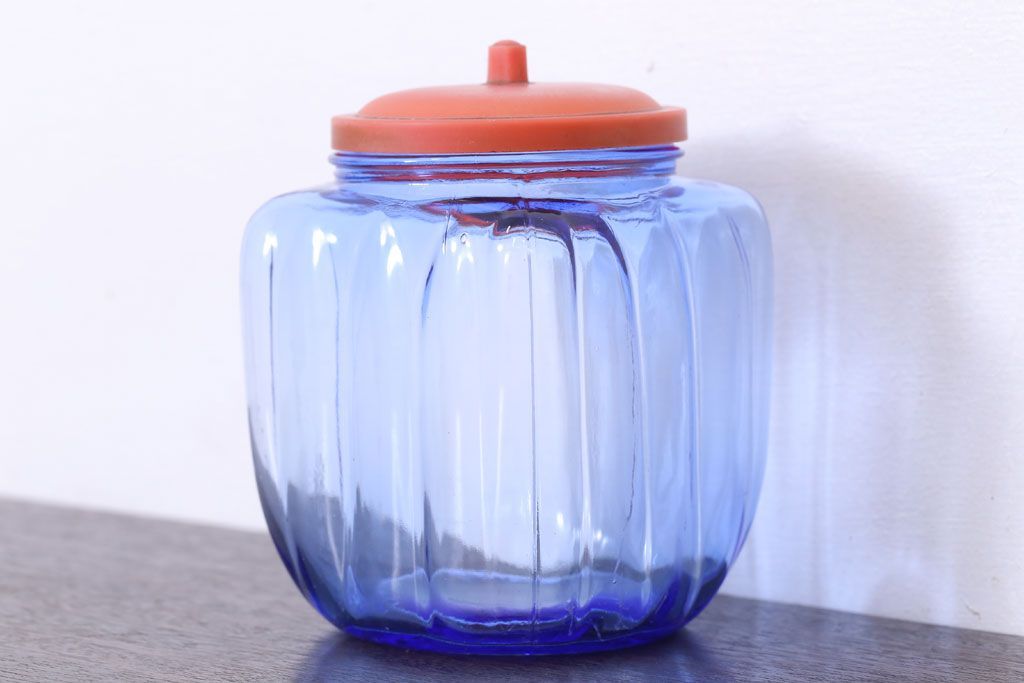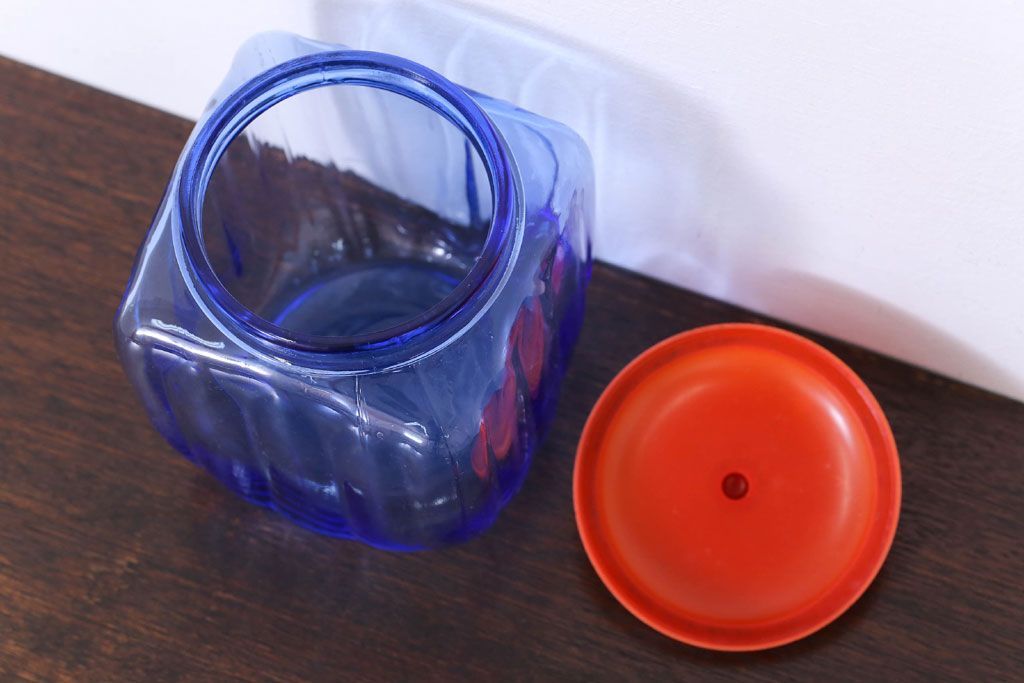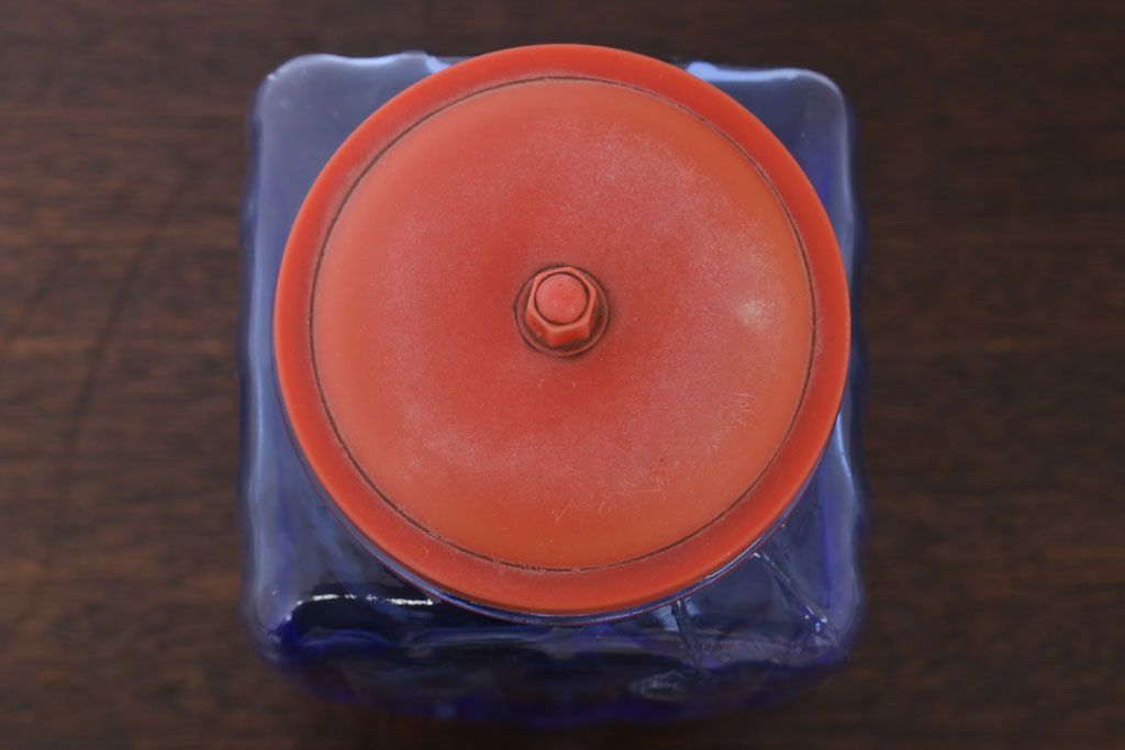 ラフジュ工房> 雑貨> ガラス瓶・花瓶 > アンティーク雑貨 和製アンティーク 大正〜昭和 戦前 プラスチック蓋の青色ガラス瓶
