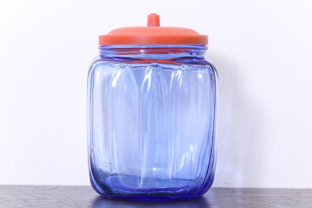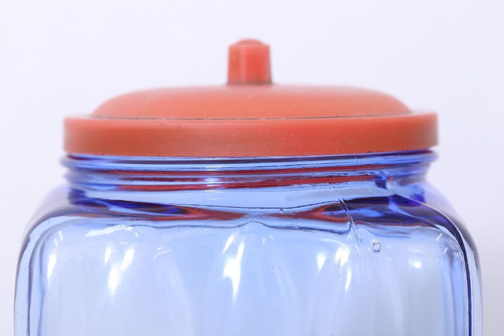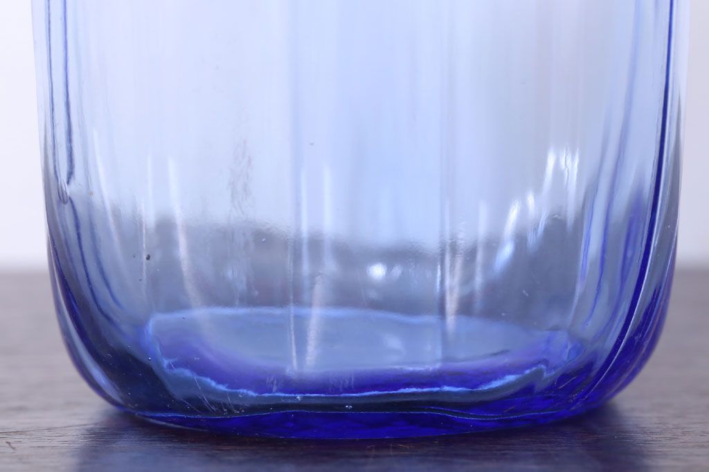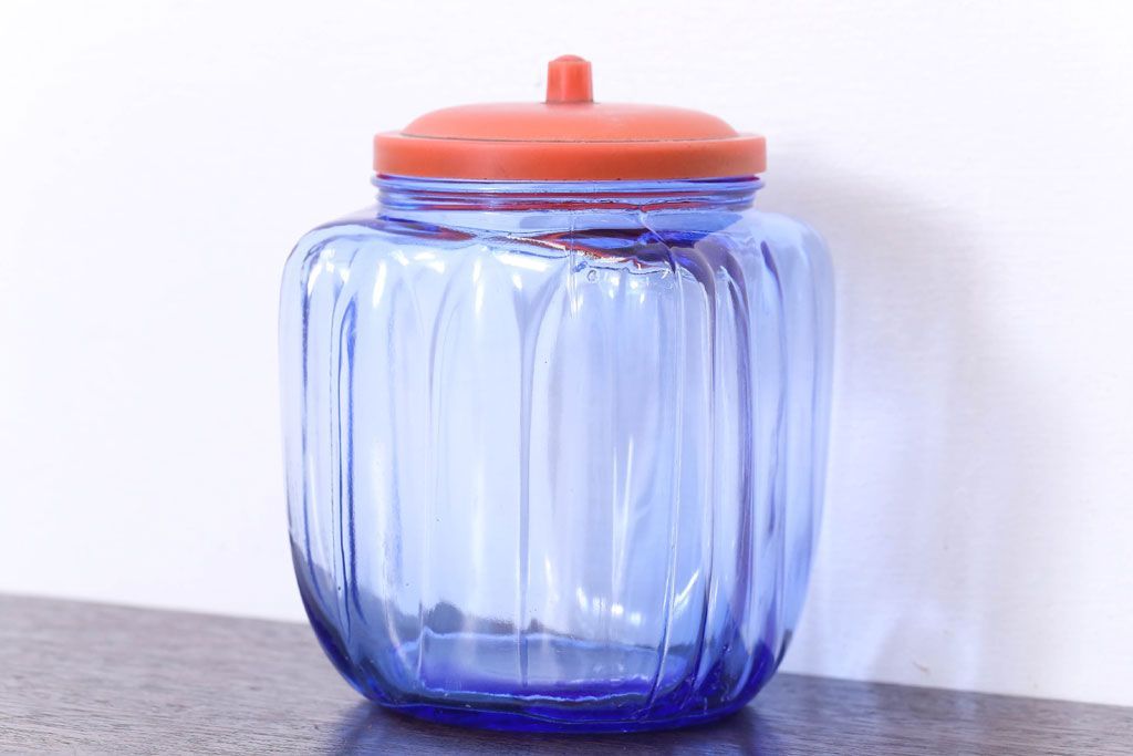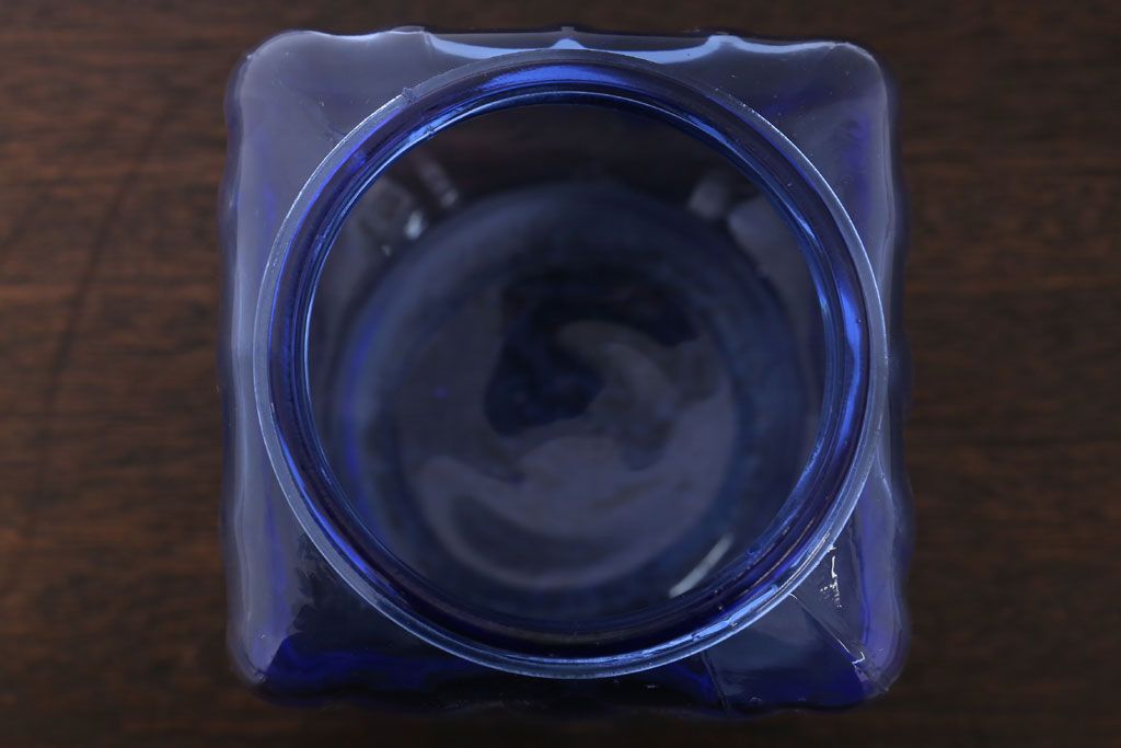 ラフジュ工房> 雑貨> ガラス瓶・花瓶 > アンティーク雑貨 和製アンティーク 大正〜昭和 戦前 プラスチック蓋の青色ガラス瓶