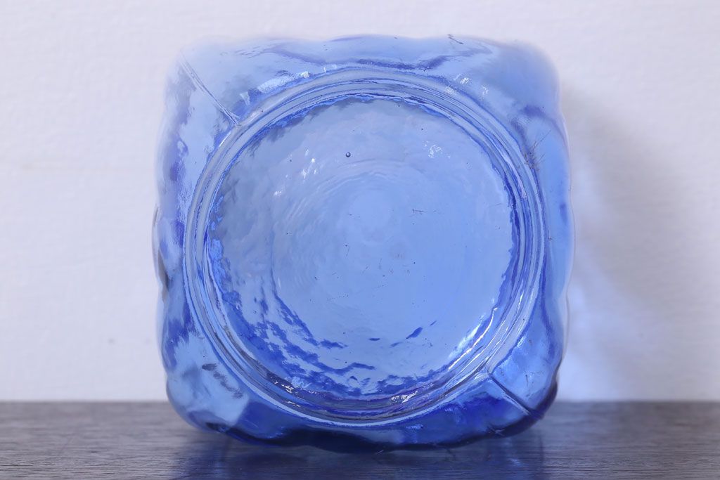 アンティーク雑貨 和製アンティーク 大正〜昭和 戦前 プラスチック蓋の青色ガラス瓶