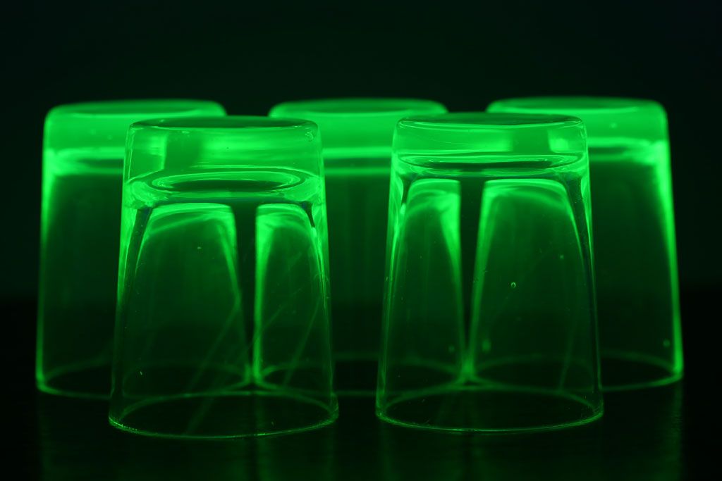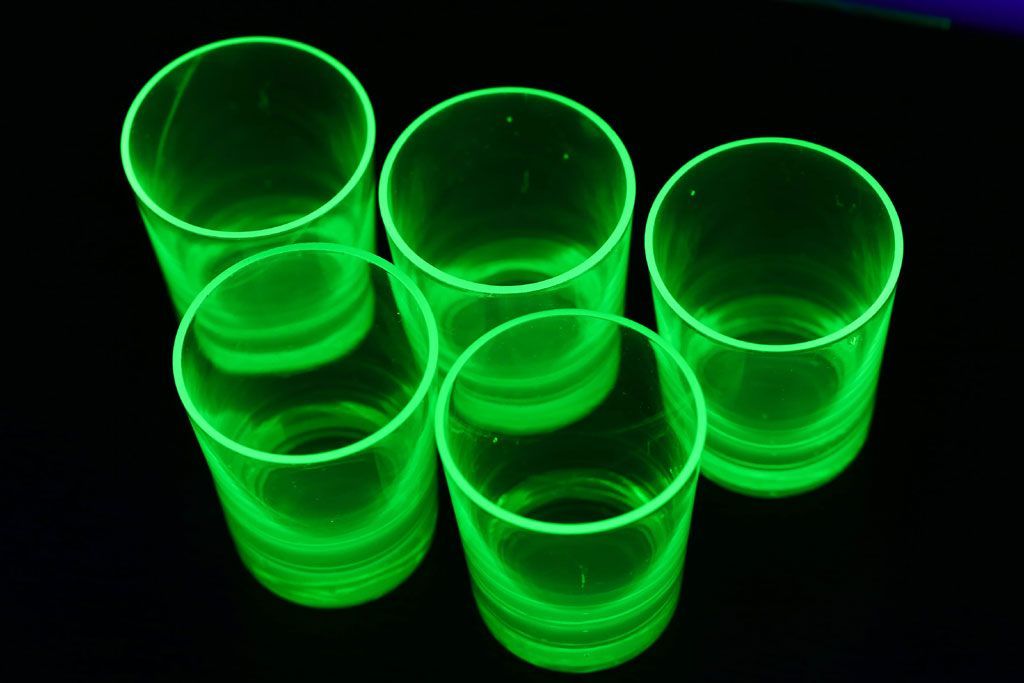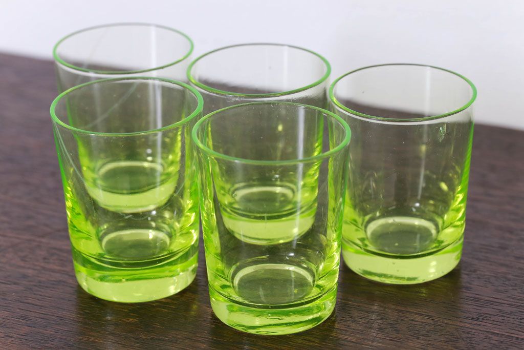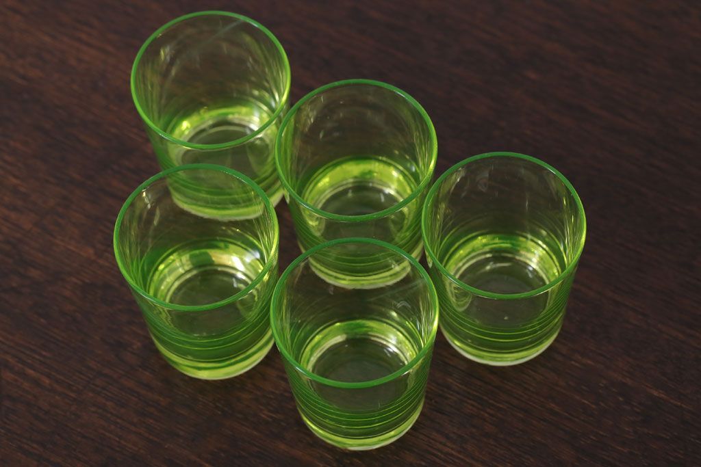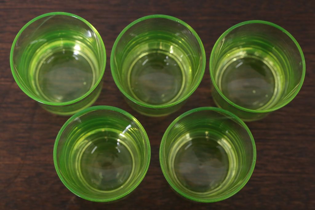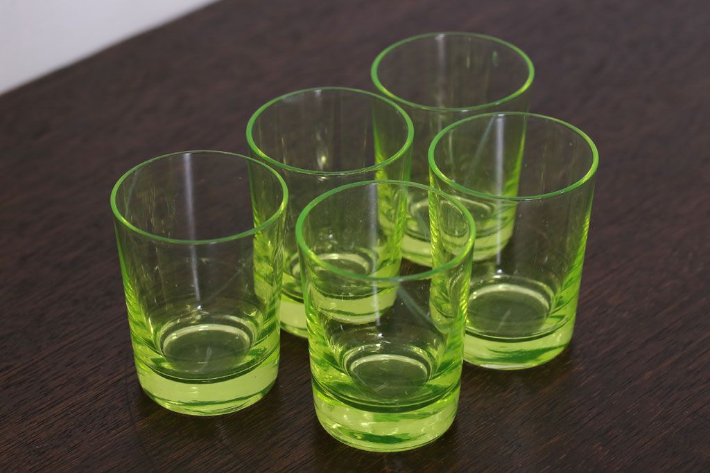 和製アンティーク ウランガラスのコップ(5点セット)です。