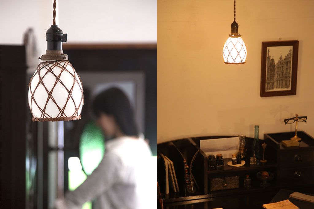 網目デザイン 大正ロマンなミルクガラスの天井照明(2)