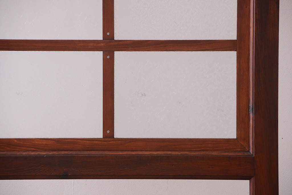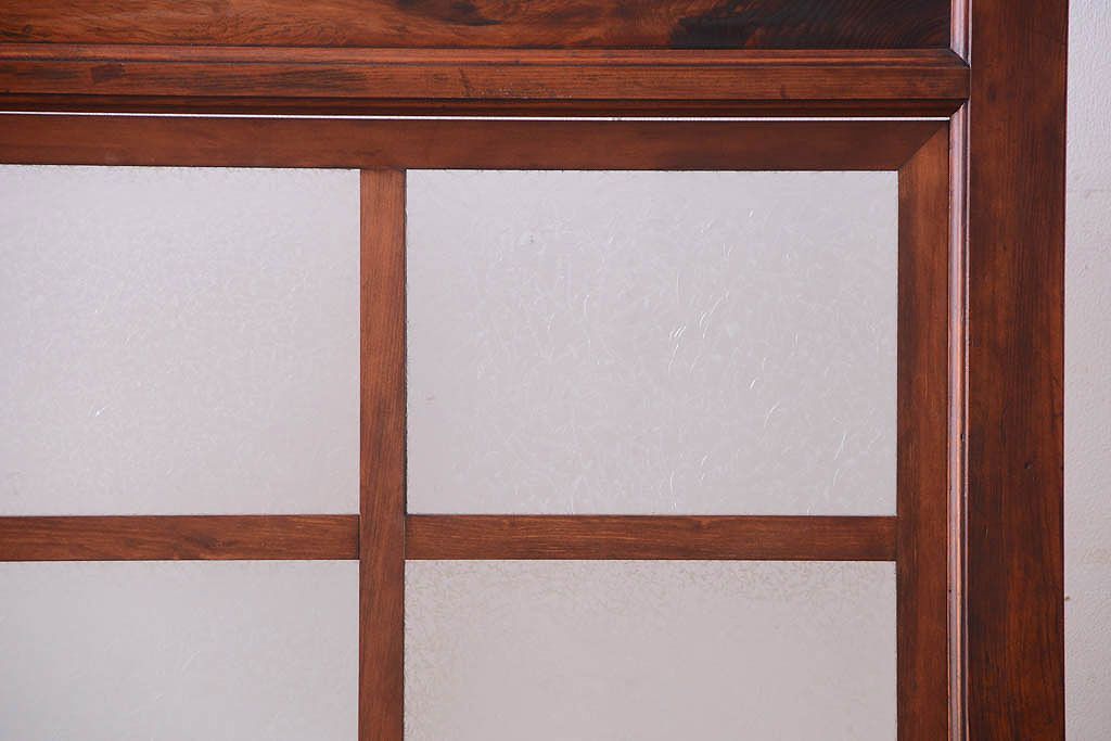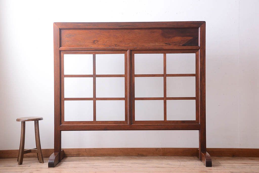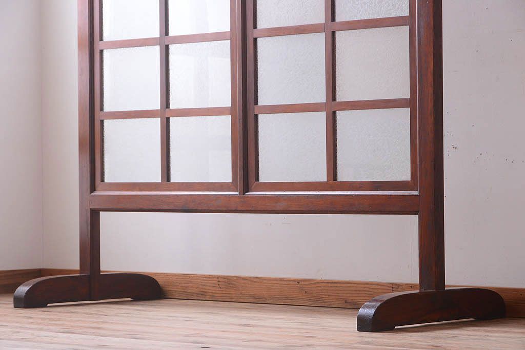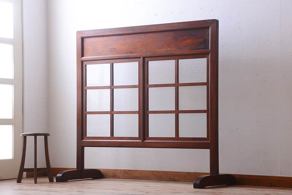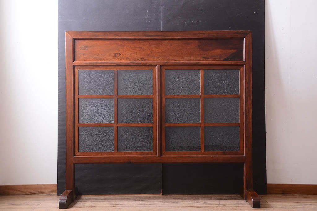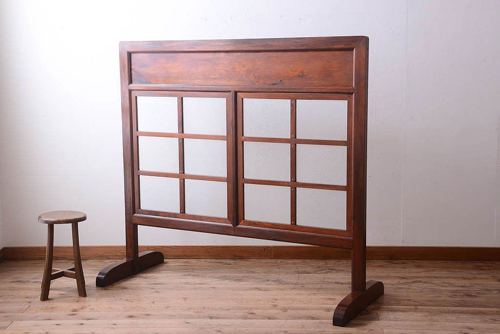 古い木製 葉ガラス入り 和製アンティークの衝立