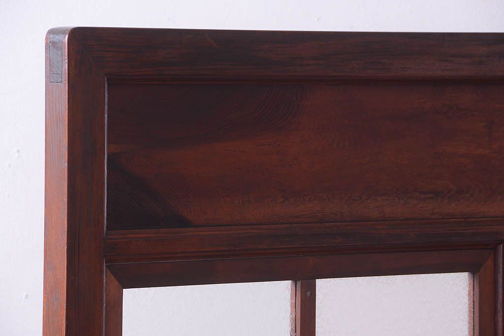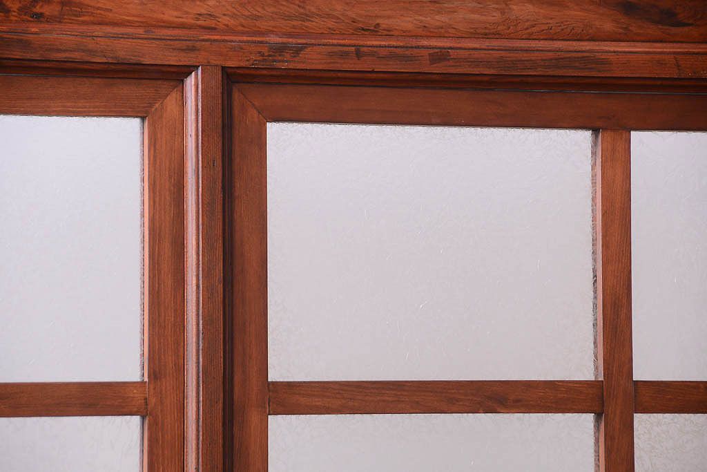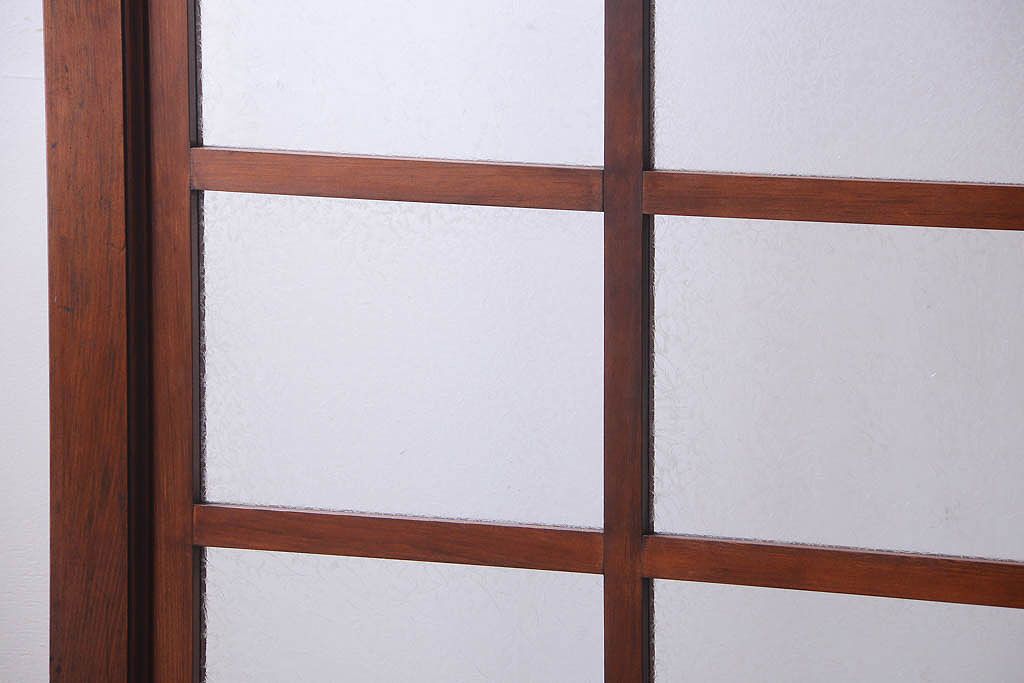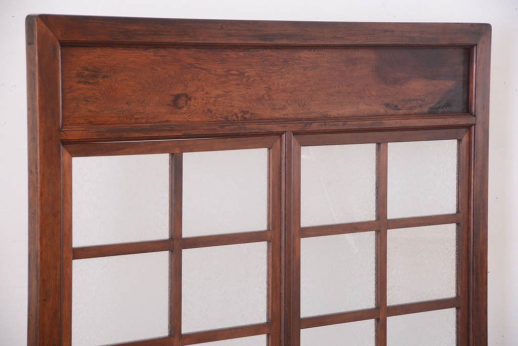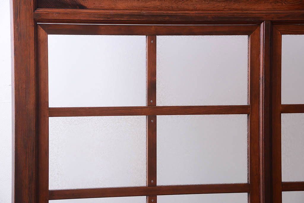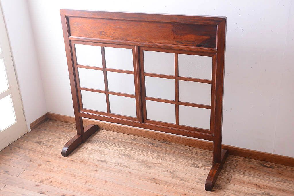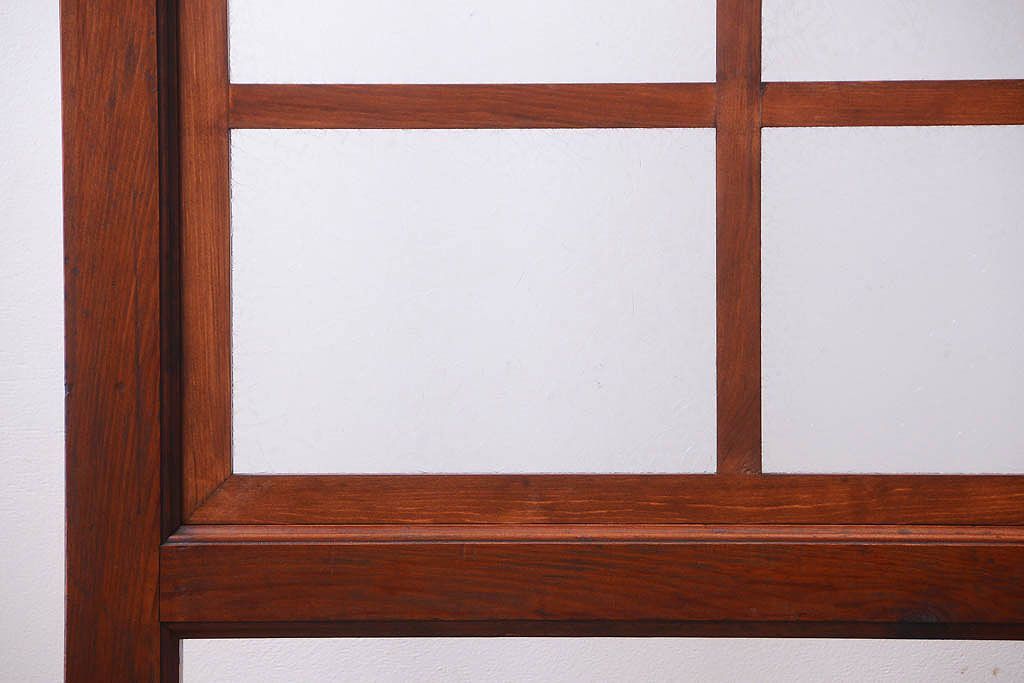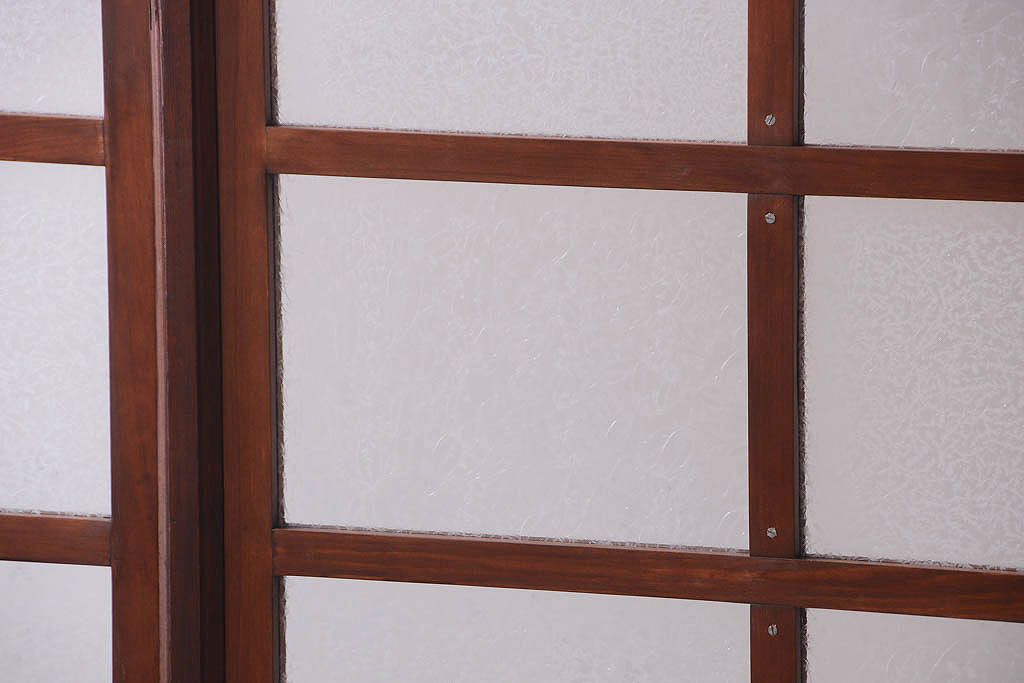 古い木製 葉ガラス入り 和製アンティークの衝立