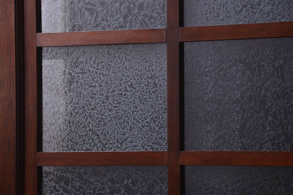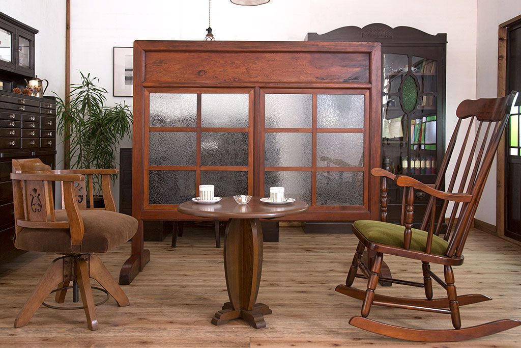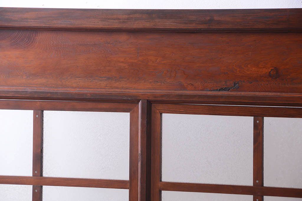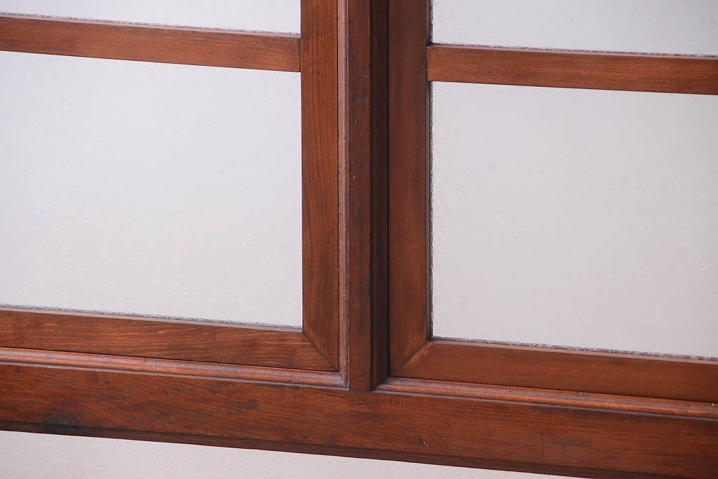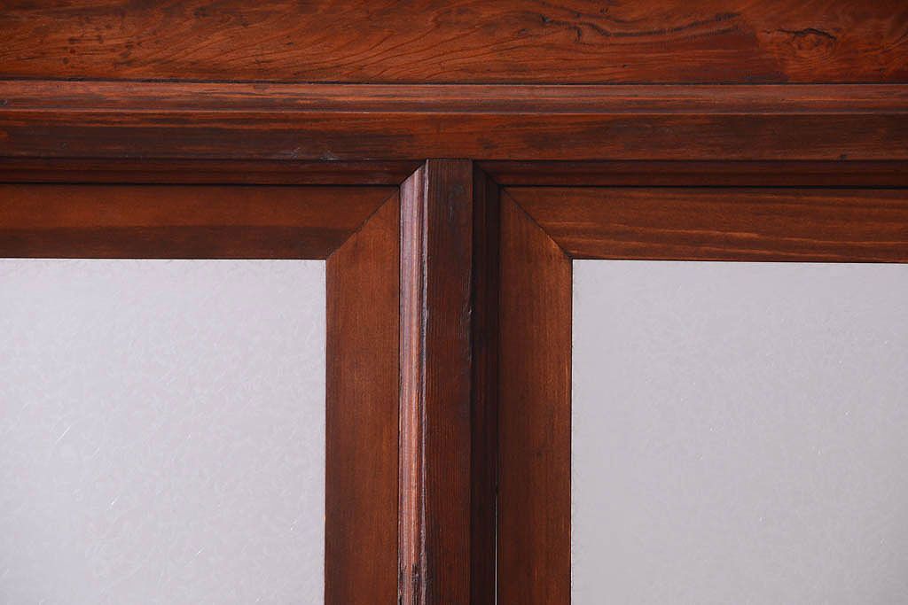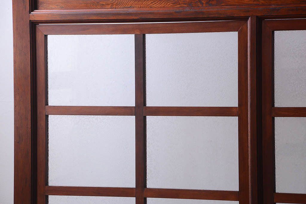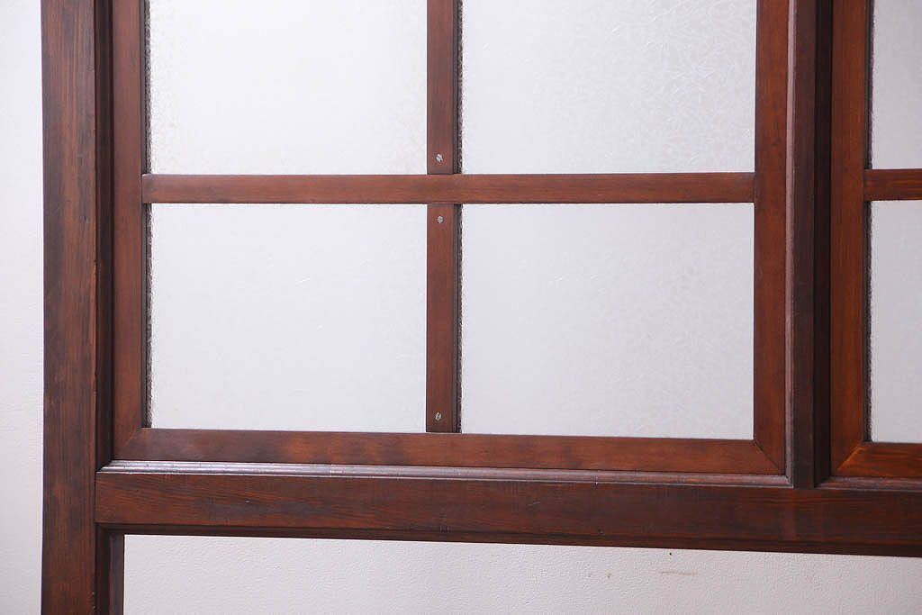 古い木製 葉ガラス入り 和製アンティークの衝立