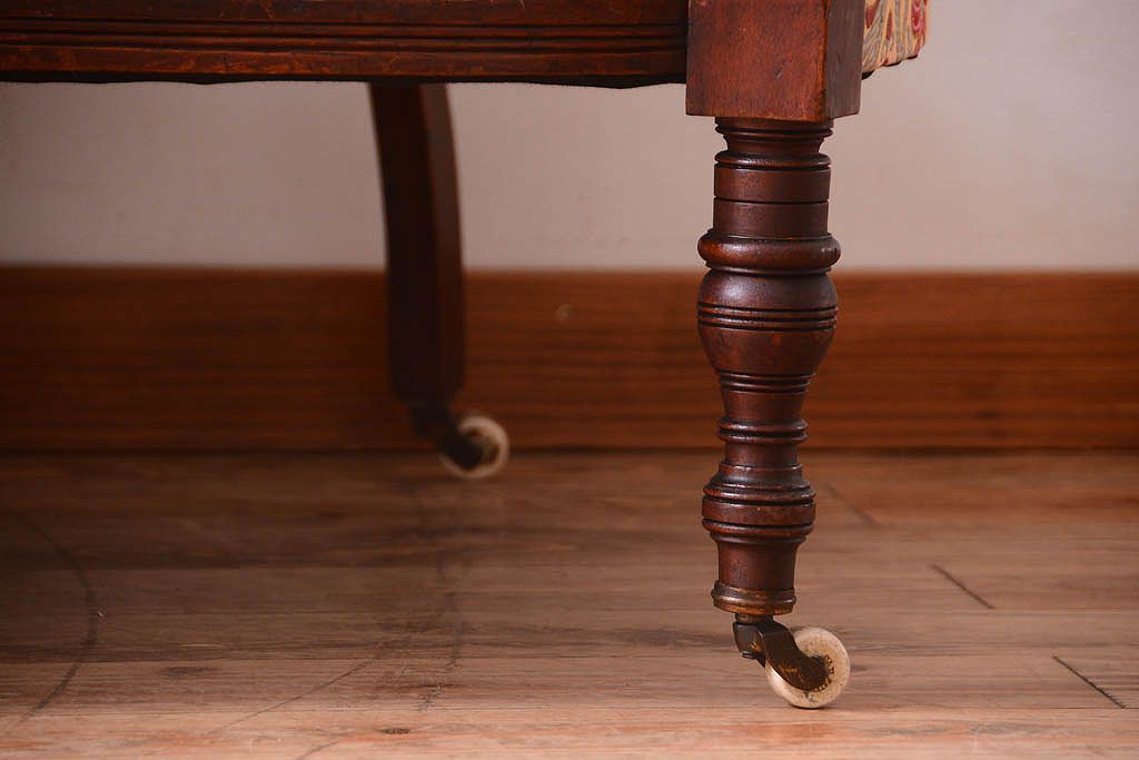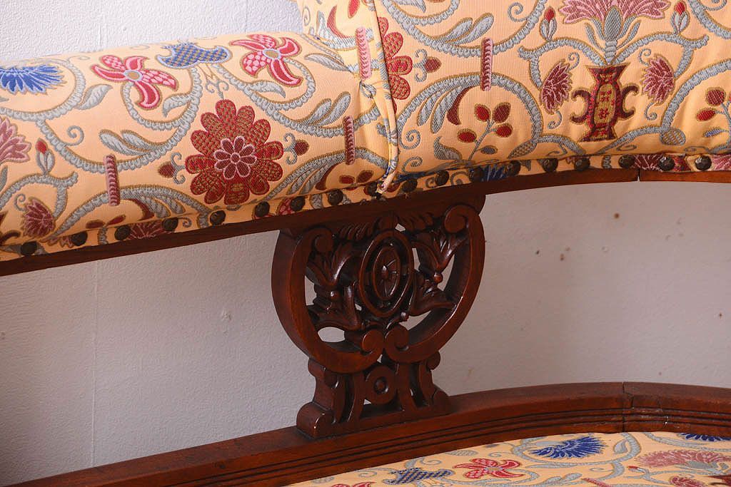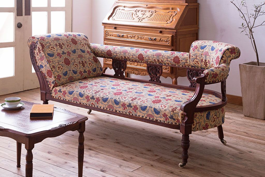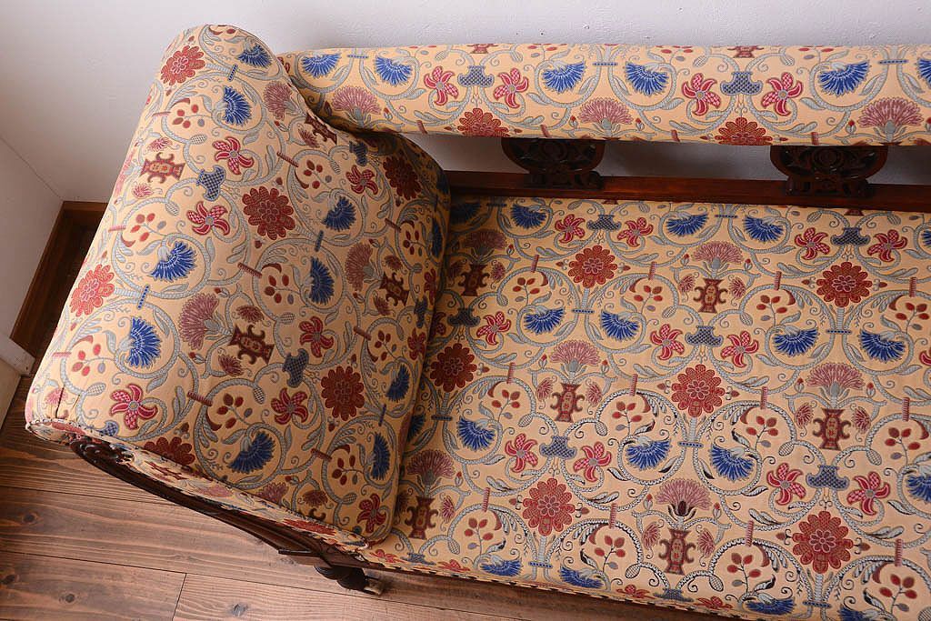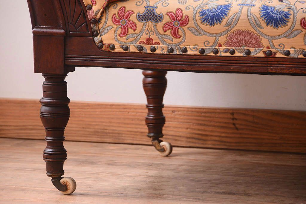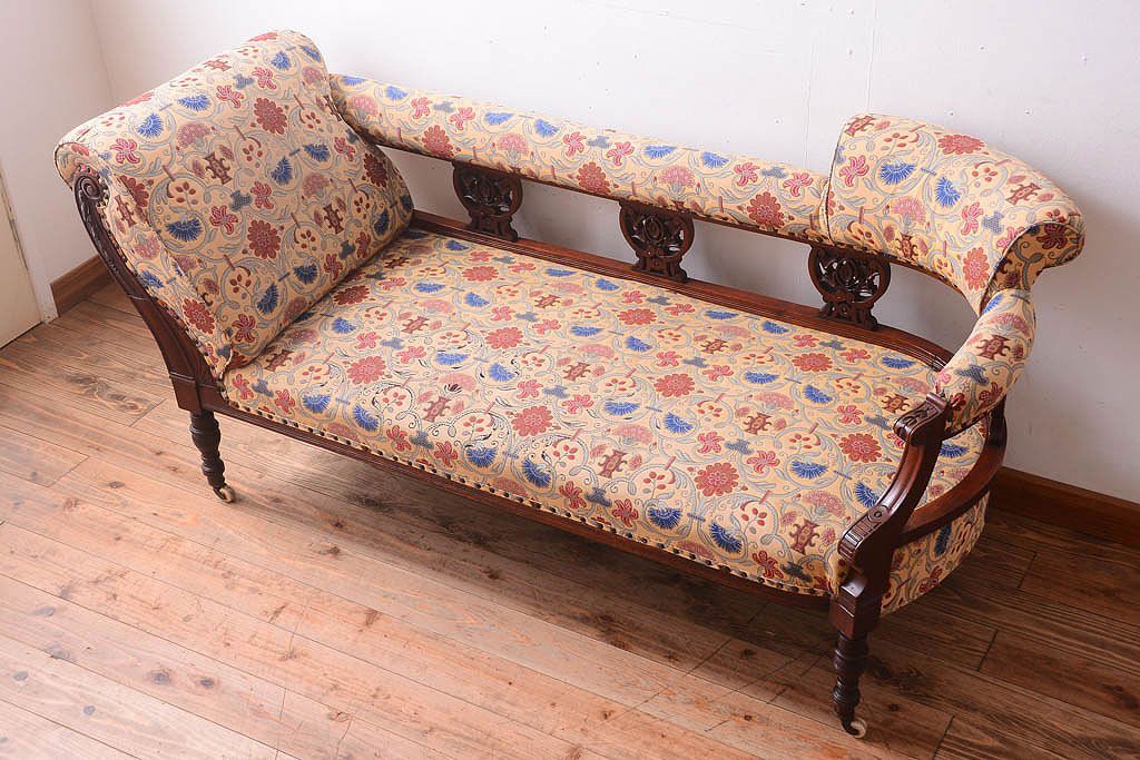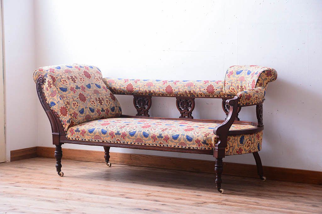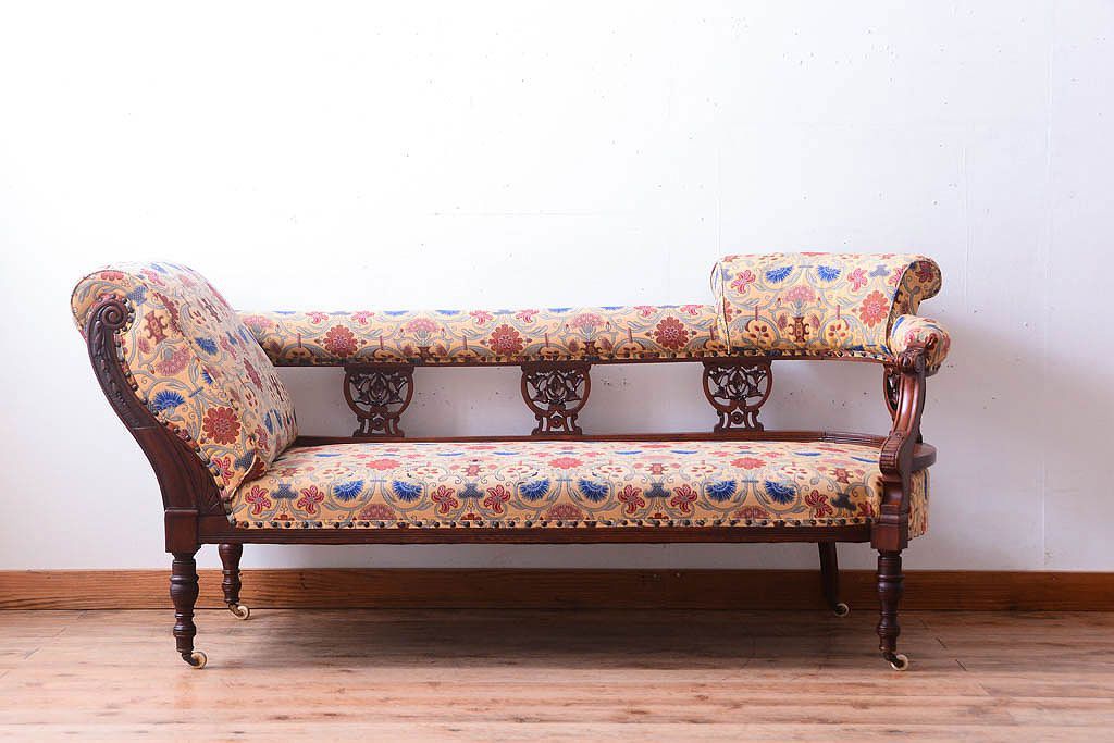 ラフジュ工房> ソファ> ダイニングソファ > アンティーク家具 彫刻入り!豪華なイギリスアンティークのシェーズロング(ソファ)