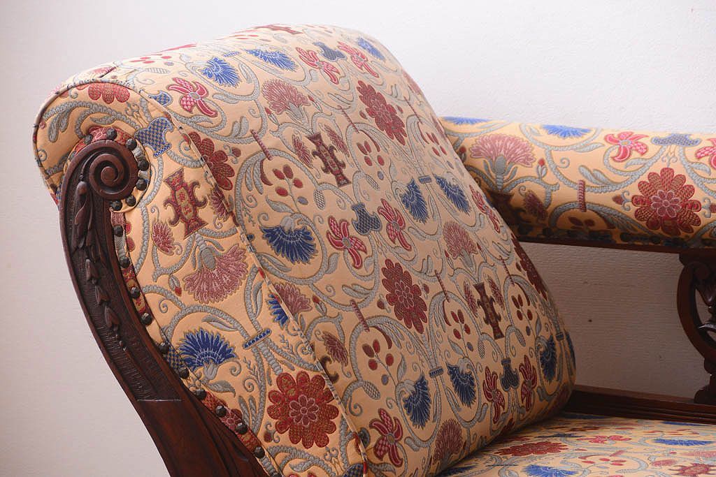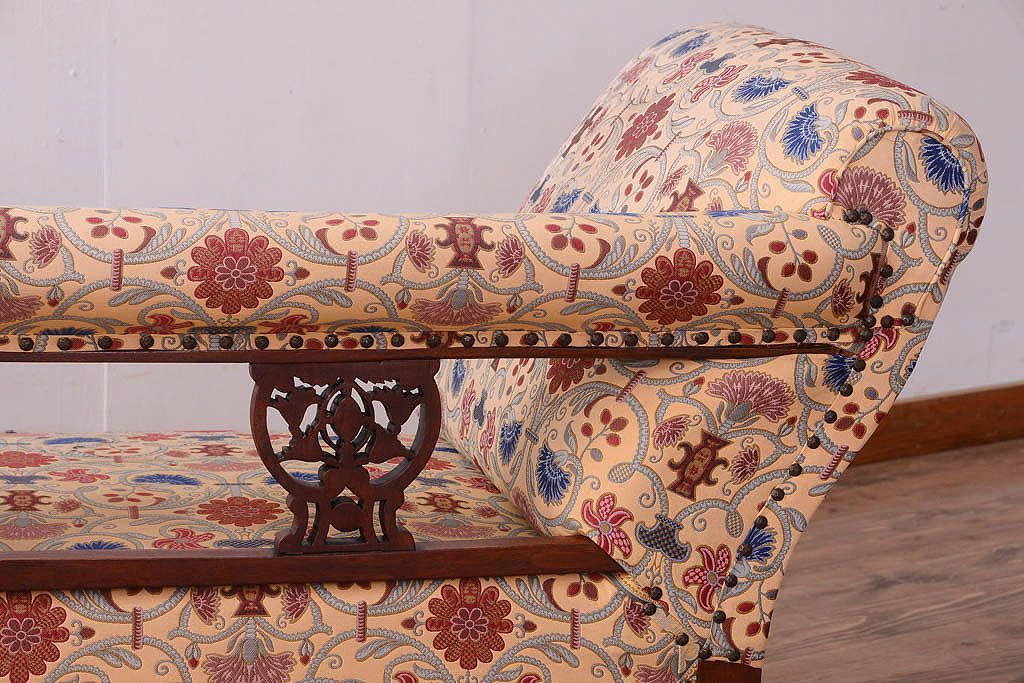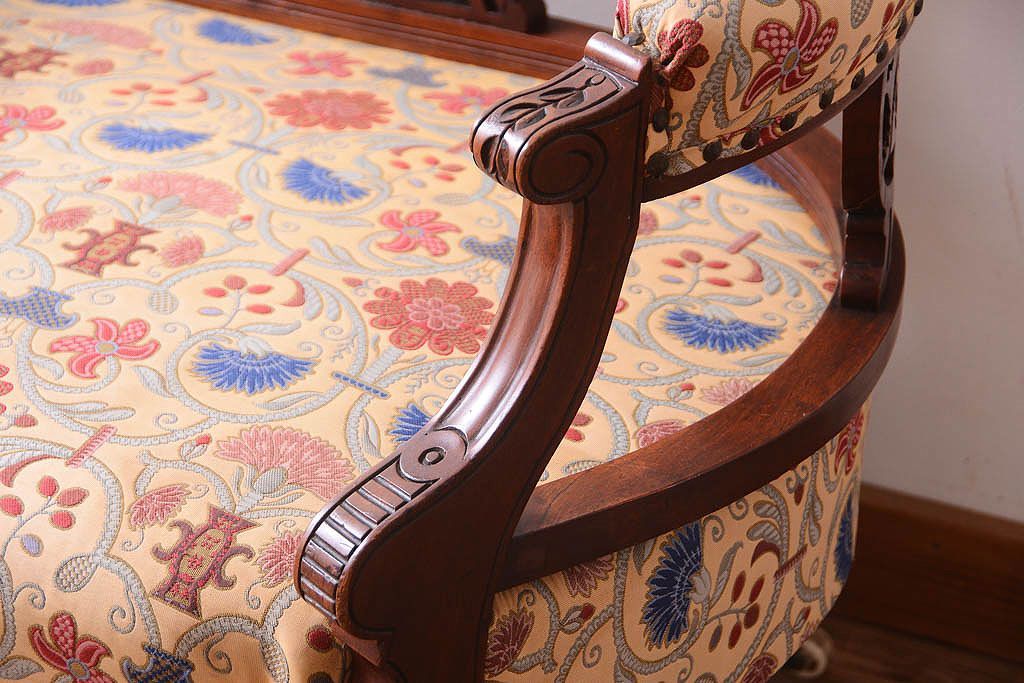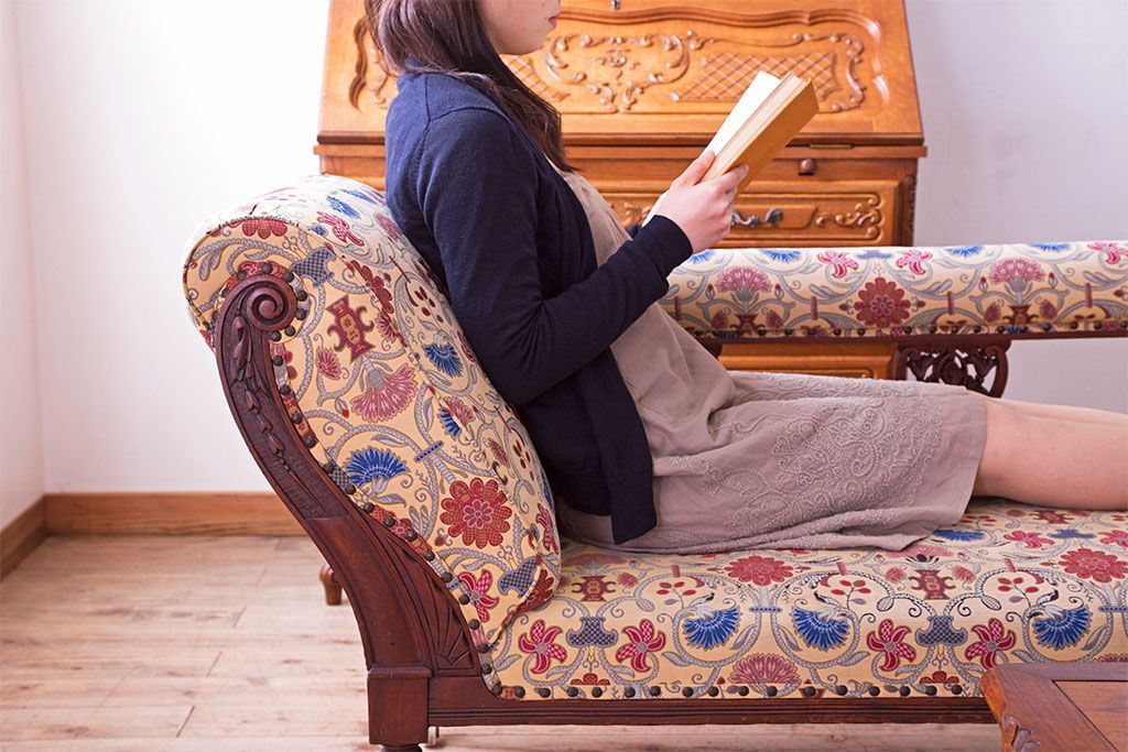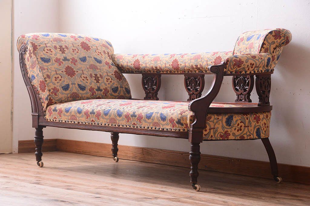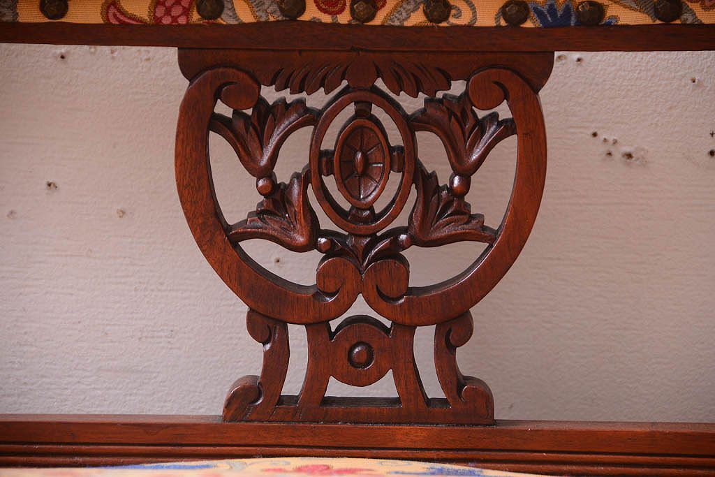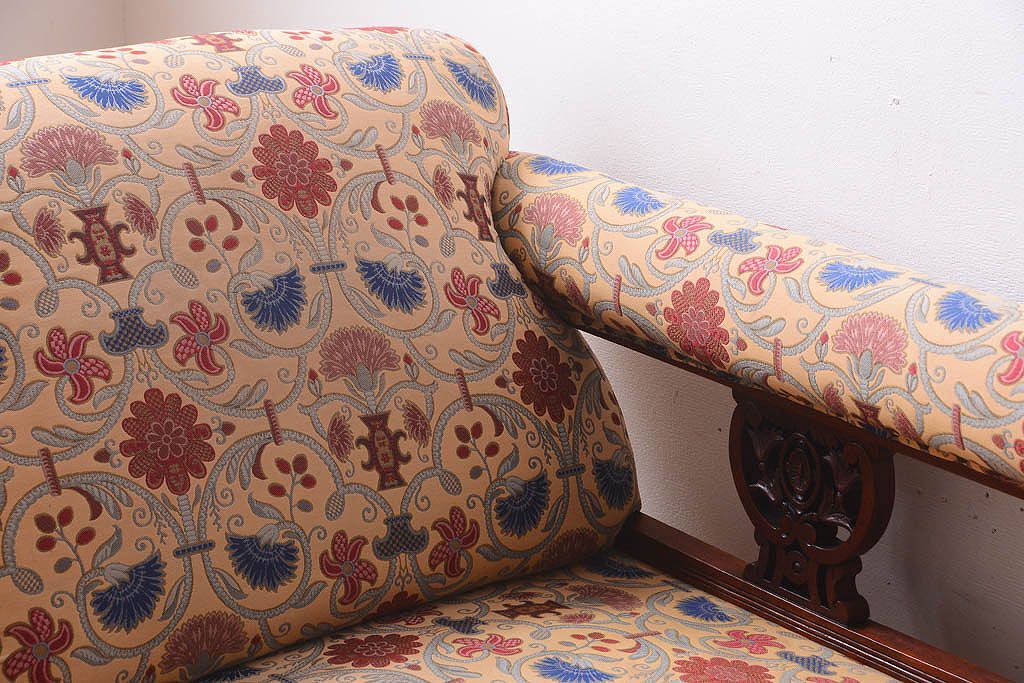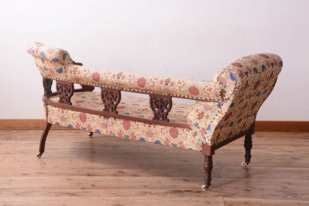 ラフジュ工房> ソファ> ダイニングソファ > アンティーク家具 彫刻入り!豪華なイギリスアンティークのシェーズロング(ソファ)
