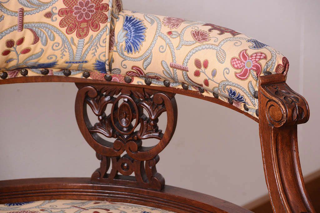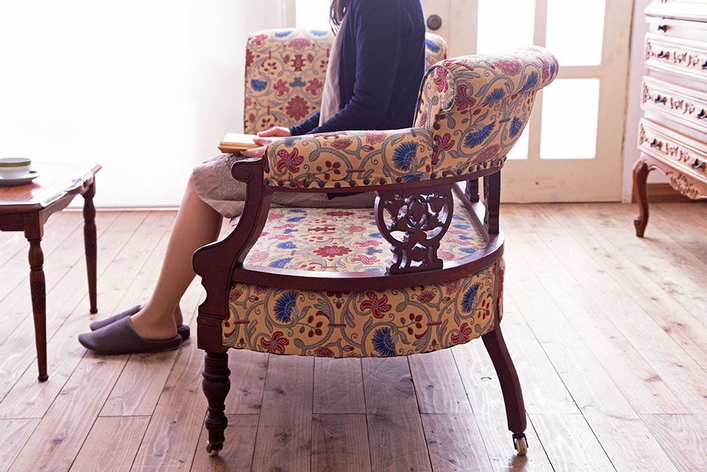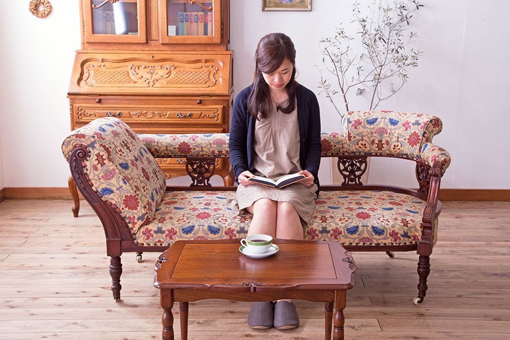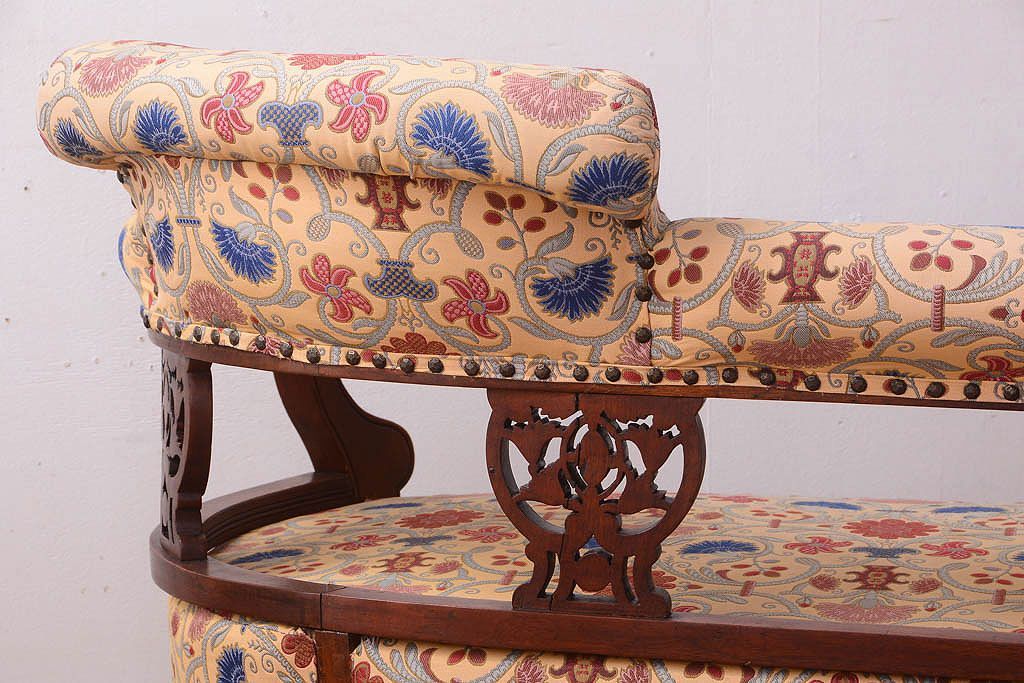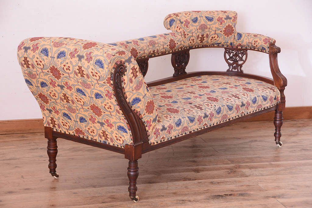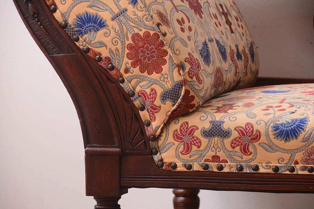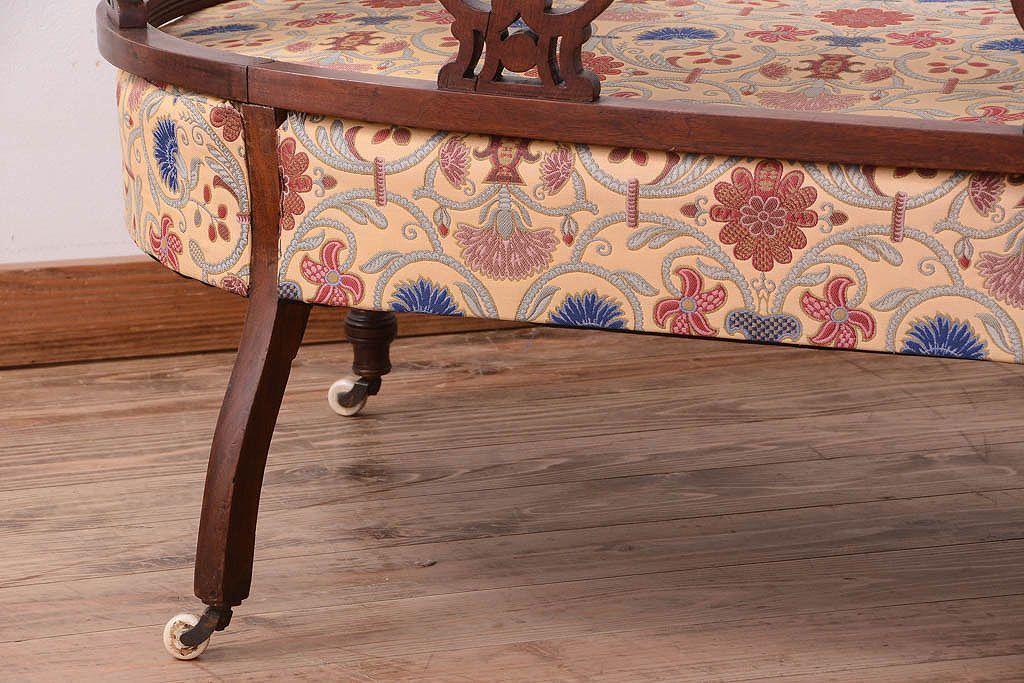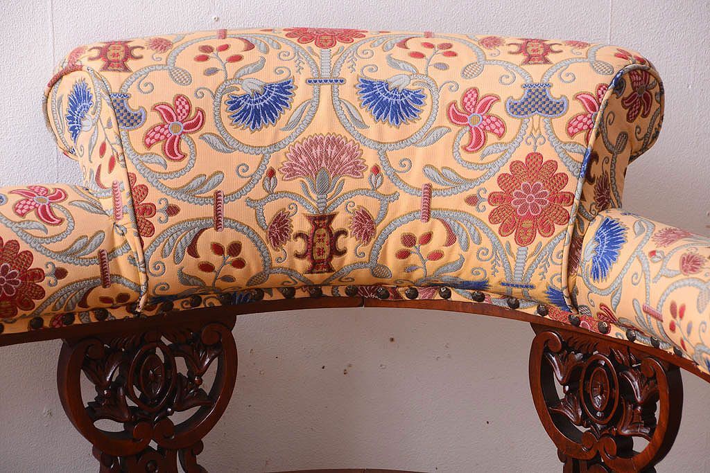 ラフジュ工房> ソファ> ダイニングソファ > アンティーク家具 彫刻入り!豪華なイギリスアンティークのシェーズロング(ソファ)