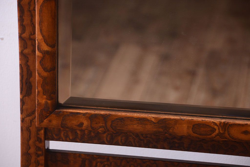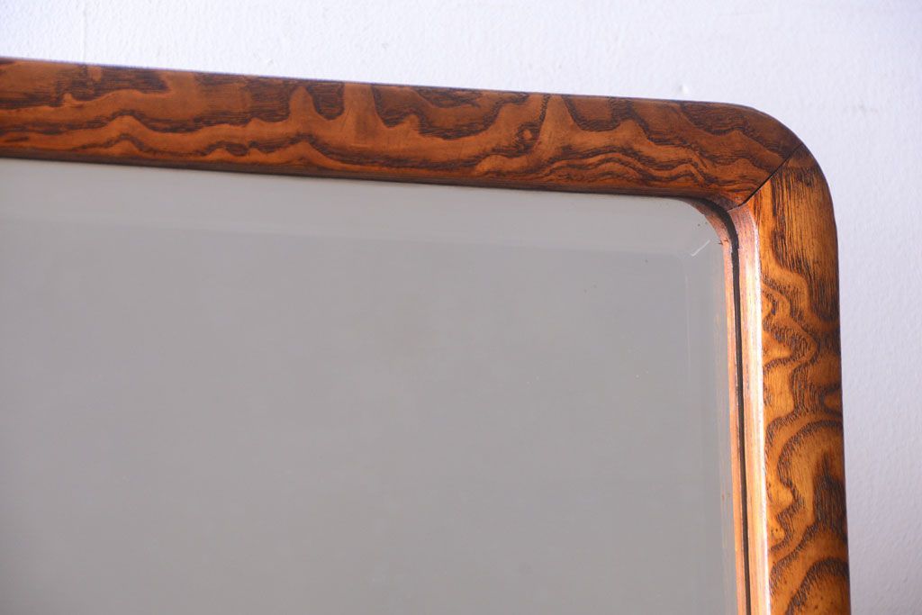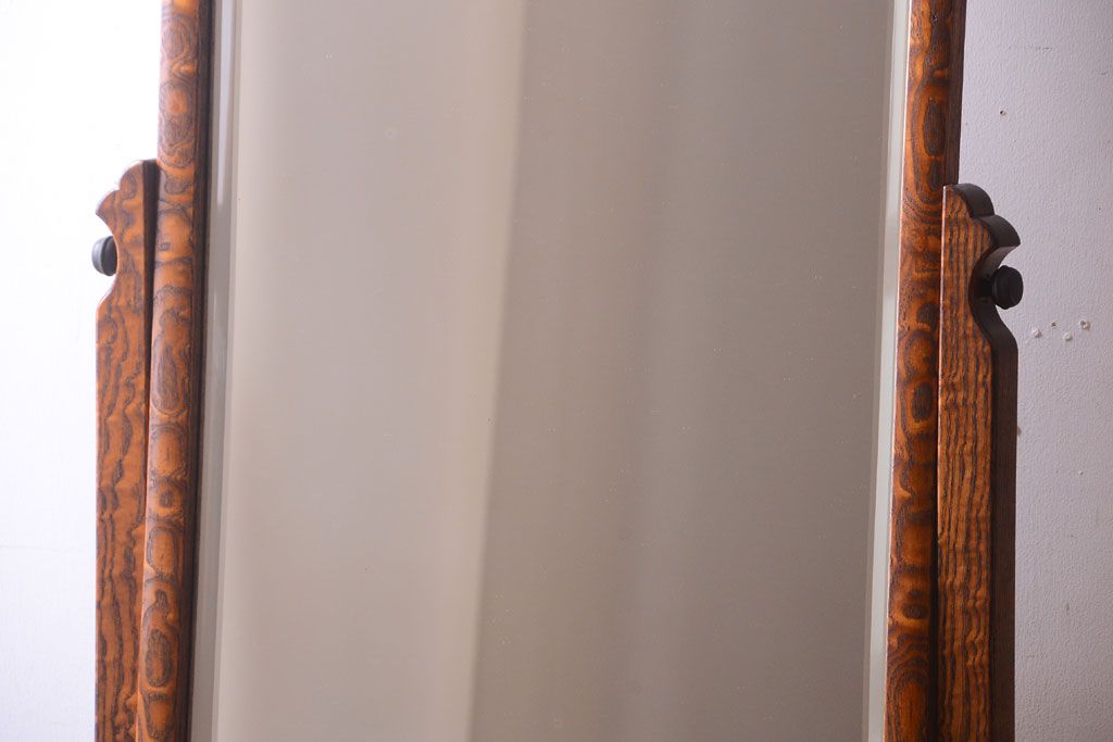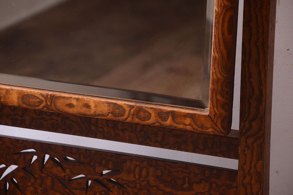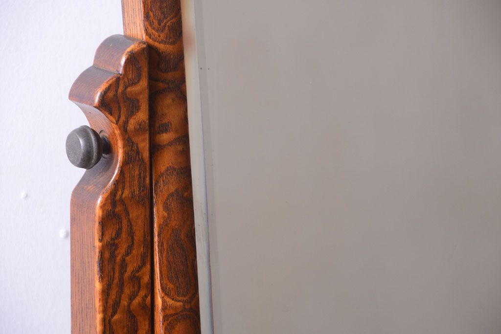 ラフジュ工房> 鏡 > アンティーク雑貨 大正昭和期 透かし彫り!古いタモ材のアンティーク姿見(鏡)
