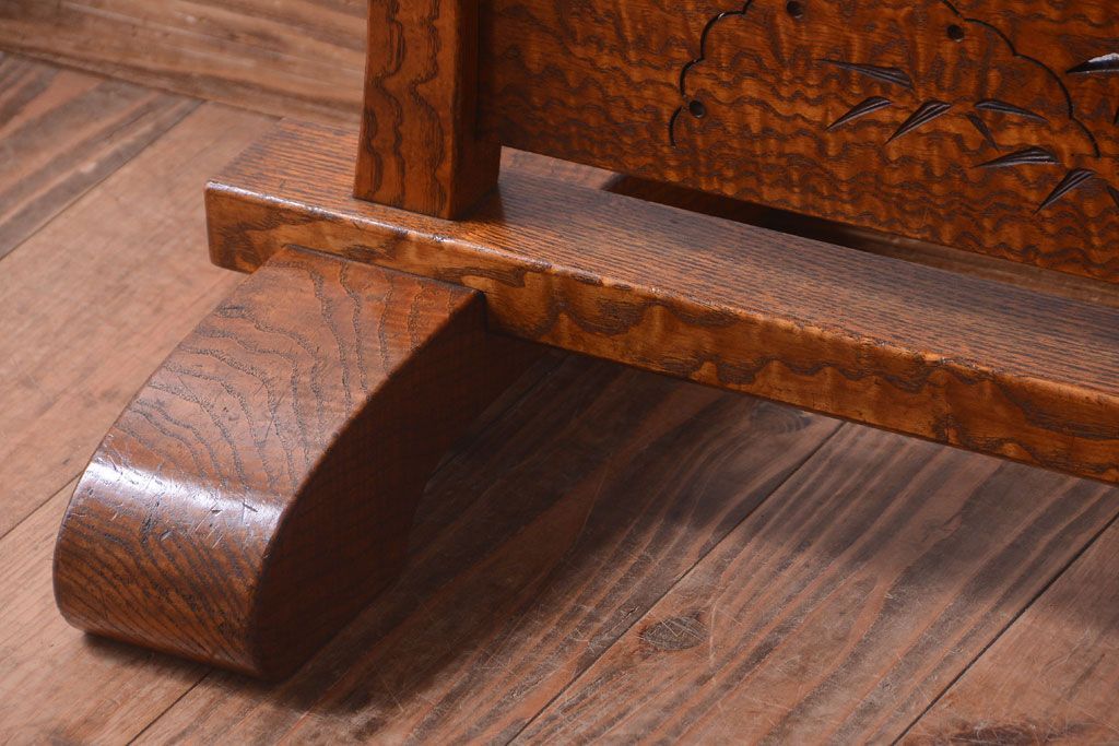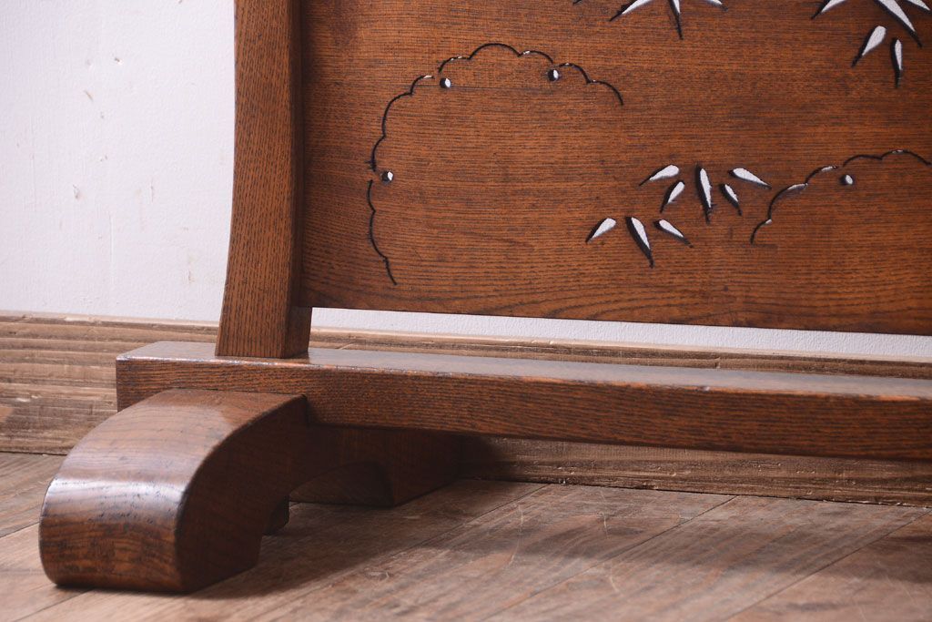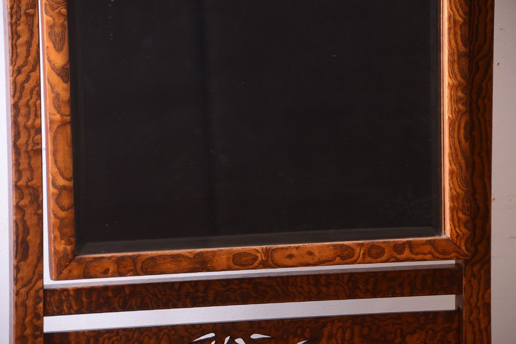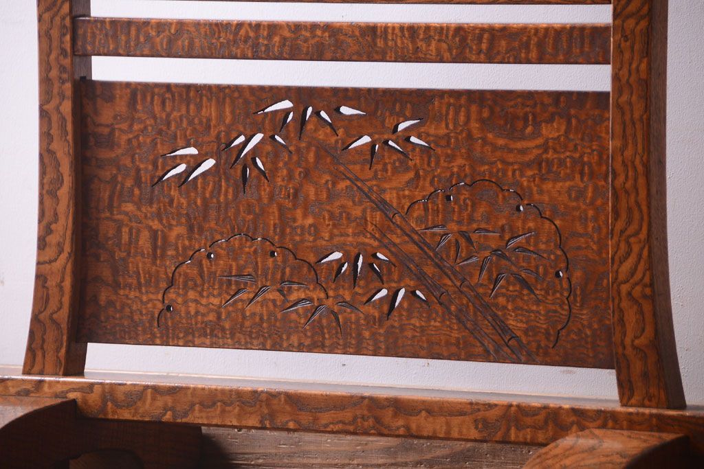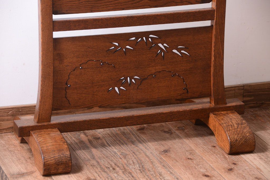 大正から昭和期に作られた和製アンティークの姿見です。古いタモ材独特の木目が味わい深く、木のぬくもりを存分にお楽しみいただけます。また、下部には竹の図柄の透かし彫りが施され、職人のこだわりを感じます。鏡を見ない日はないというくらい、日々の生活で使うことが多い鏡ですが、せっかくなら上質な姿見を取り入れてみてはいかがでしょうか。日々の身だしなみチェックはもちろん、落ち着いた空間や和を基調としたお部屋のインテリアとしてもおすすめです。