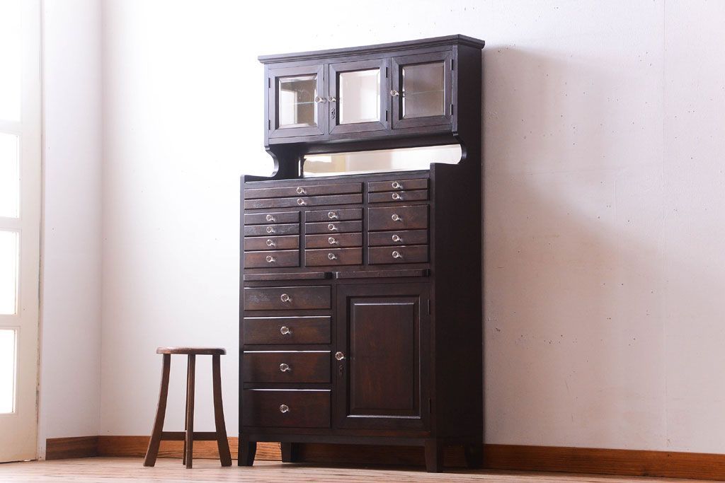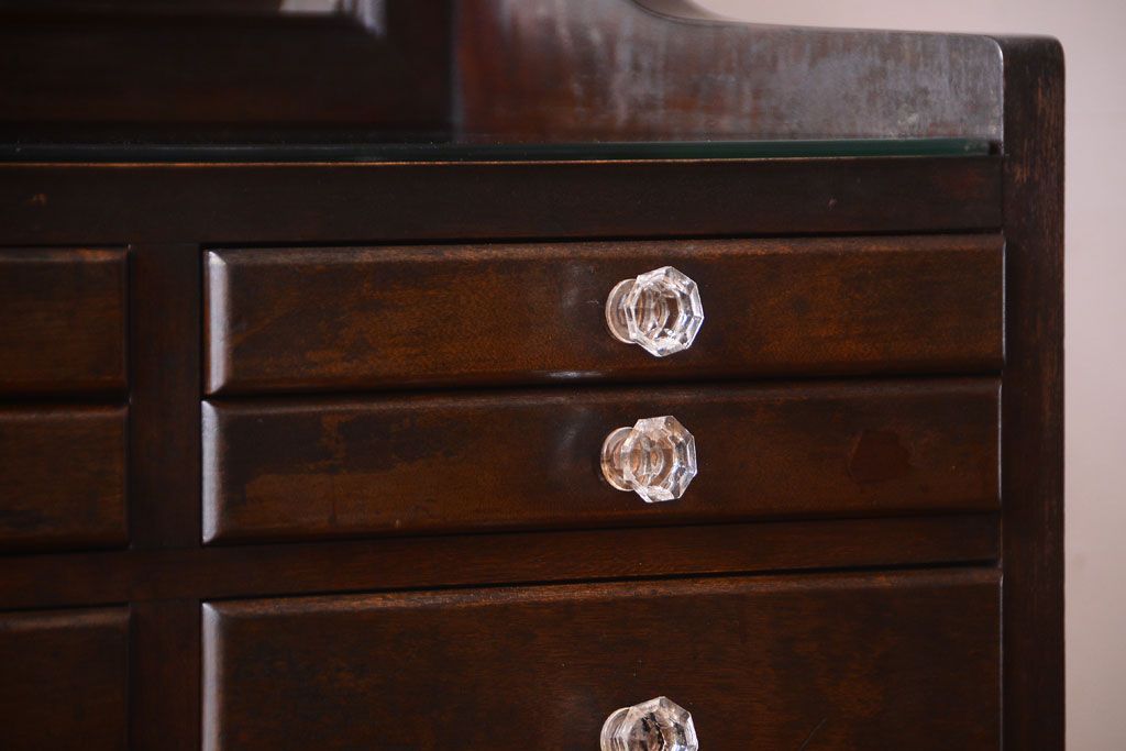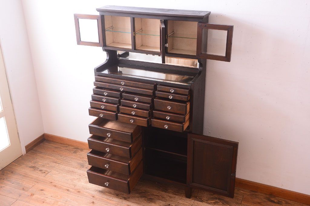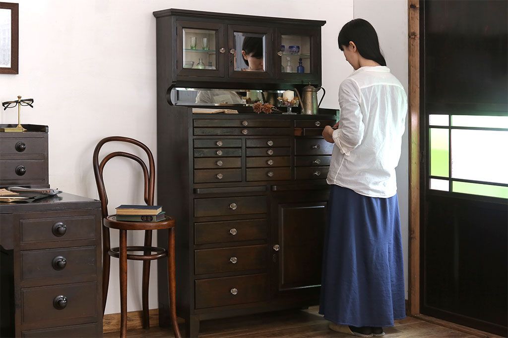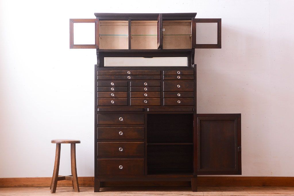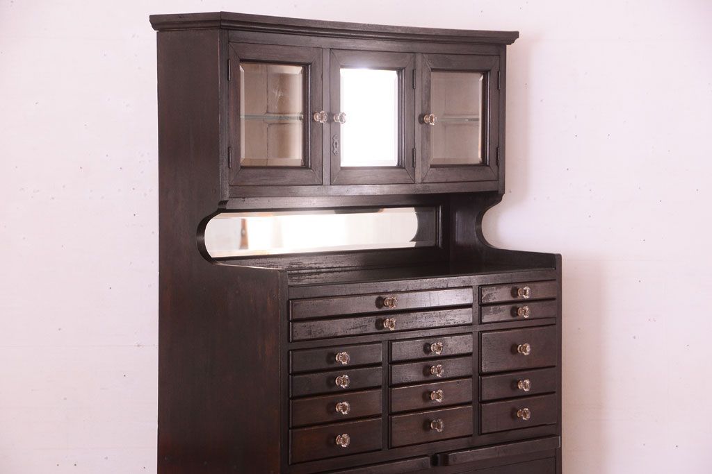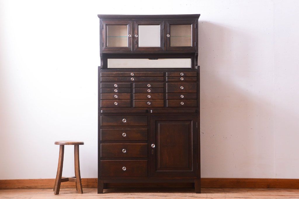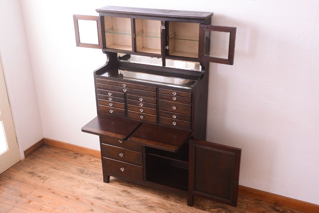 レトロ家具 昭和レトロ 変わり型 脚付き!古い木製のアンティークデンタルキャビネット