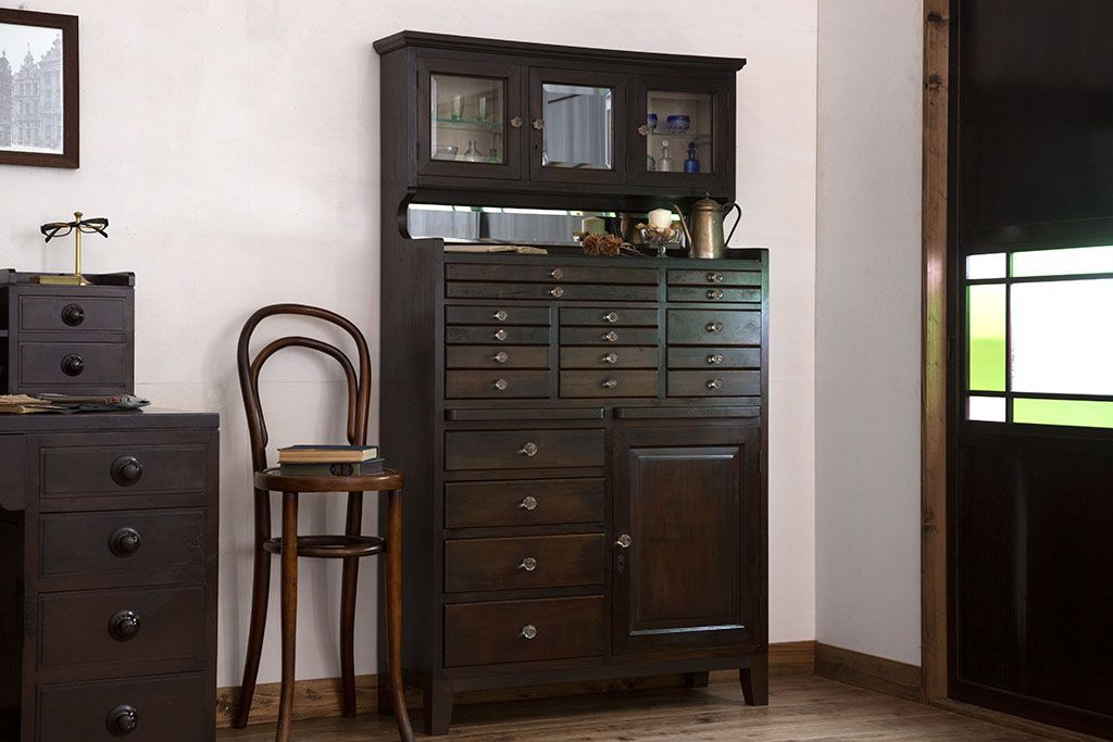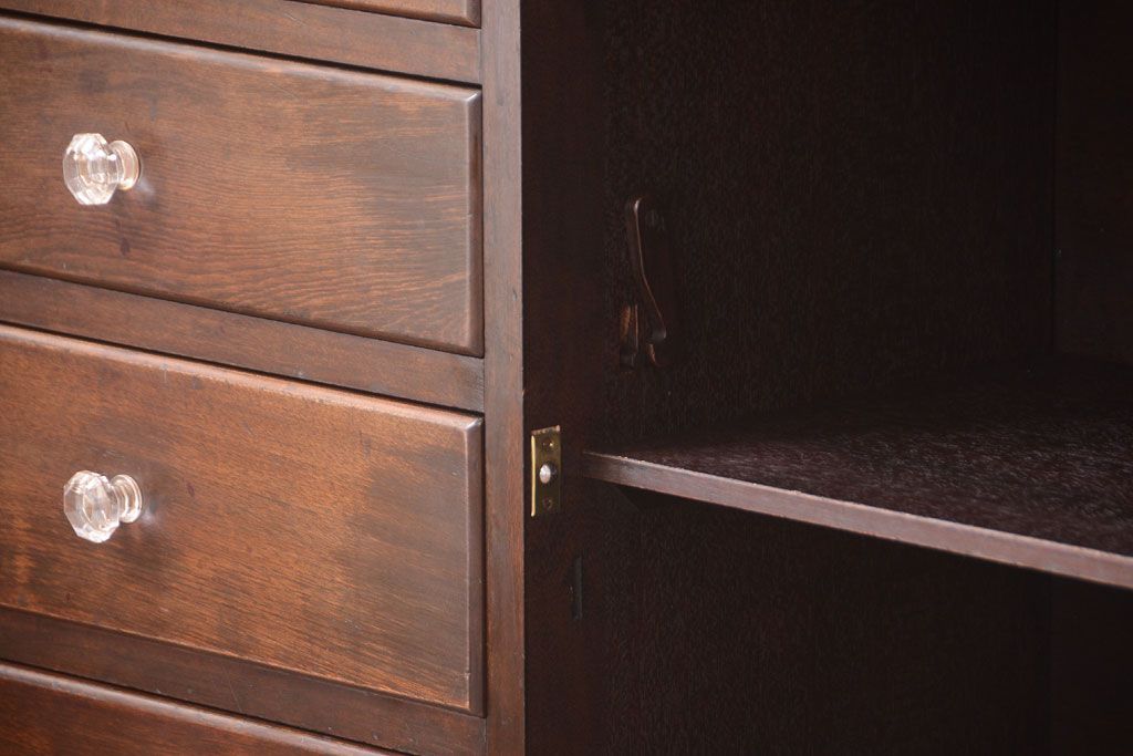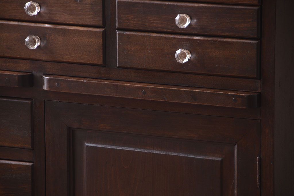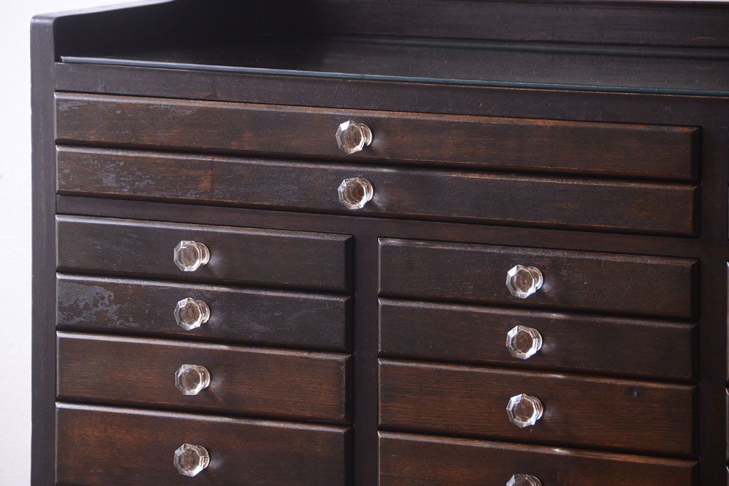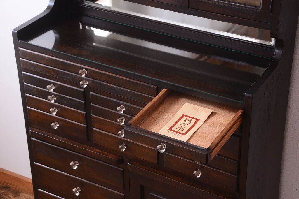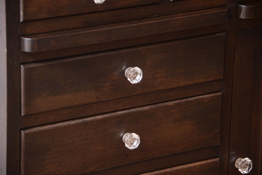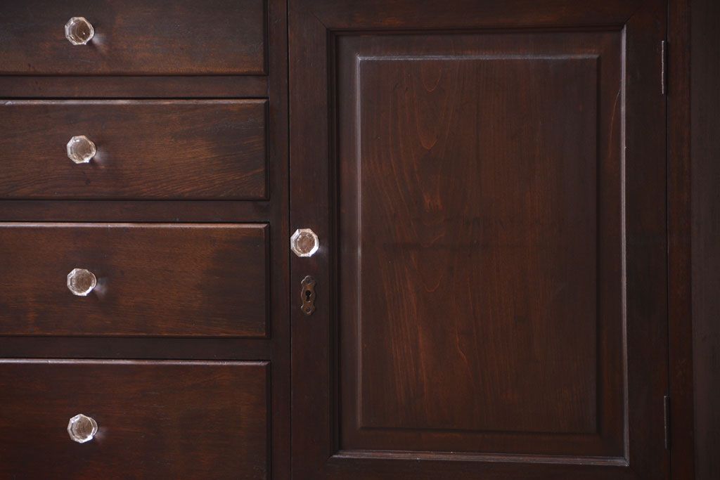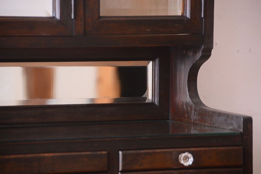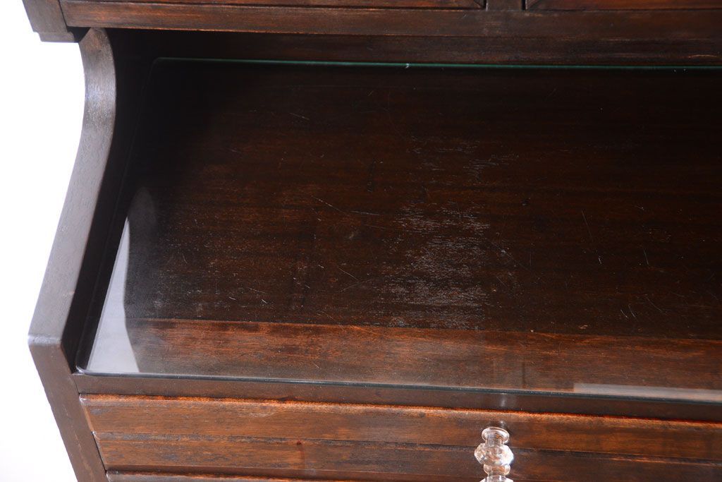 レトロ家具 昭和レトロ 変わり型 脚付き!古い木製のアンティークデンタルキャビネット