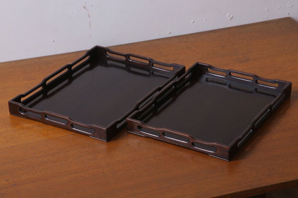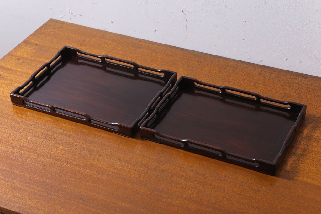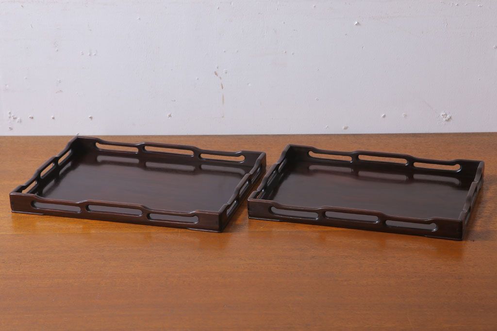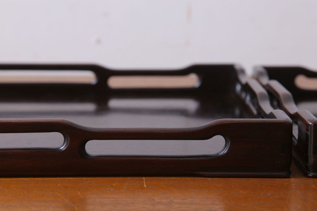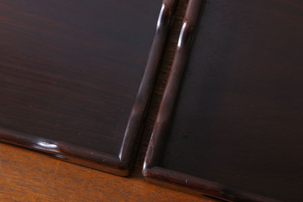 アンティーク雑貨 古民具・骨董 明治〜大正期 唐木材!紫檀材のアンティークトレー2枚セット(お盆)