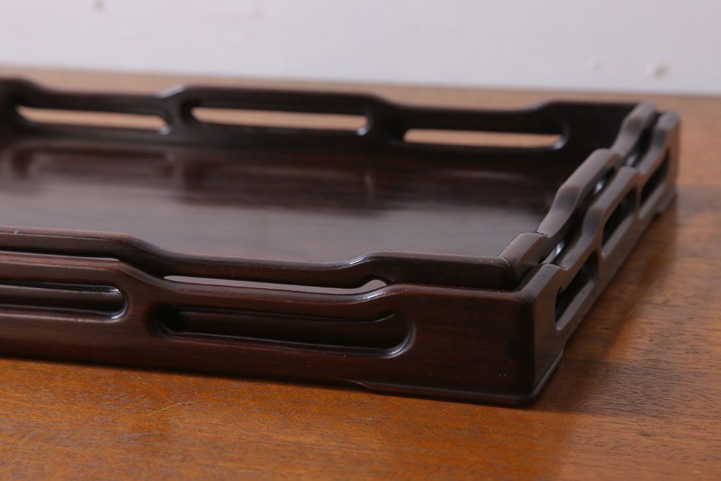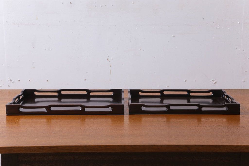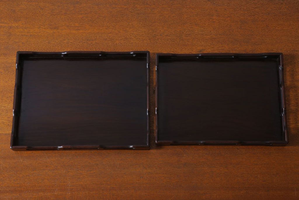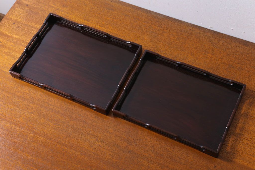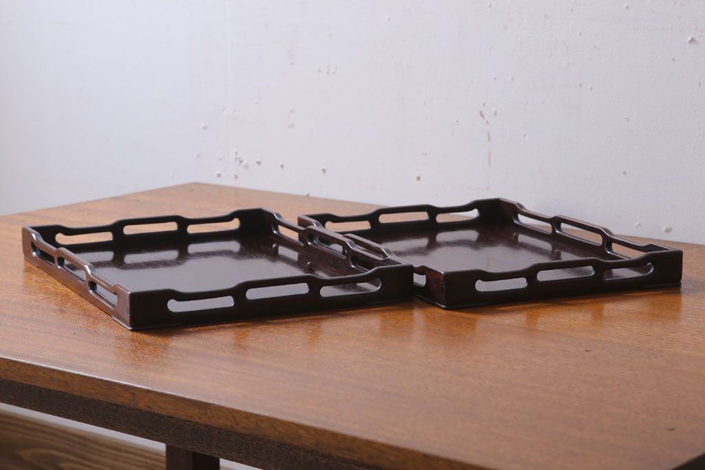 アンティーク雑貨 古民具・骨董 明治〜大正期 唐木材!紫檀材のアンティークトレー2枚セット(お盆)
