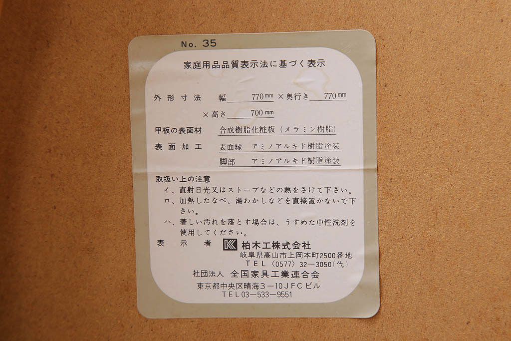 中古 飛騨家具 柏木工 明るい木味のスクエアダイニングテーブルです。
