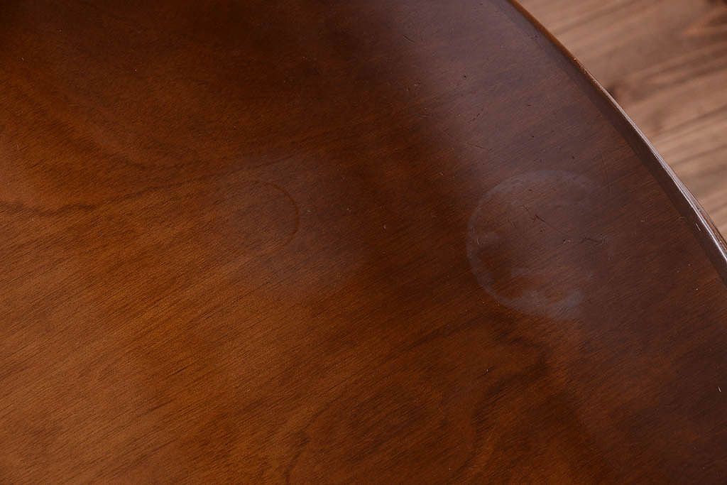 画像にありますように天板に輪じみのような変色やキズがありますが、使用上、強度上に問題はありません。