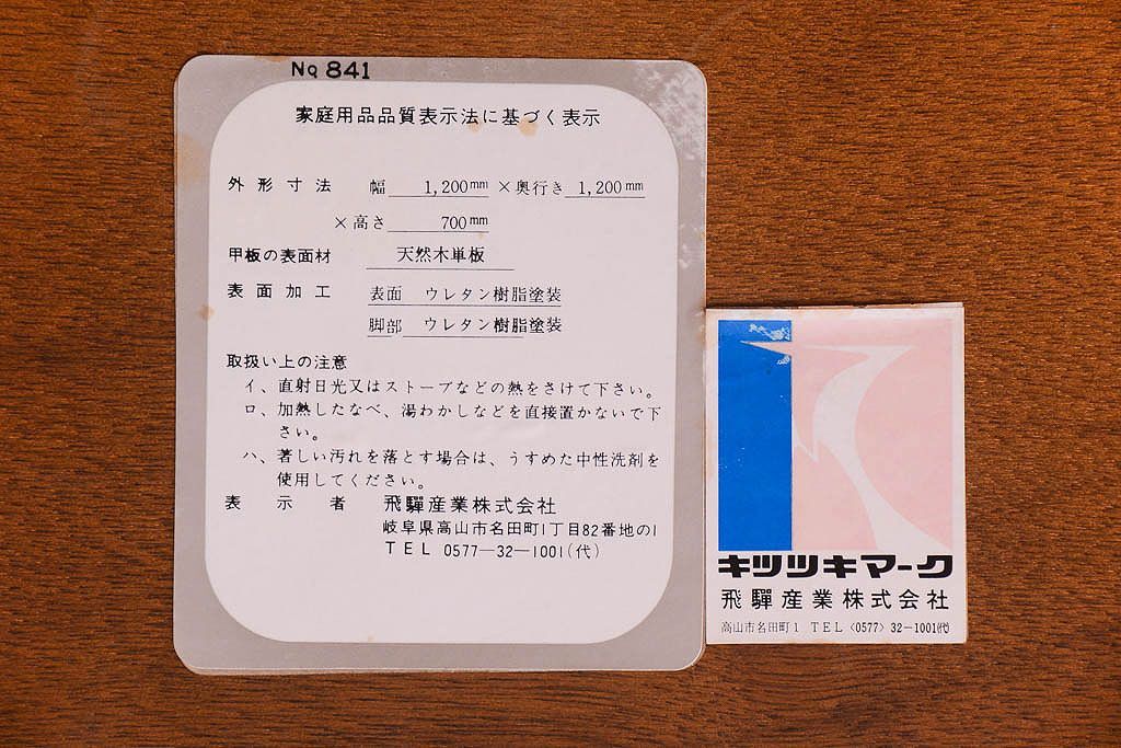 中古 飛騨産業 キツツキマーク 穂高 ラウンドダイニングテーブル