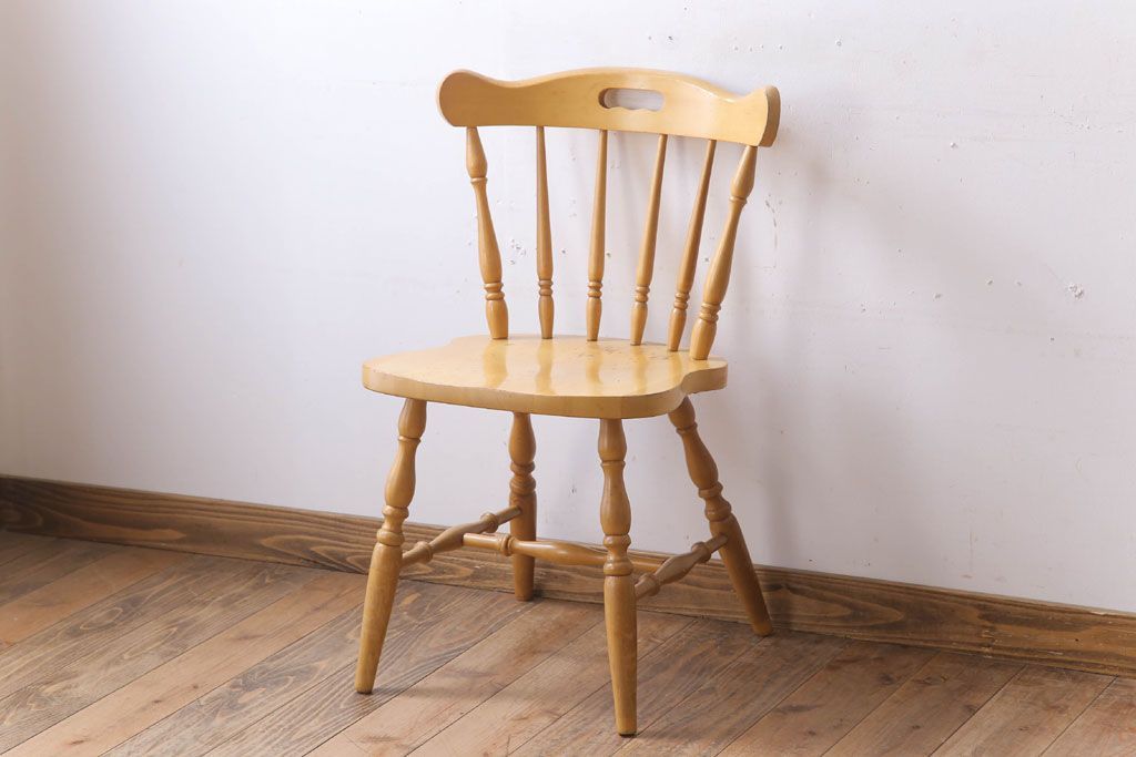 中古 飛騨家具 柏木工 明るい木味のウィンザーチェア(ダイニングチェア、ウインザーチェア)(2)