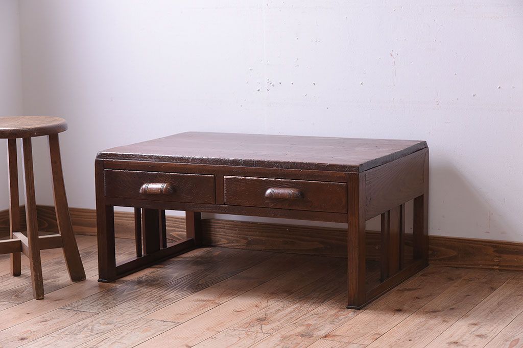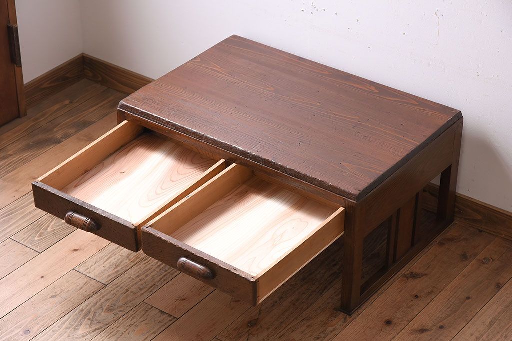 レトロ家具 古い木製のレトロでシンプルなアンティーク文机