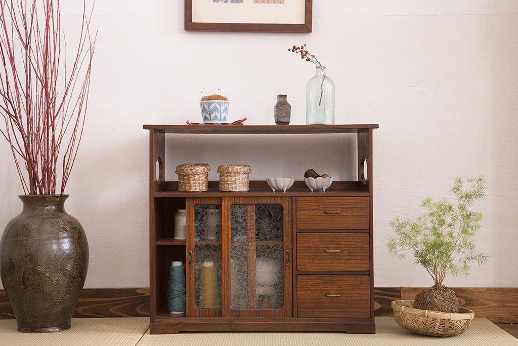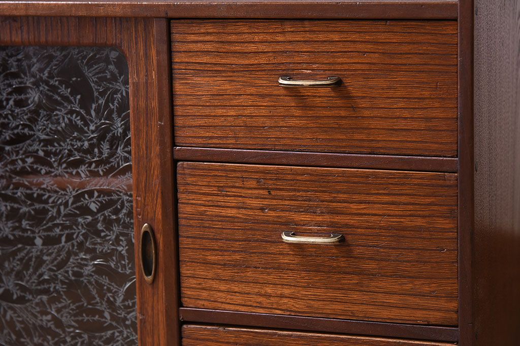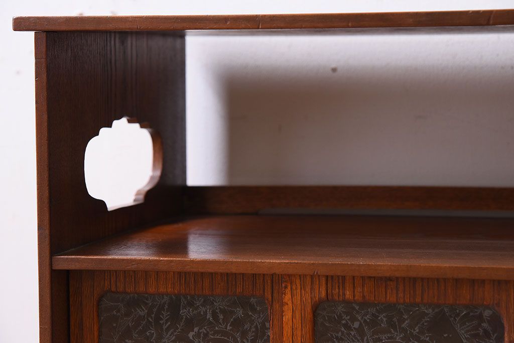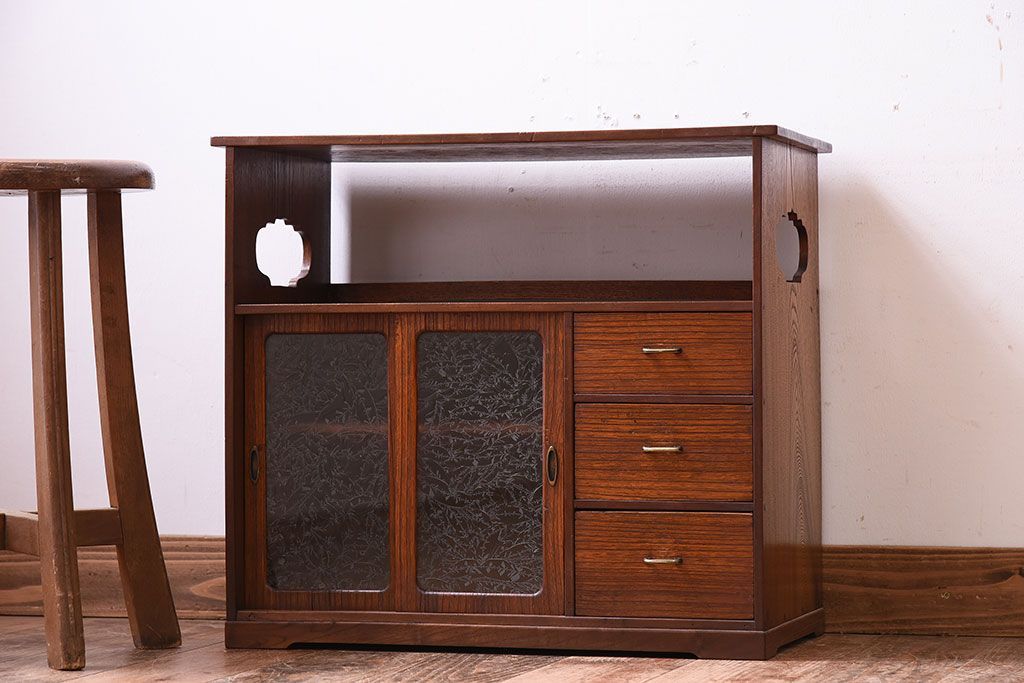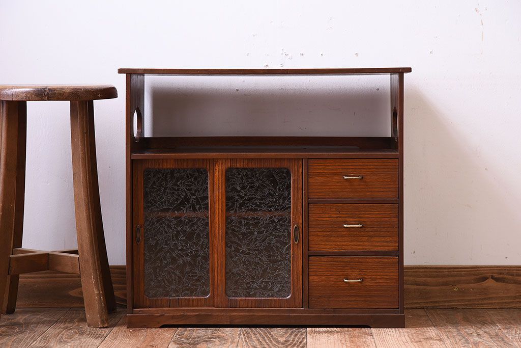 ラフジュ工房> キャビネット・戸棚> サイドボード > 【K様ご成約済み・ご決済用】和製アンティーク 結霜ガラス入り!古い木製の小ぶりな茶箪笥